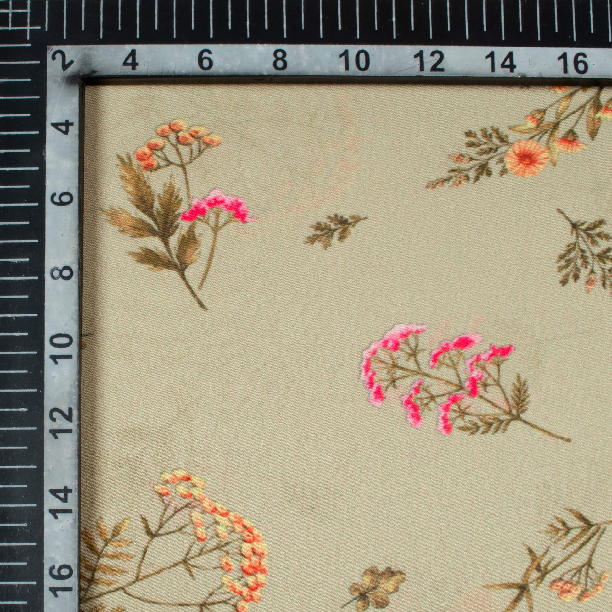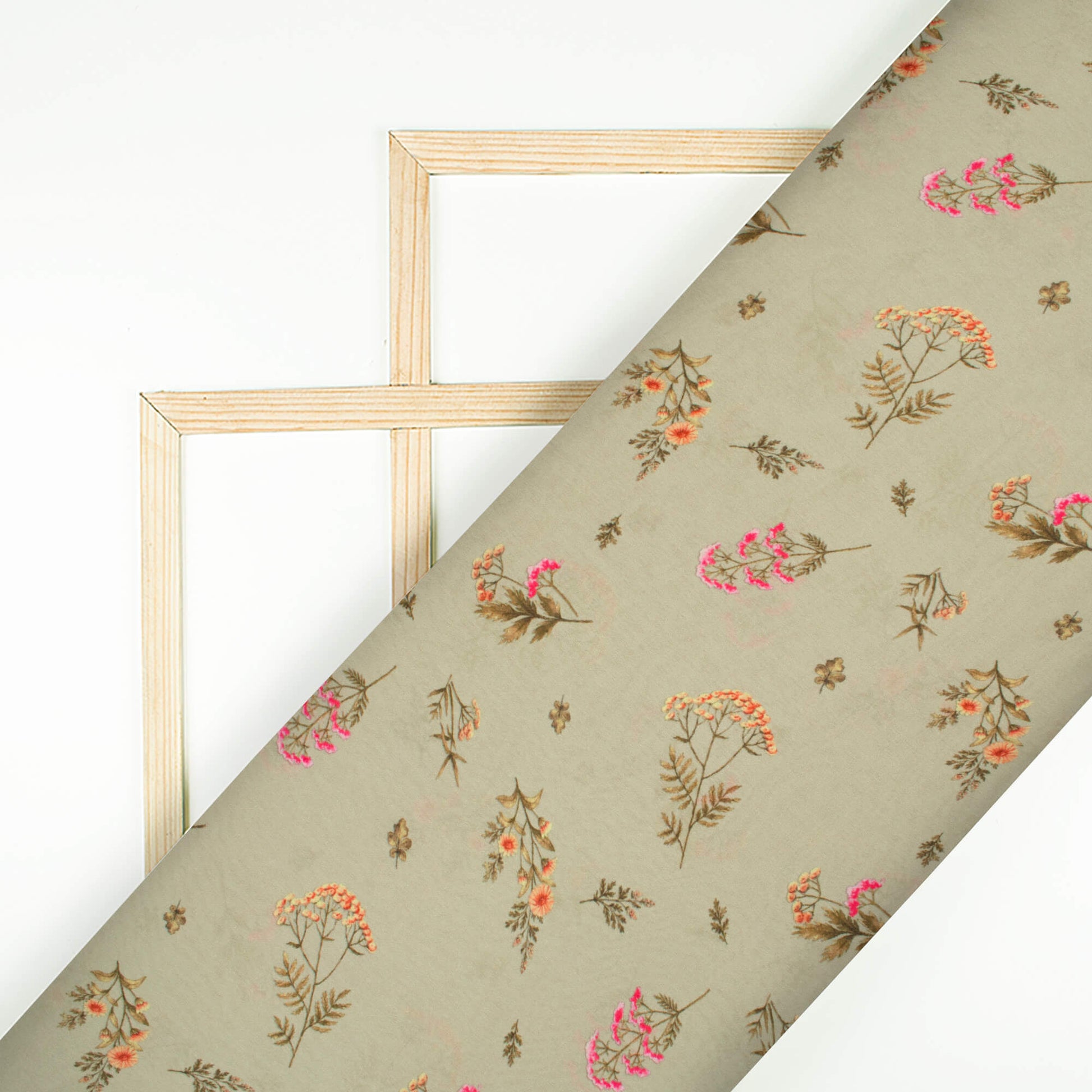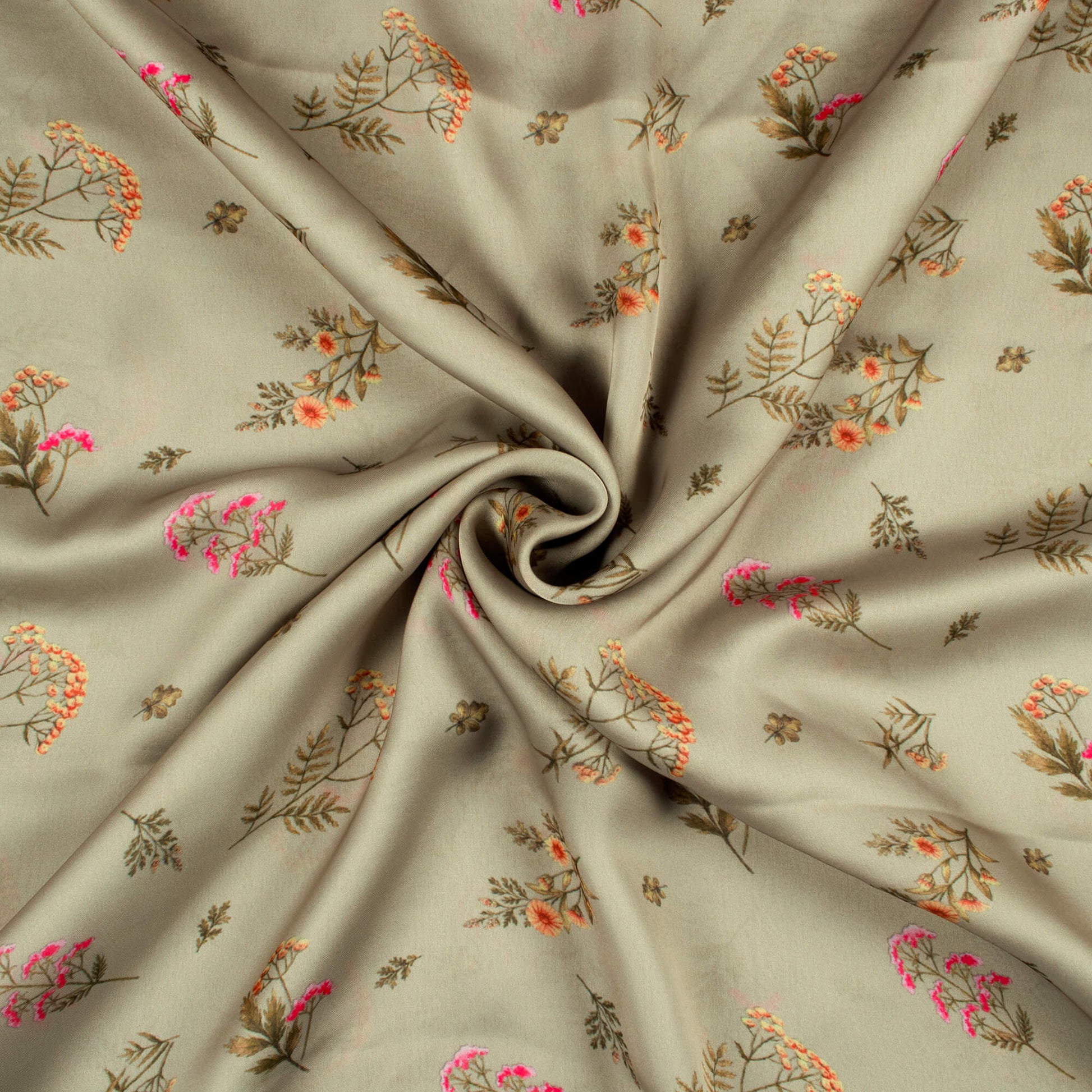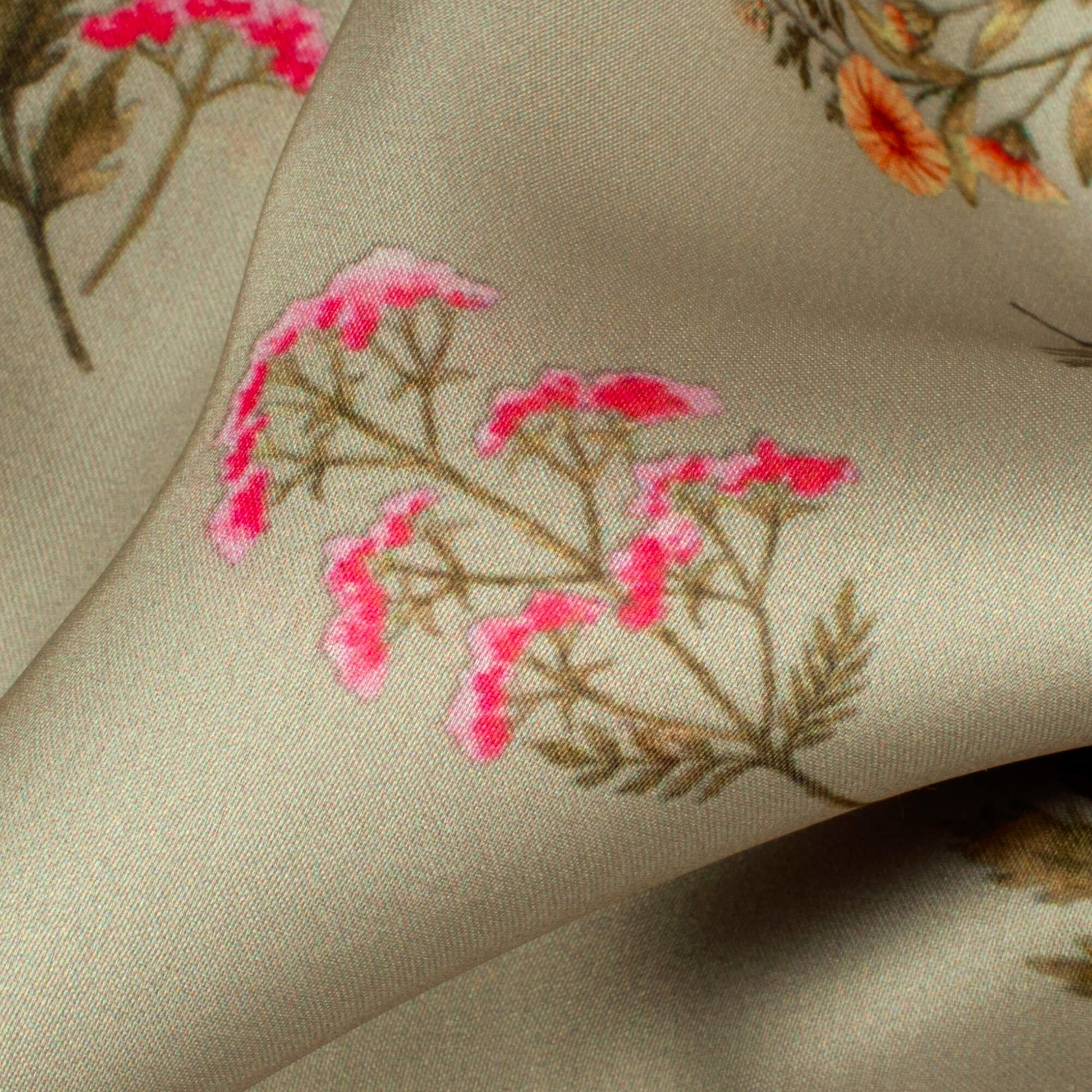 Pale Olive Green And Pink Floral Pattern Digital Print Georgette Satin Fabric