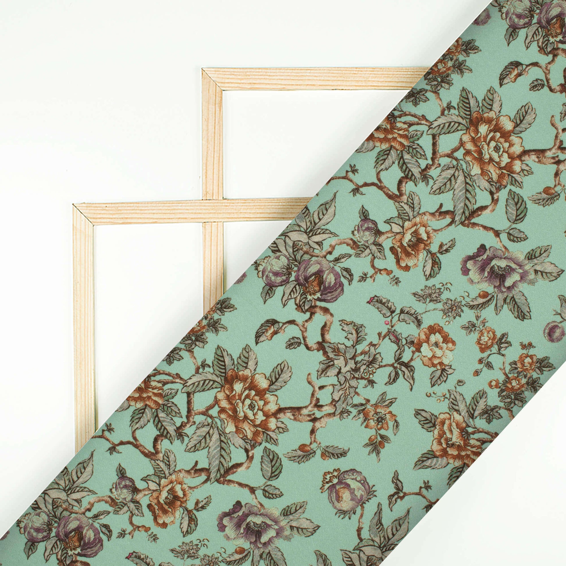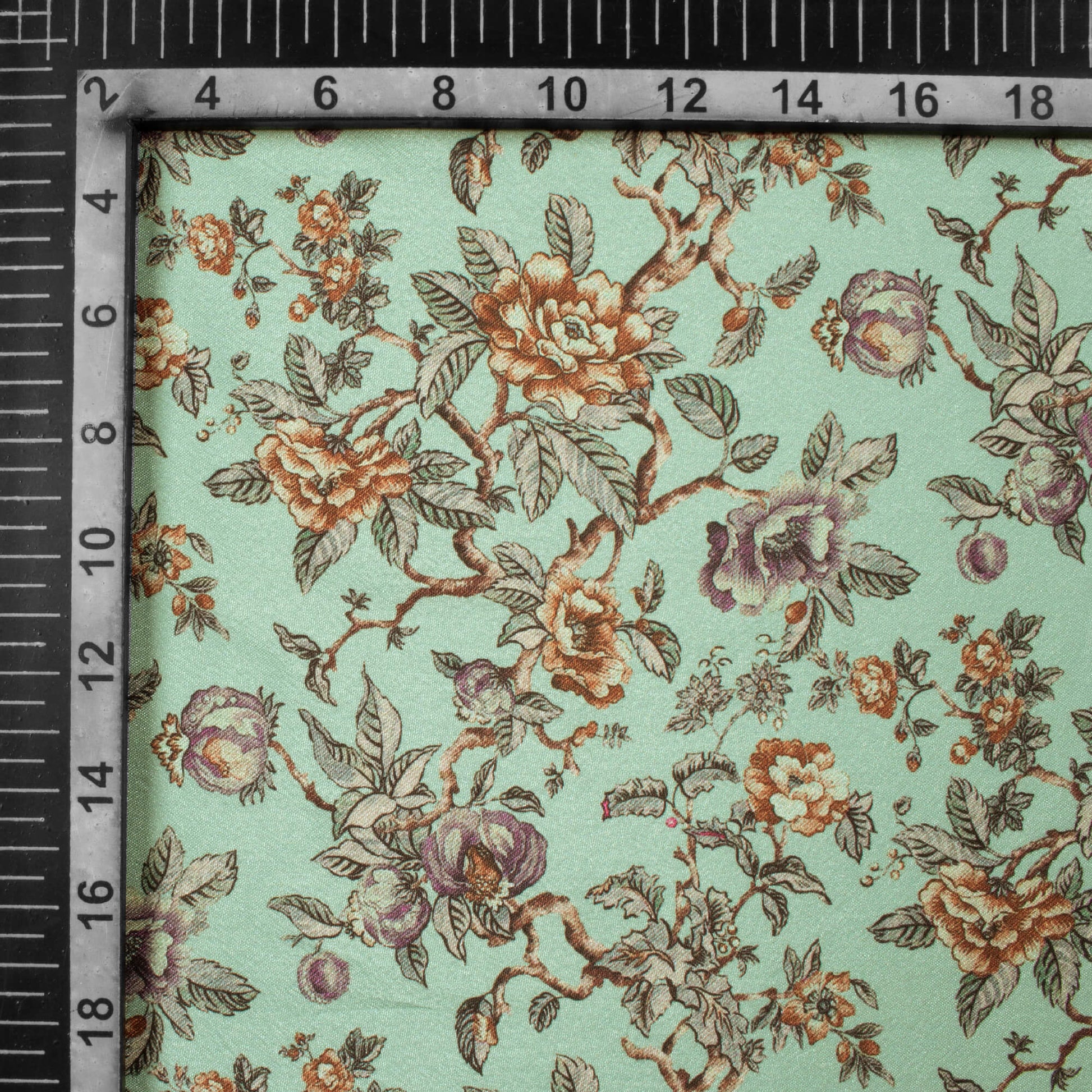 Pale Turquoise And Red Floral Pattern Digital Print Crepe Silk Fabric
