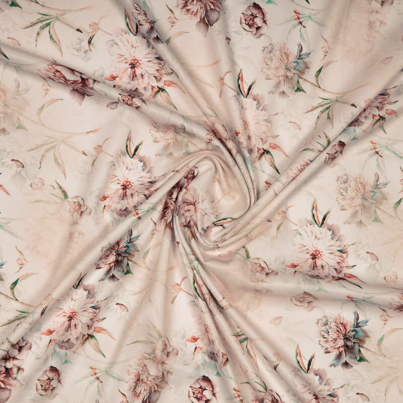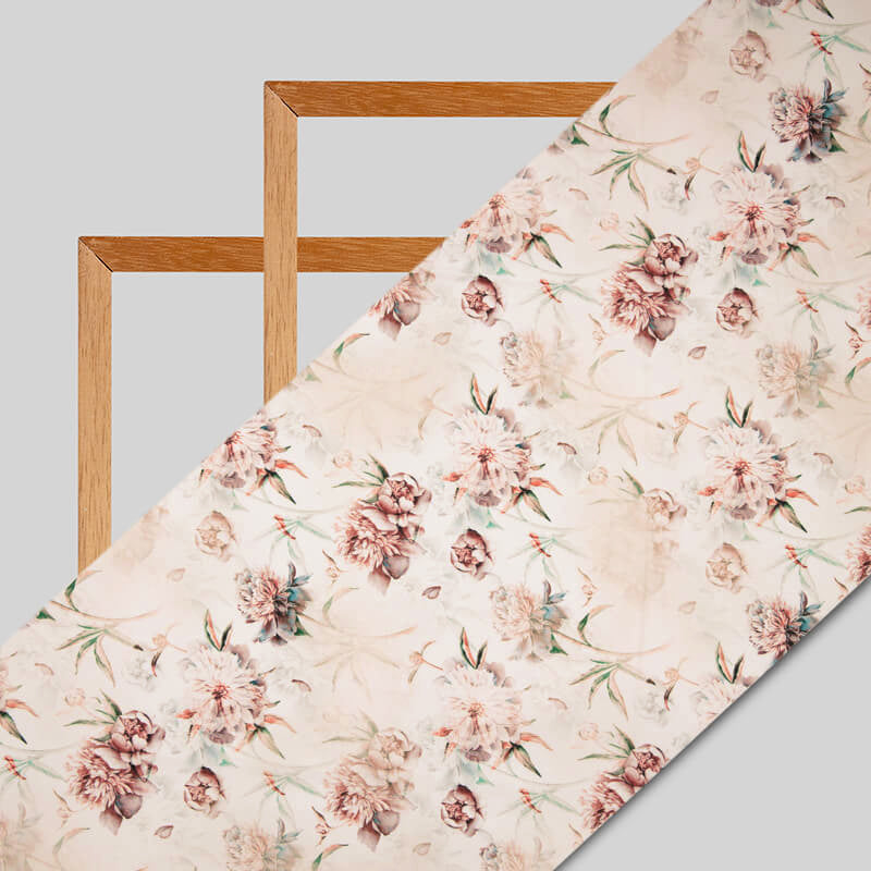 Pastel Pink Floral Digital Print American Crepe Fabric