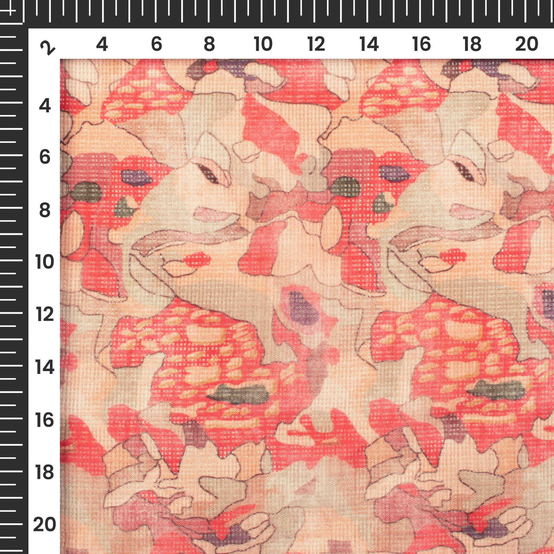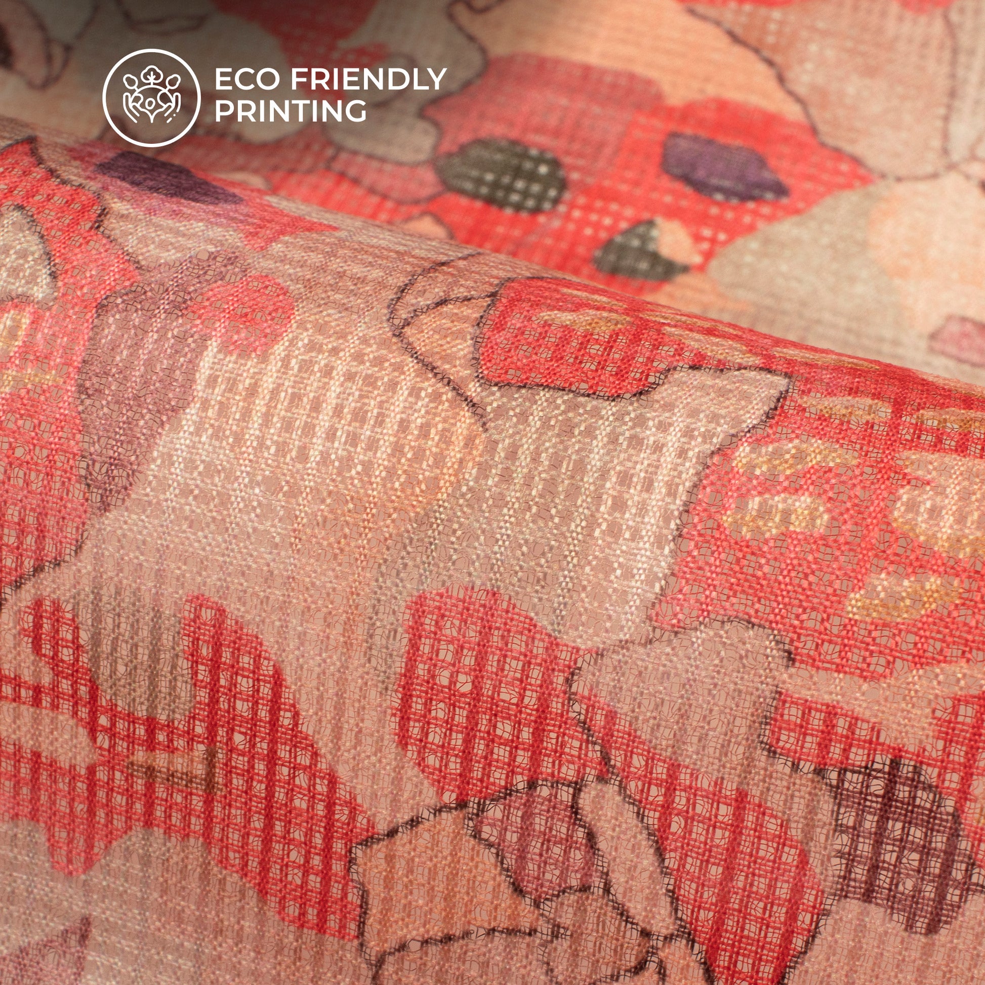 Pastle Red Abstract Digital Print Kota Doria Fabric