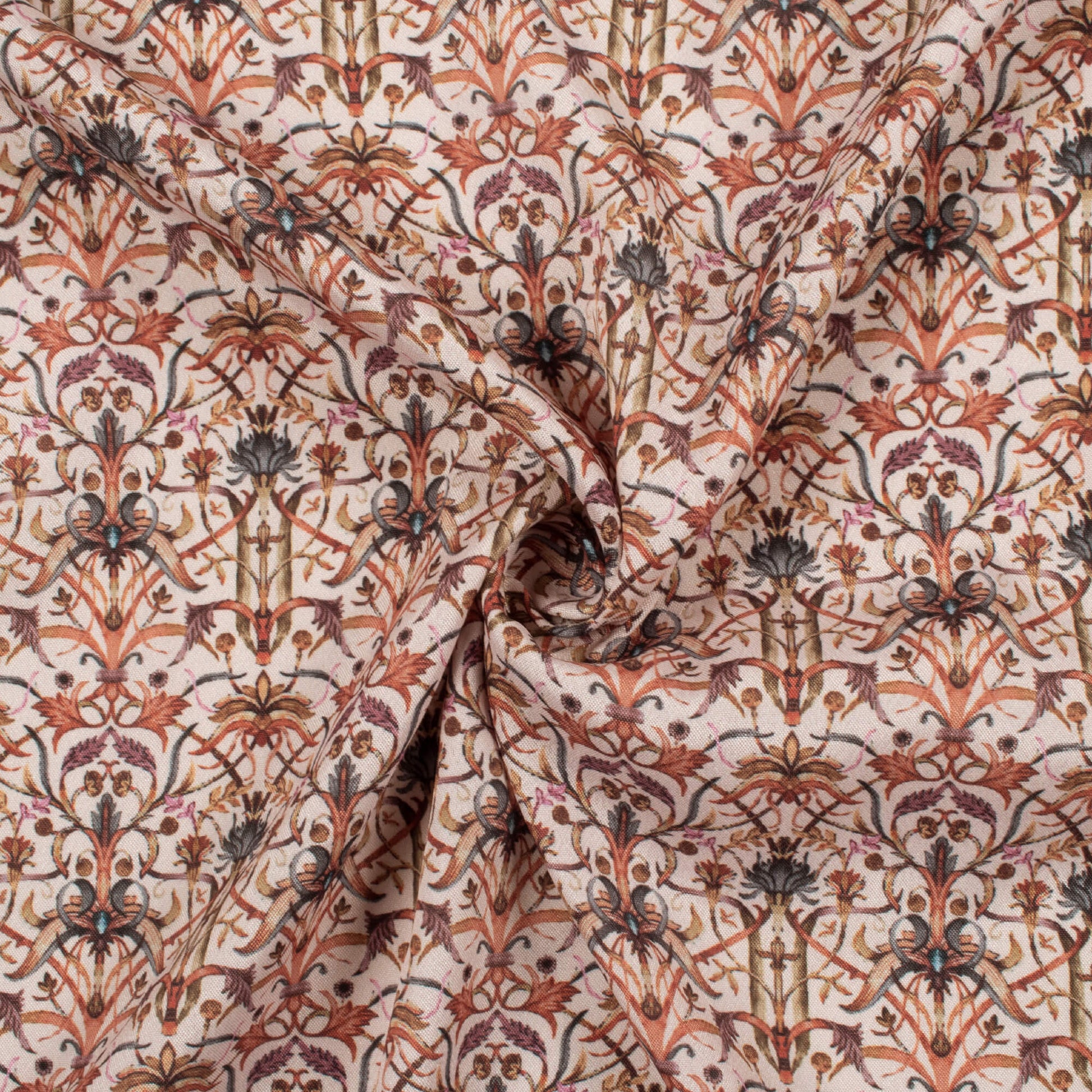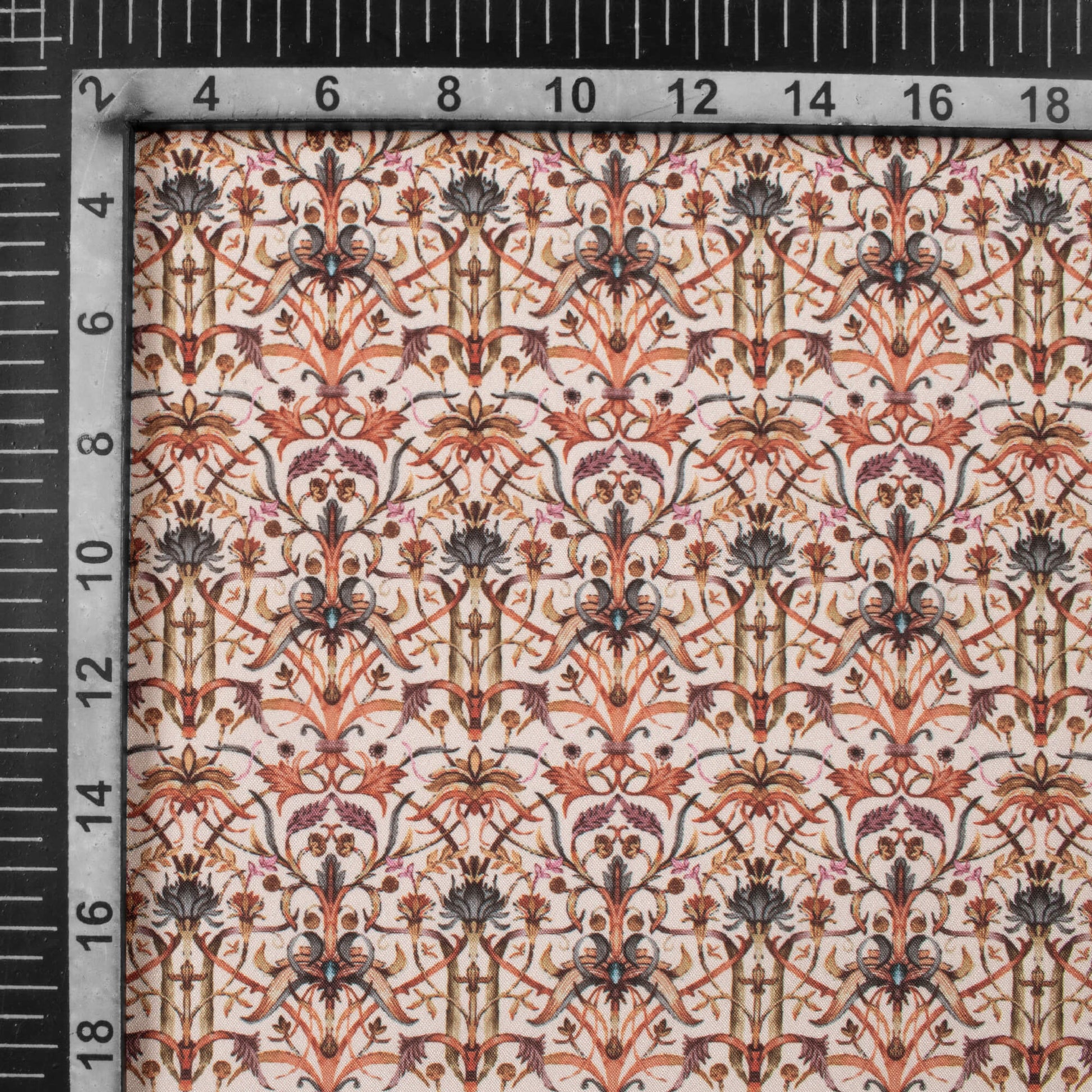 Peach And Red Traditional Pattern Digital Print Crepe Silk Fabric