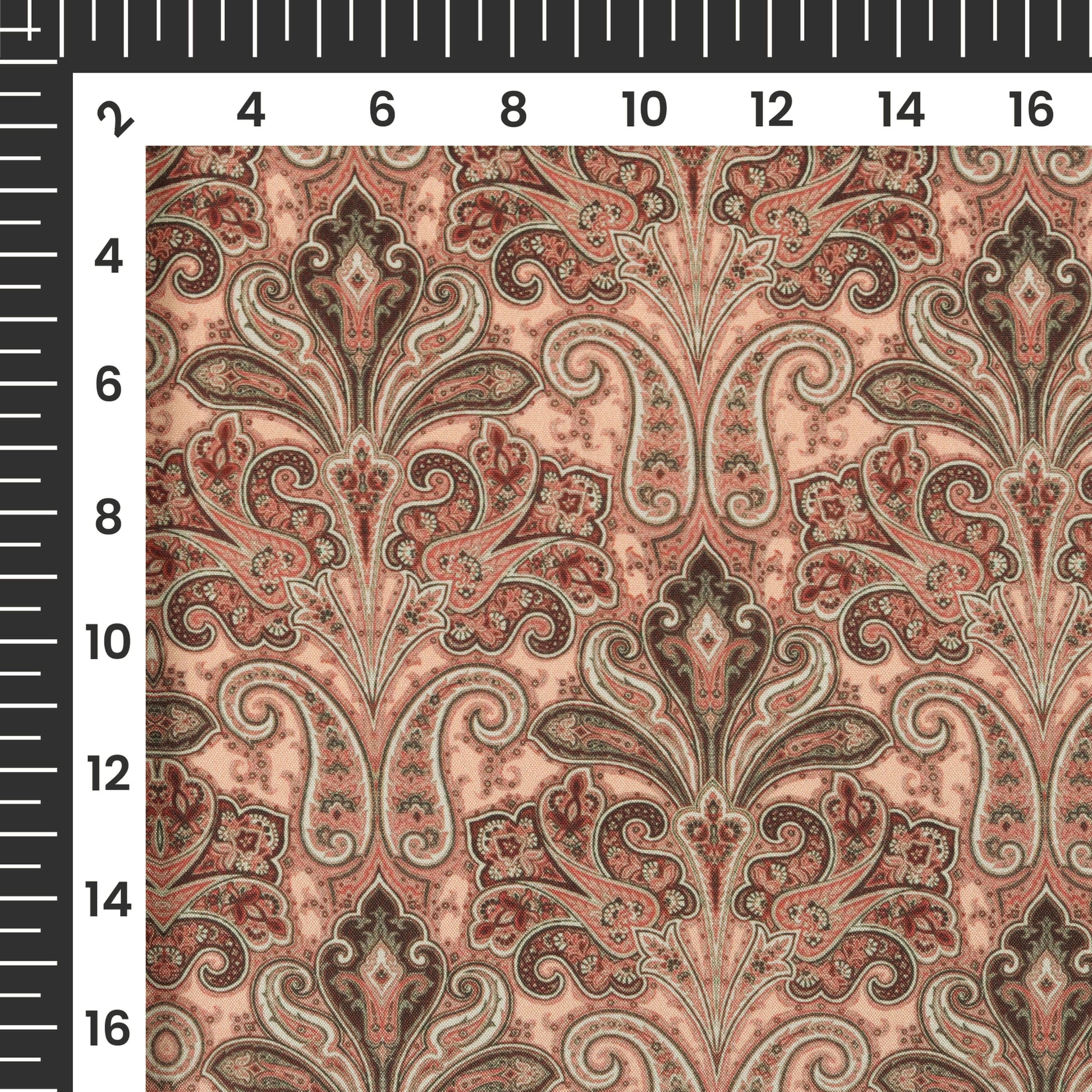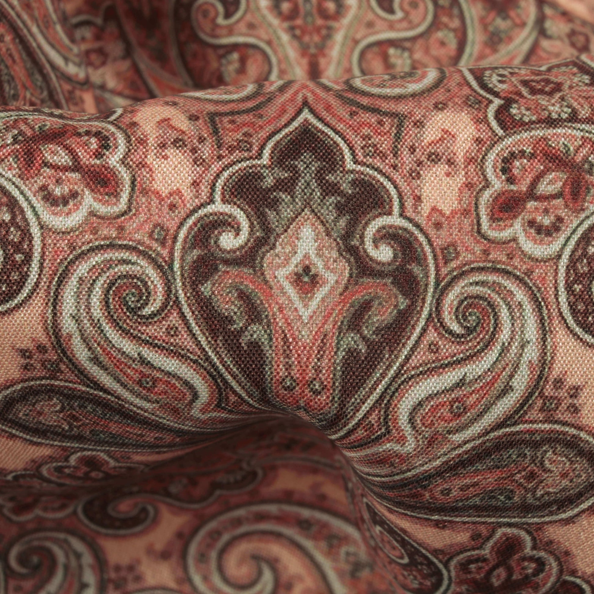 Peach Paisley Pattern Digital Print Crepe Silk Fabric