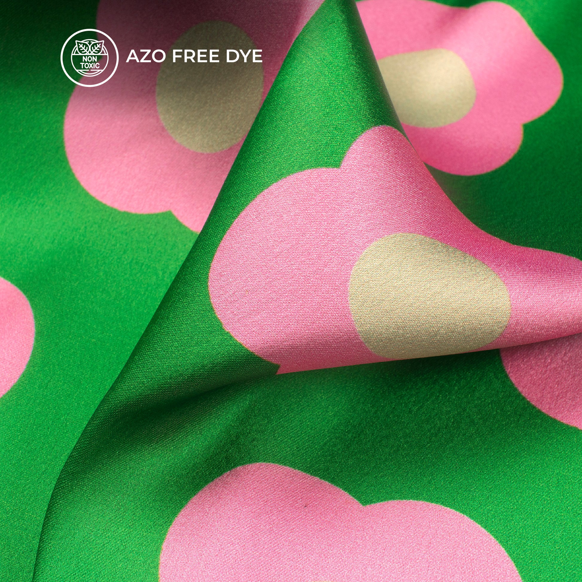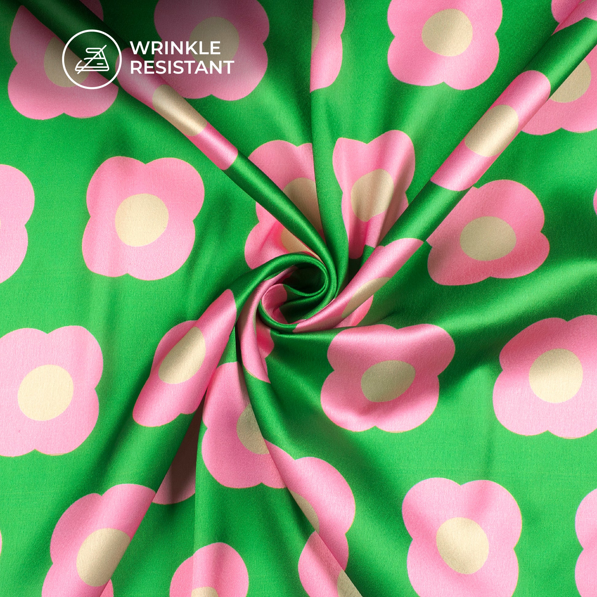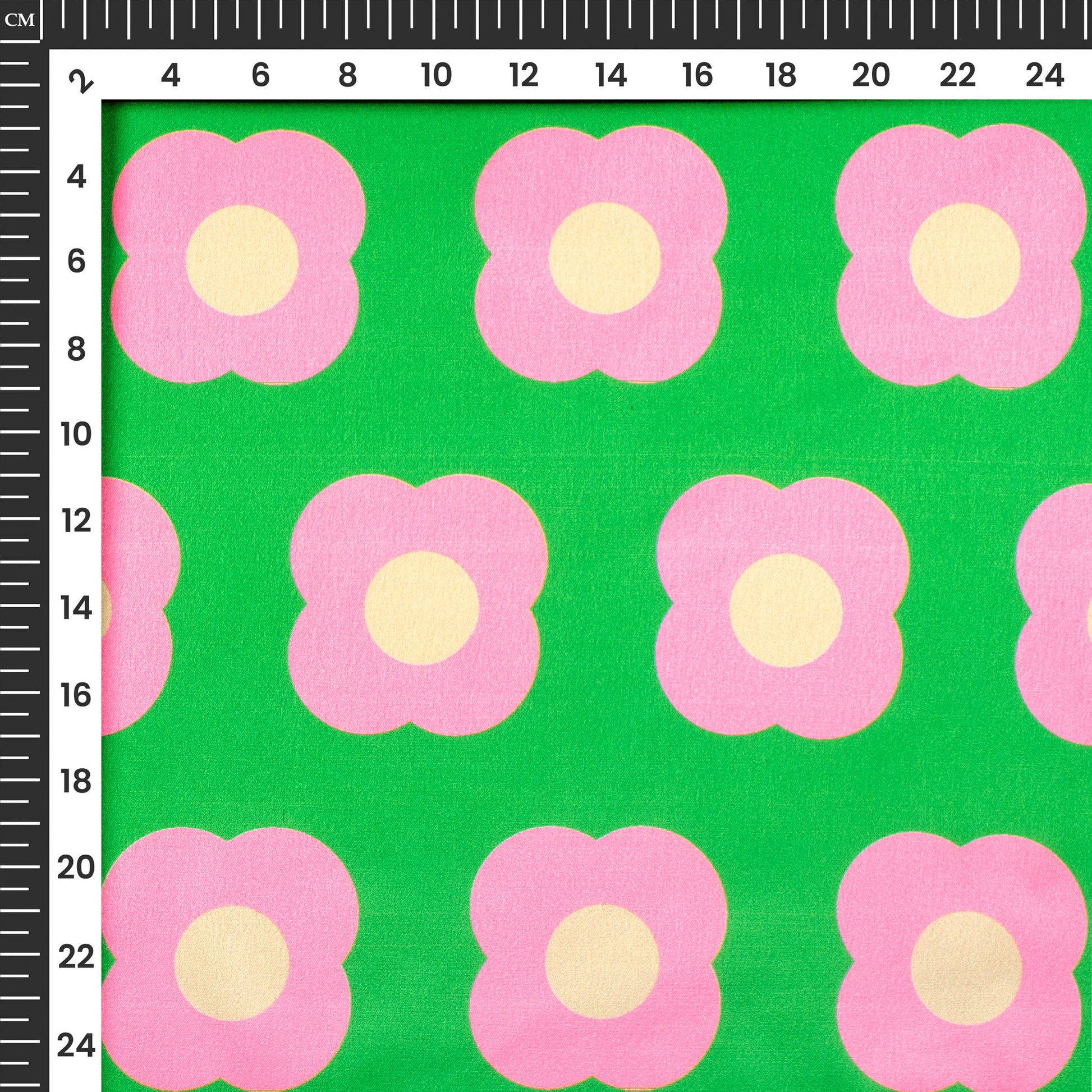 Pink And Green Retro Floral Digital Print Japan Satin Fabric