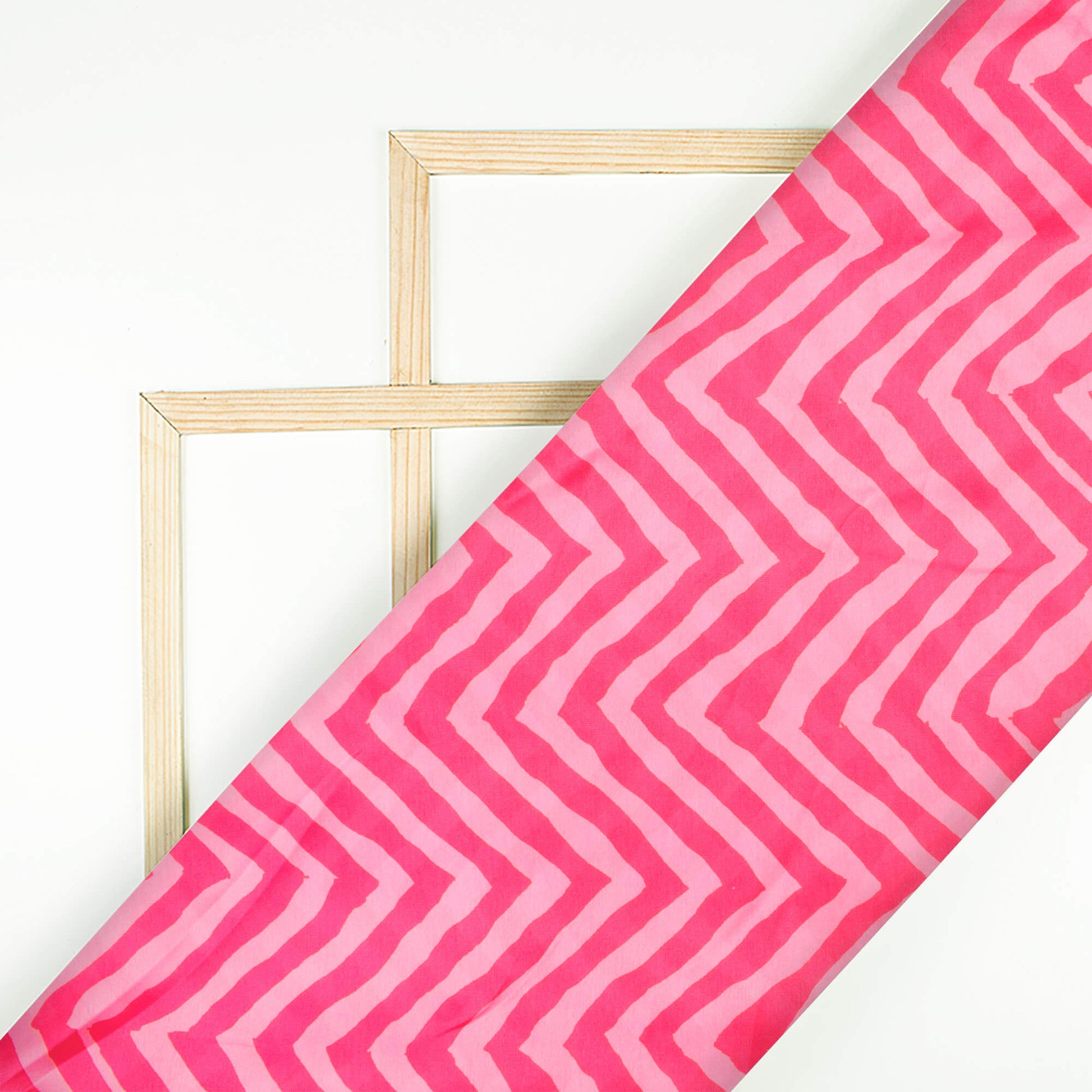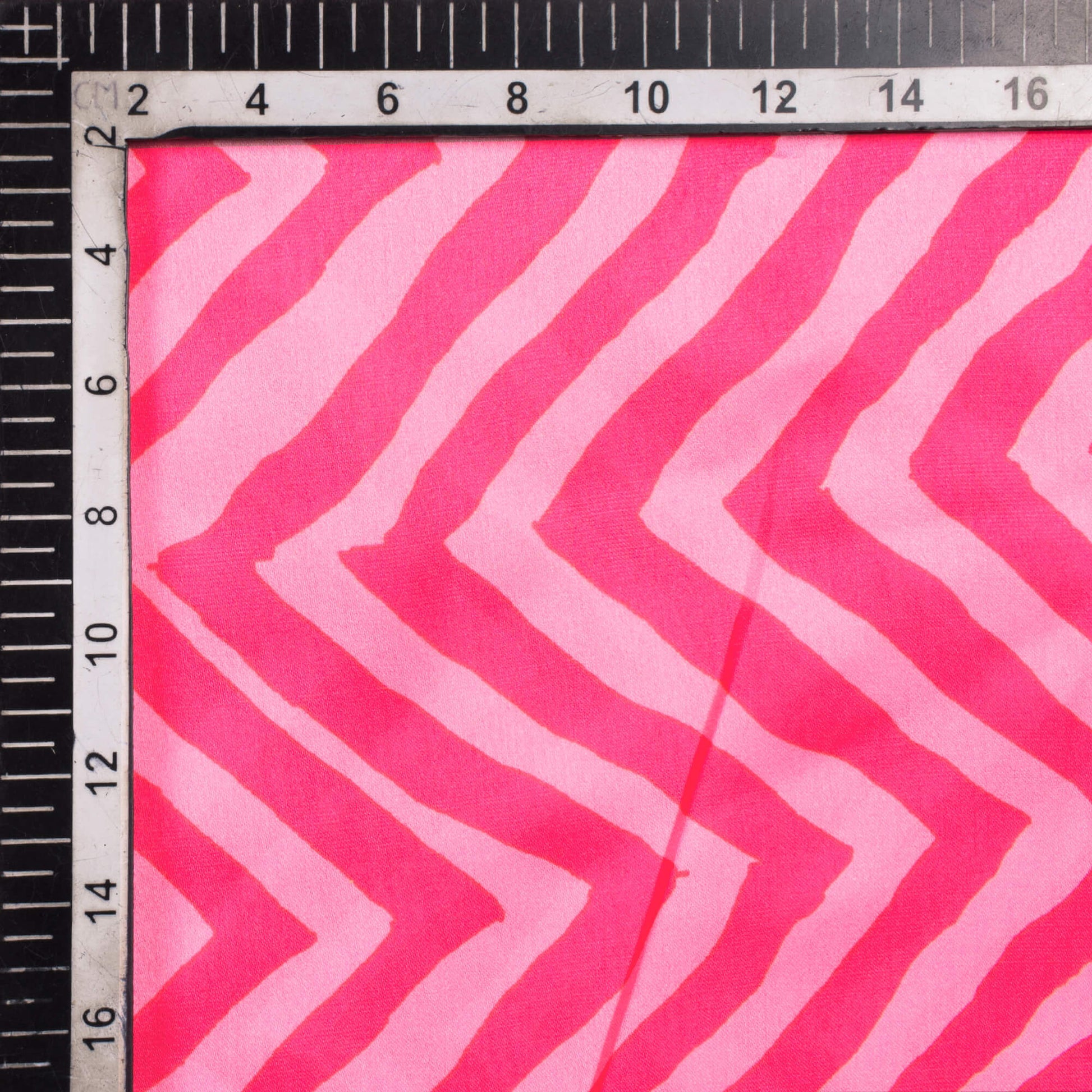 Pink Chevron Pattern Digital Print Georgette Satin Fabric