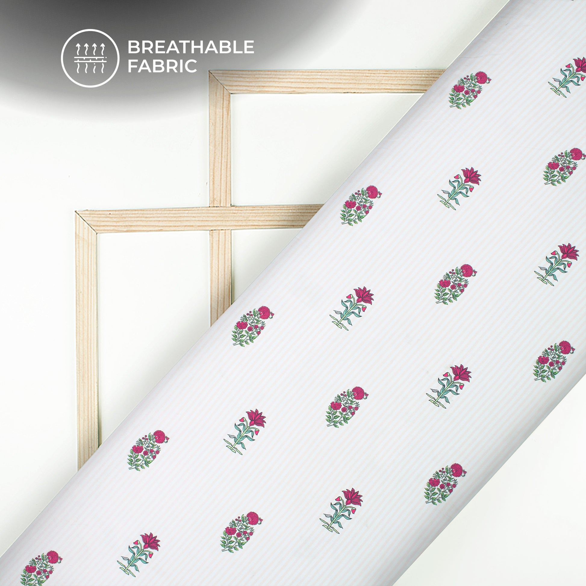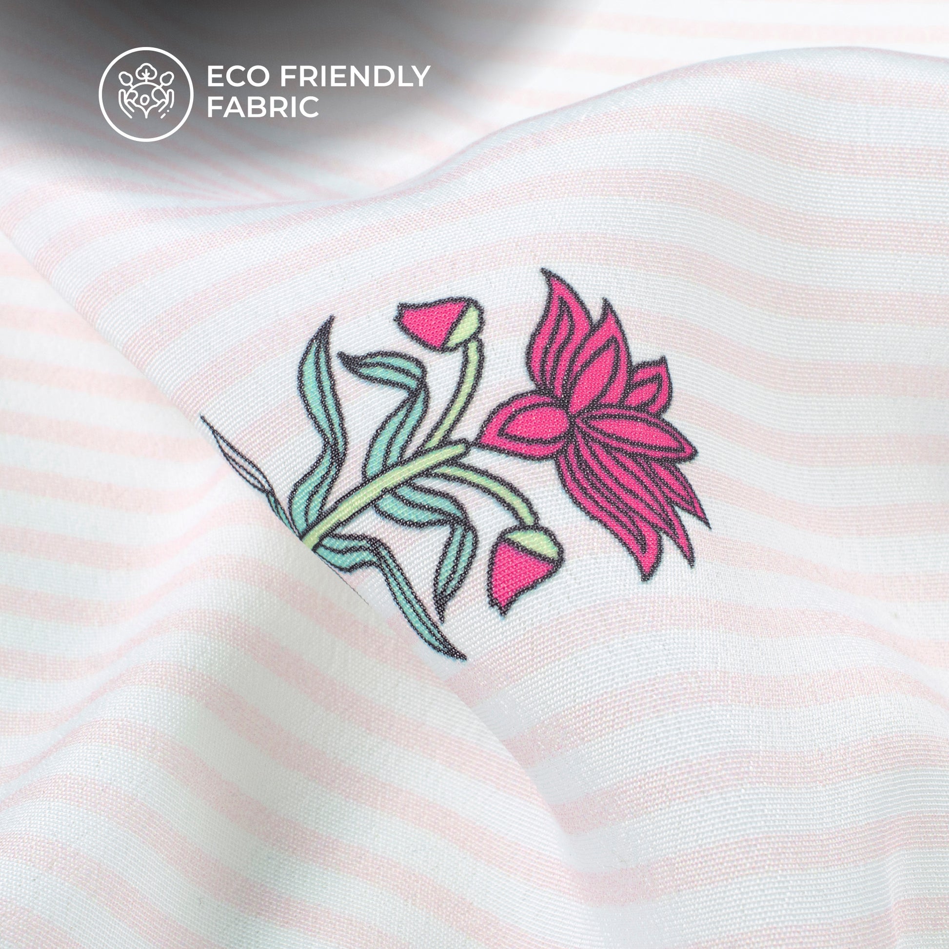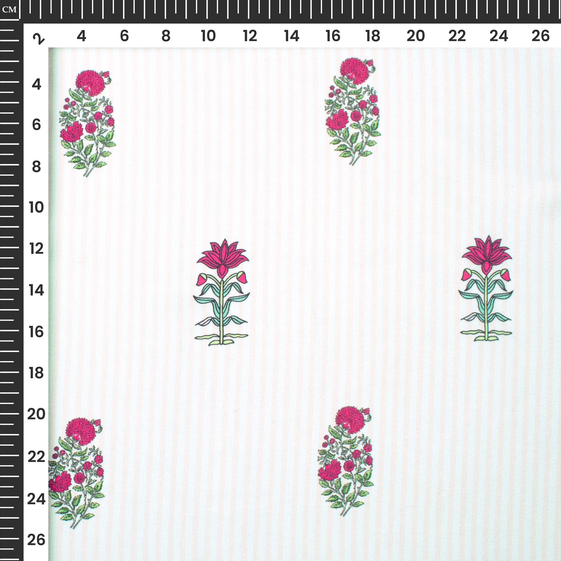 Pink Floral Stripes Paisley Digital Print Crepe Silk Fabric