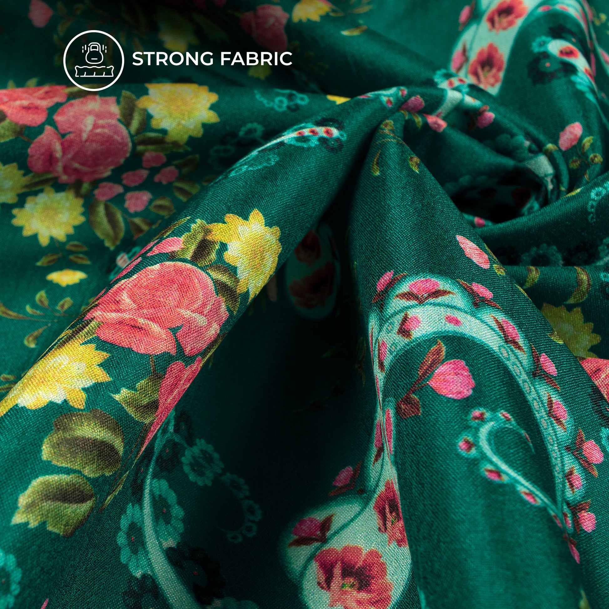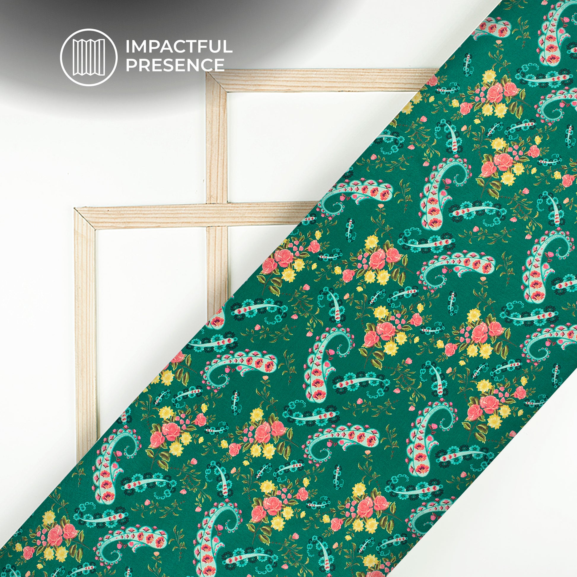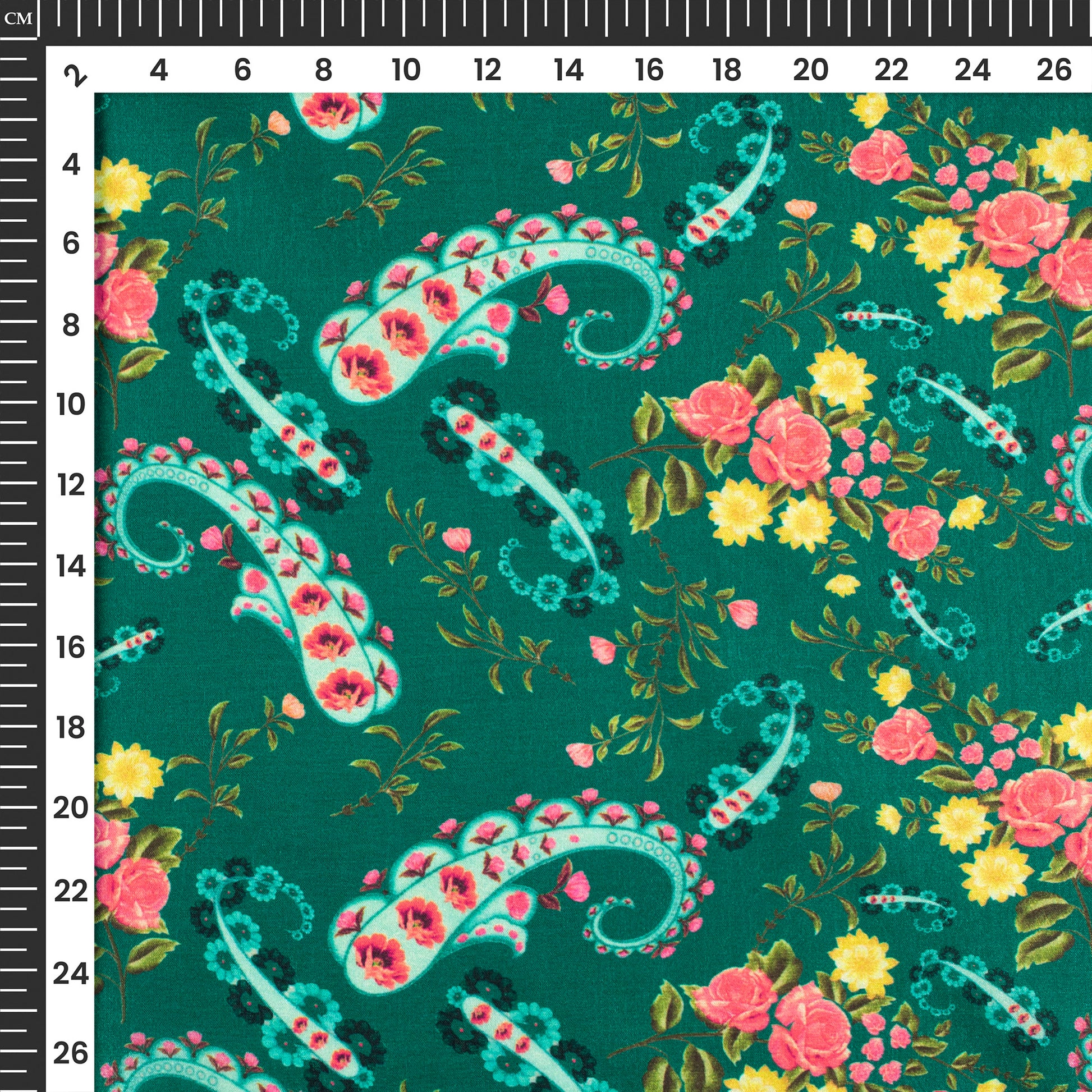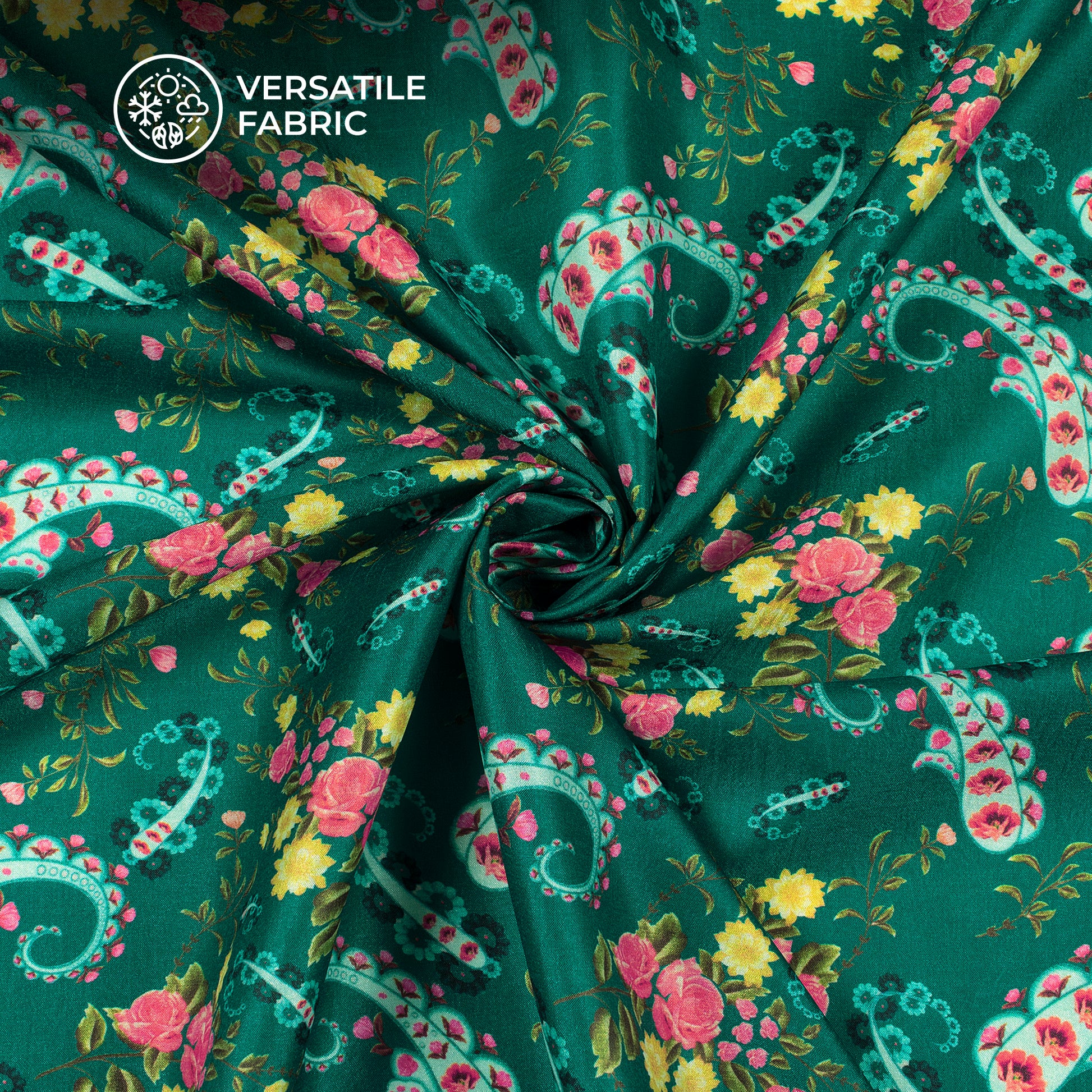 Pink Green Paisley Digital Print Flat Silk Fabric