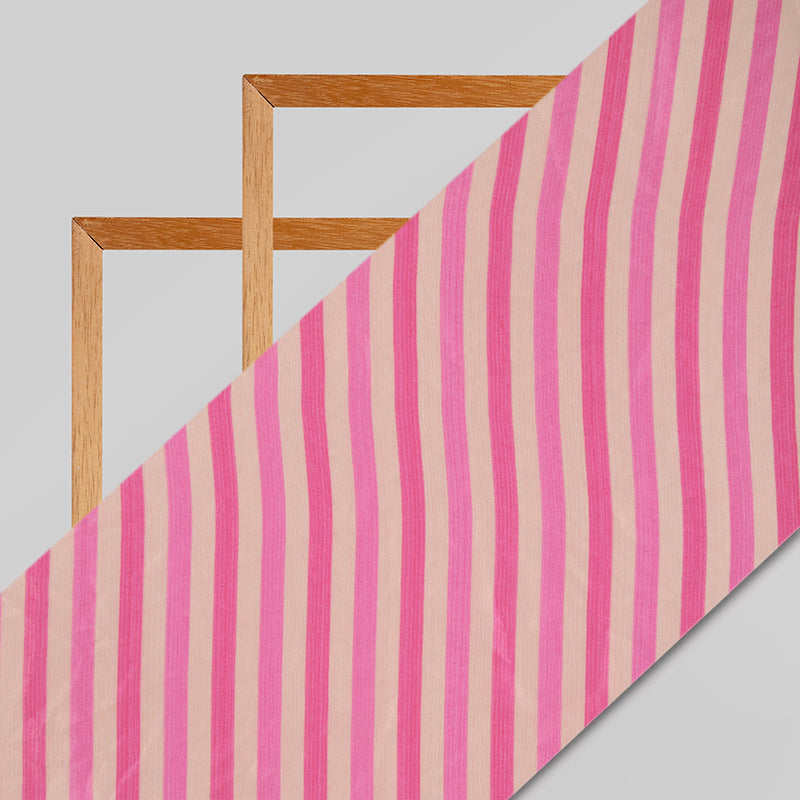 Pink Stripes Patten Digital Print Crepe Silk Fabric
