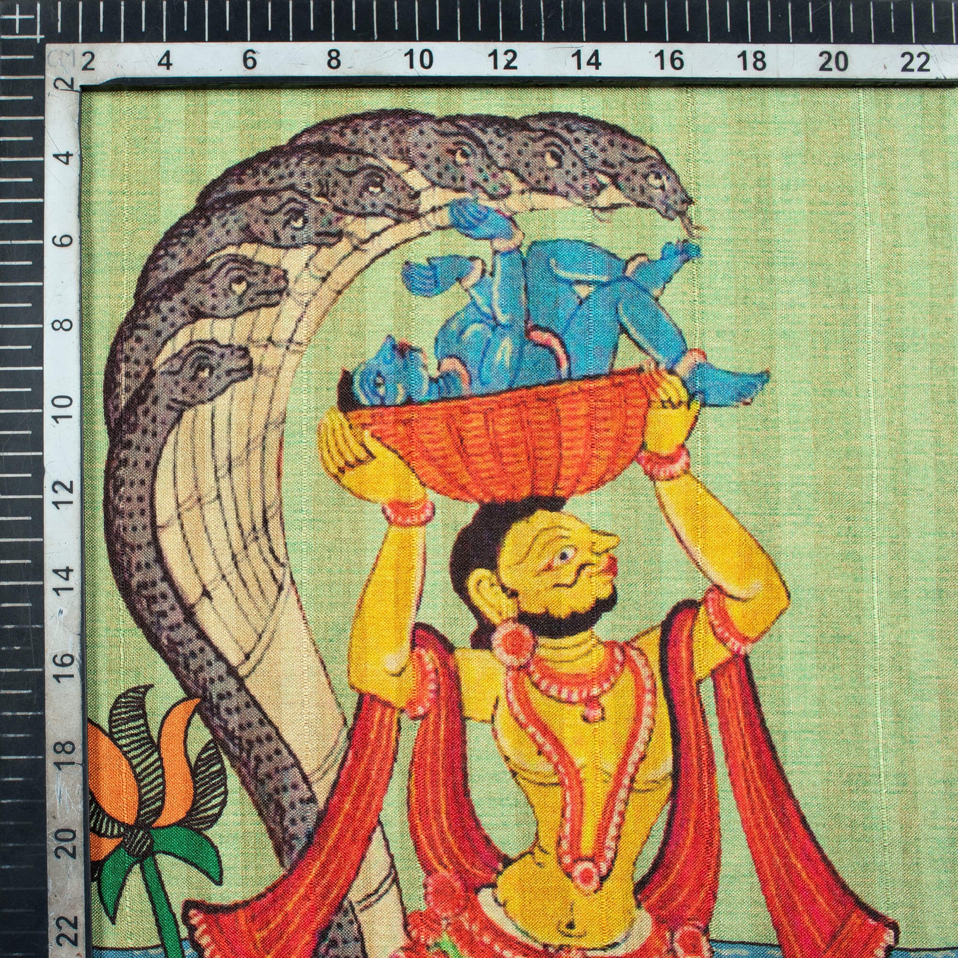 Pistachio Green And Maya Blue Madhuvanii Pattern Digital Print Art Tusser Silk Fabric