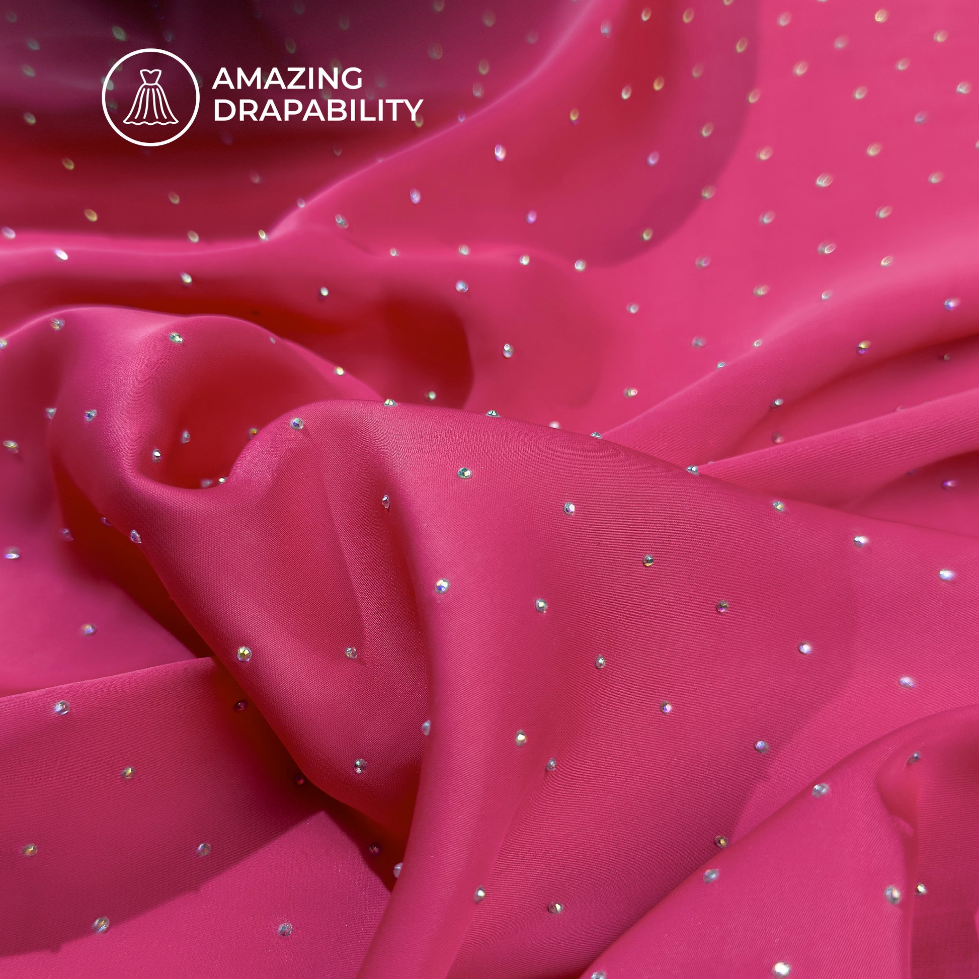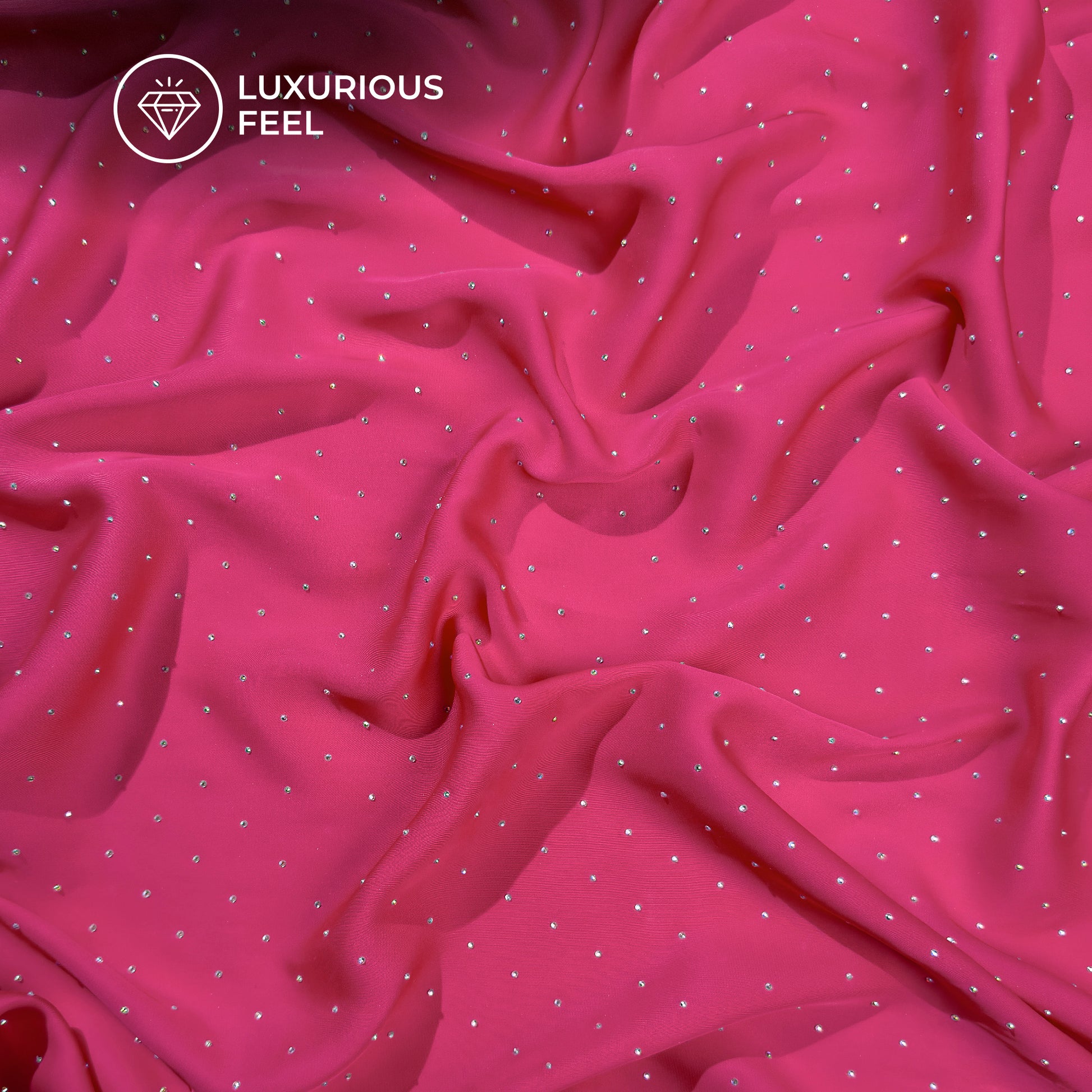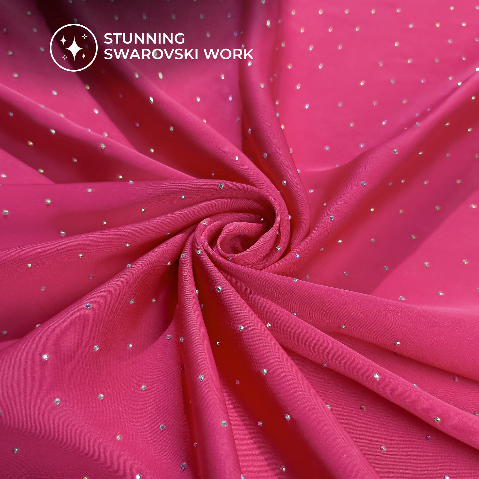 Plain Punch Pink Svarovski Work Imported Satin Fabric