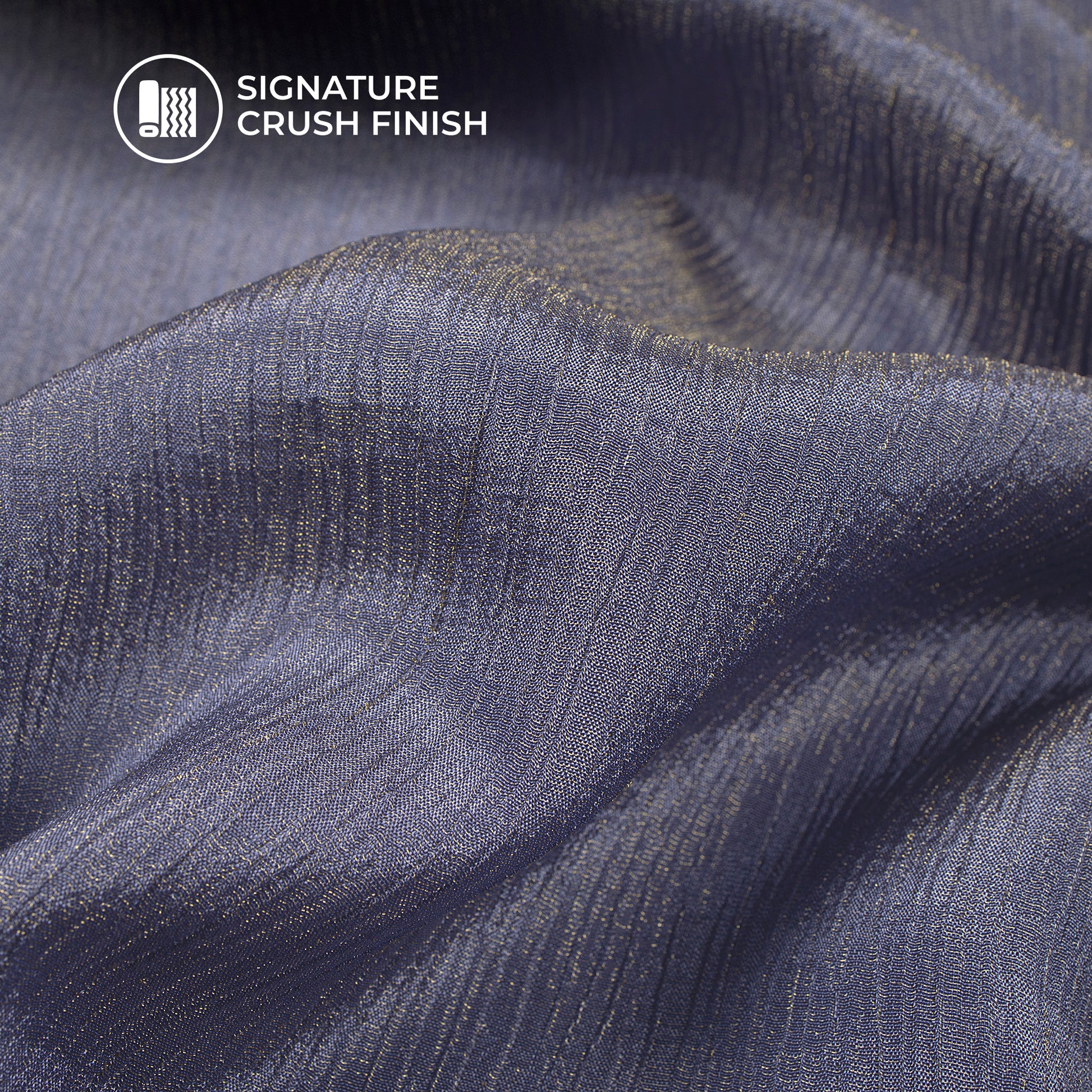 Plain Steel Blue Crushed Pure Organza Shimmer Tissue Fabric