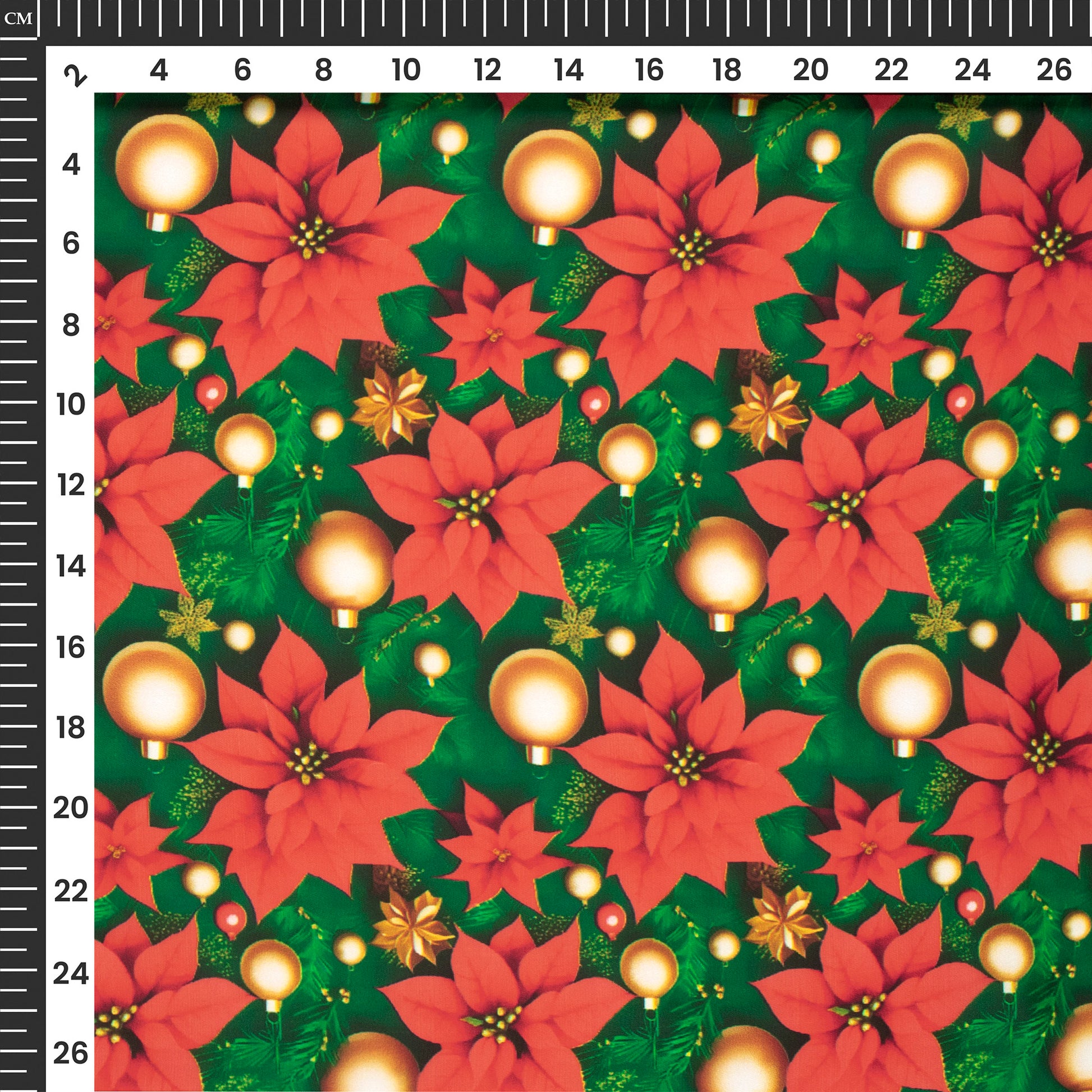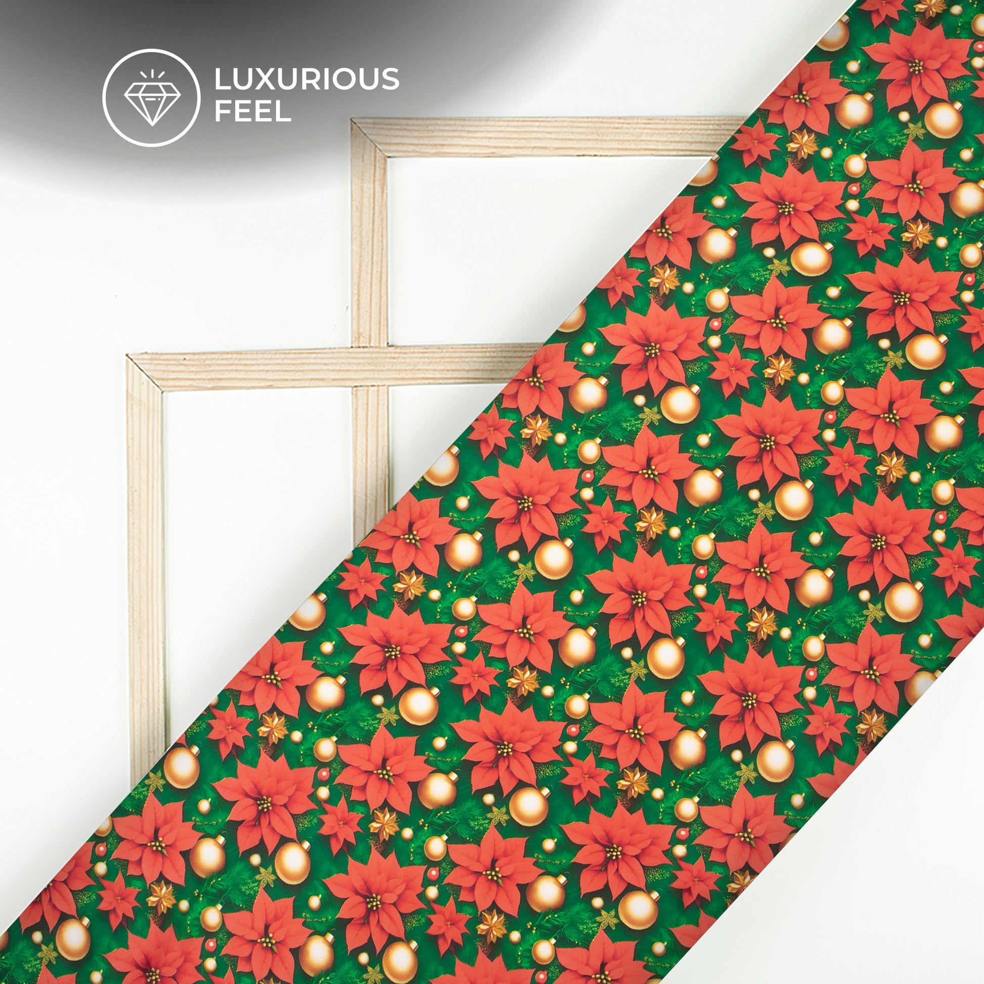 Popular Modified Leaves With Christmas Ornaments Digital Print Imported Satin Fabric