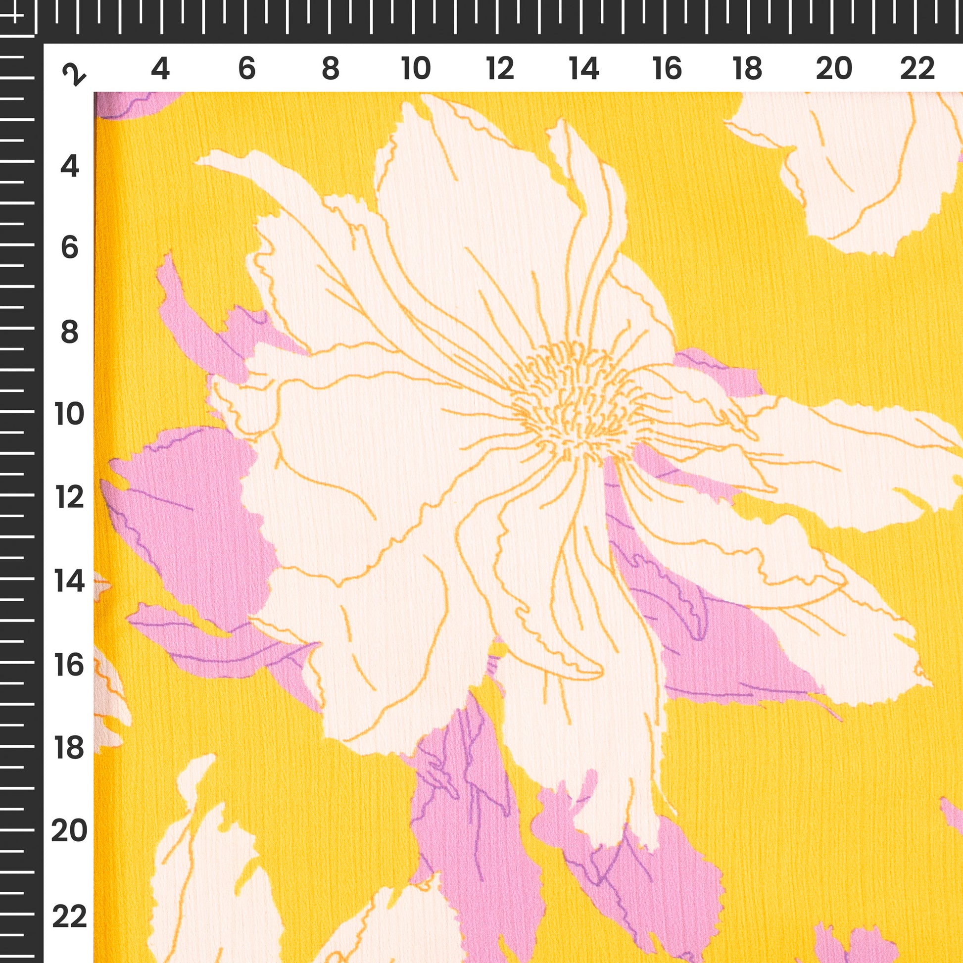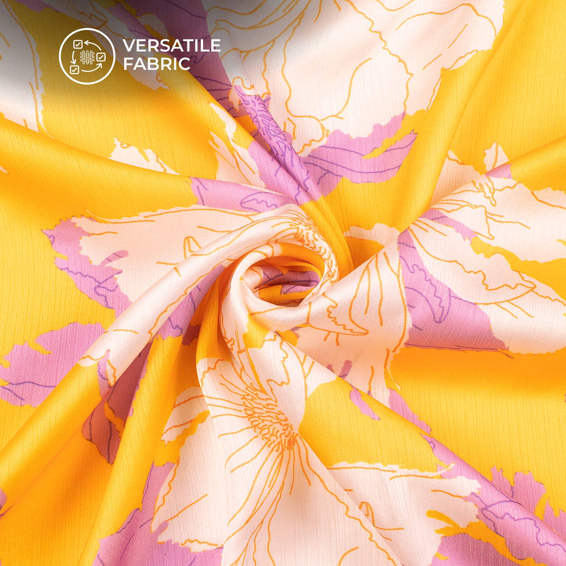 Posh Yellow Floral Digital Print Chiffon Satin Fabric