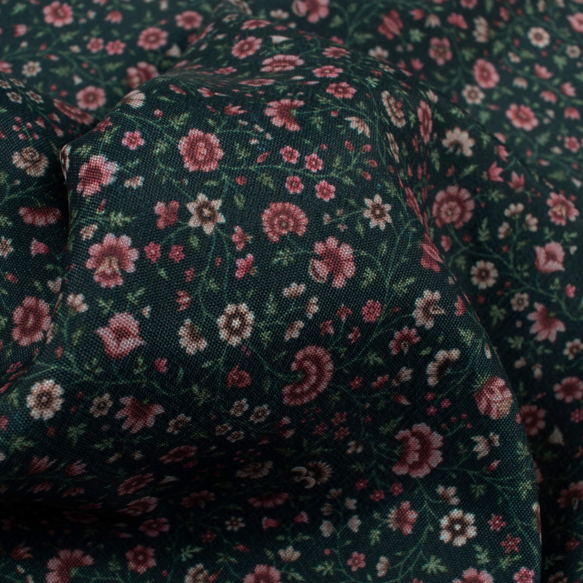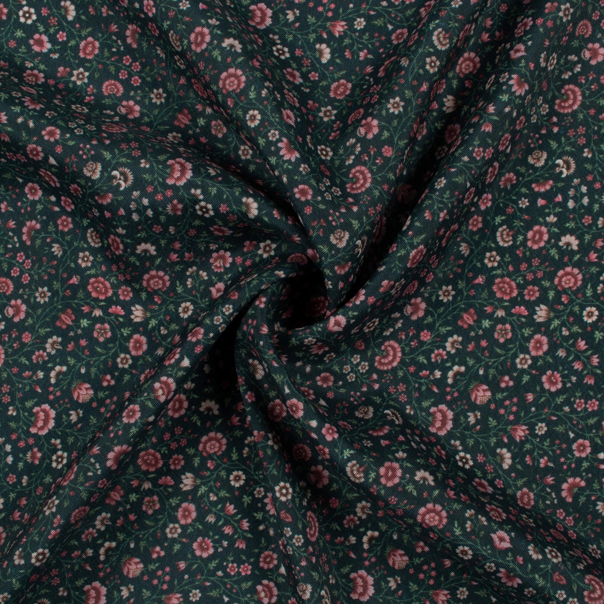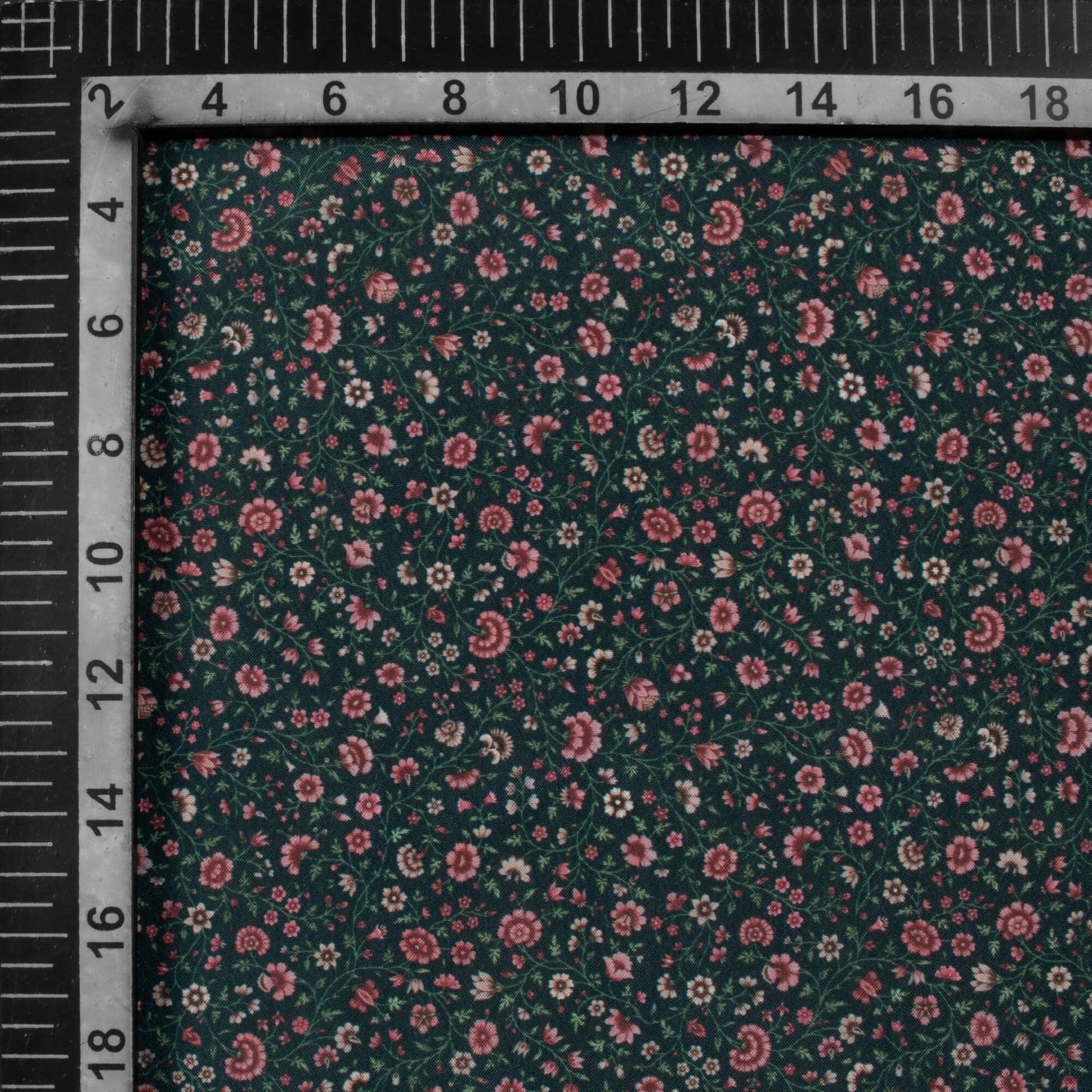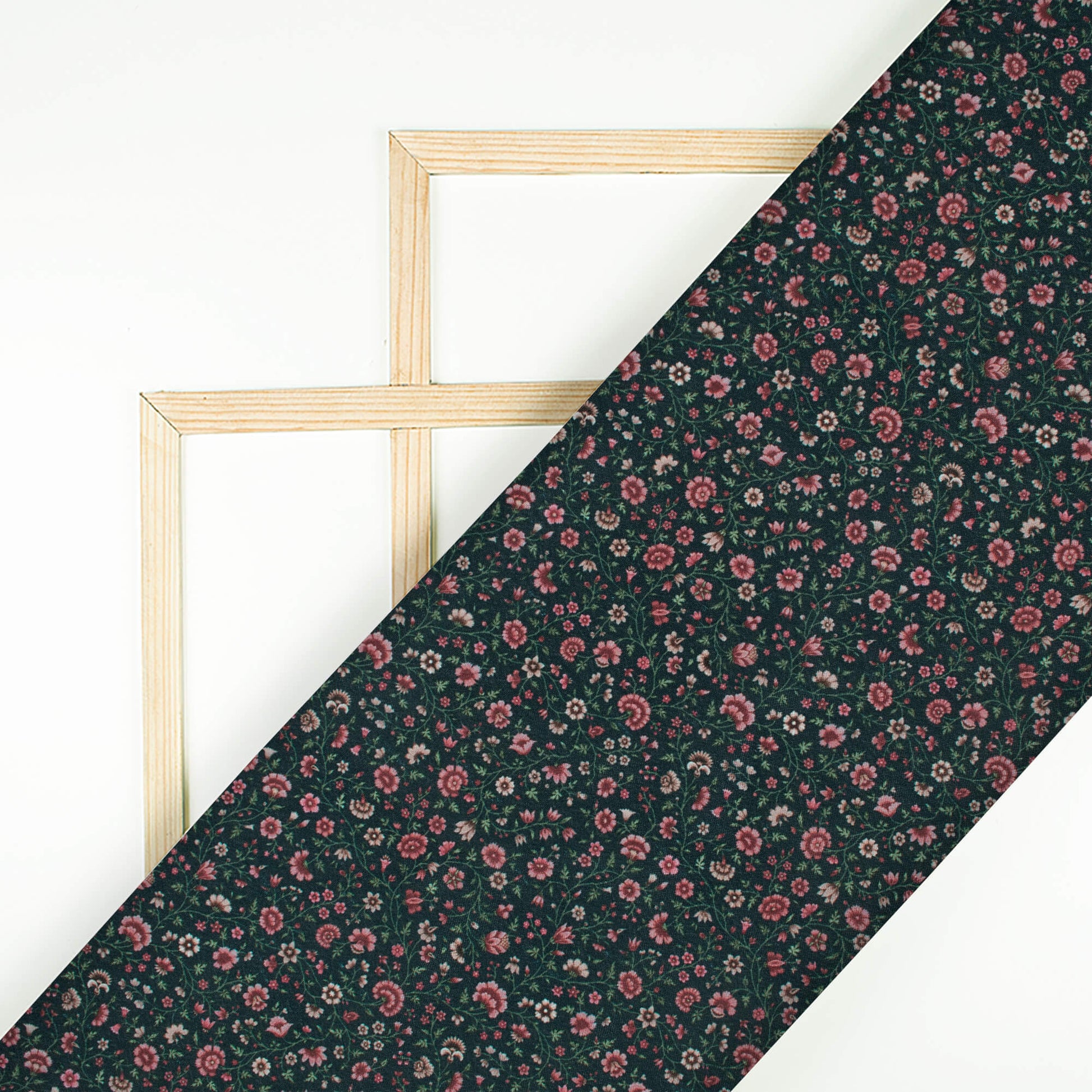 Prussian Blue And Pink Floral Pattern Digital Print Crepe Silk Fabric