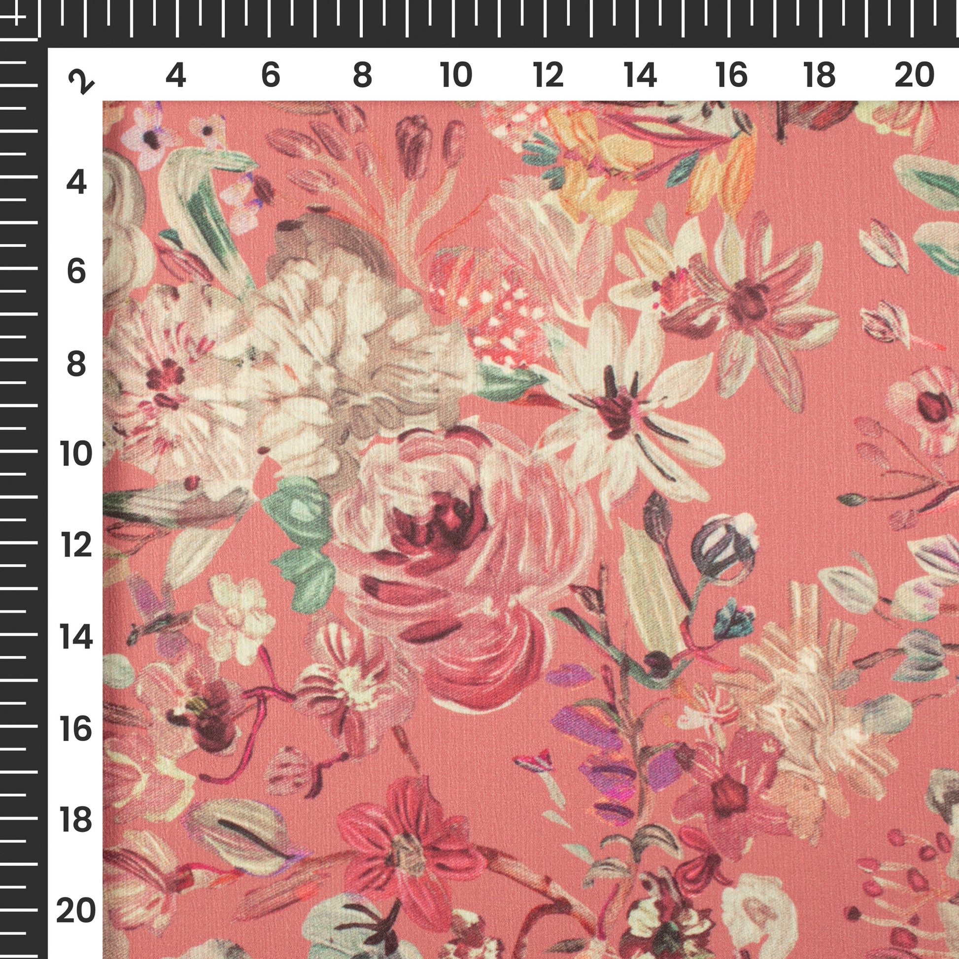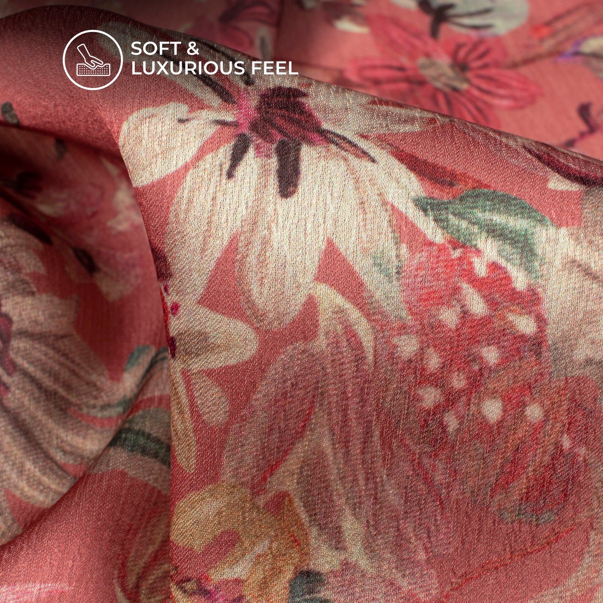 Punch Pink Floral Digital Print Chiffon Satin Fabric