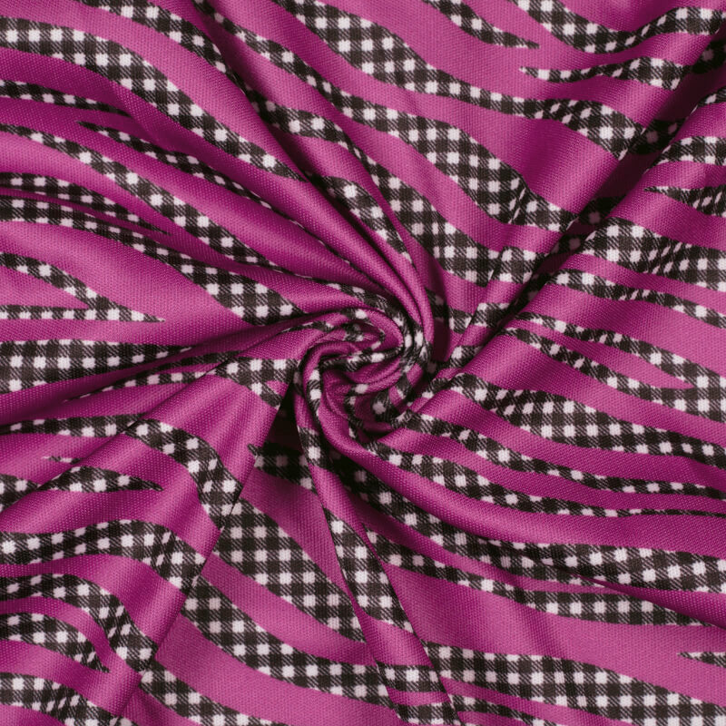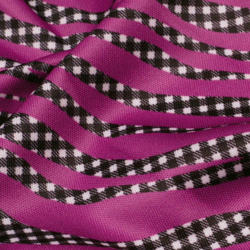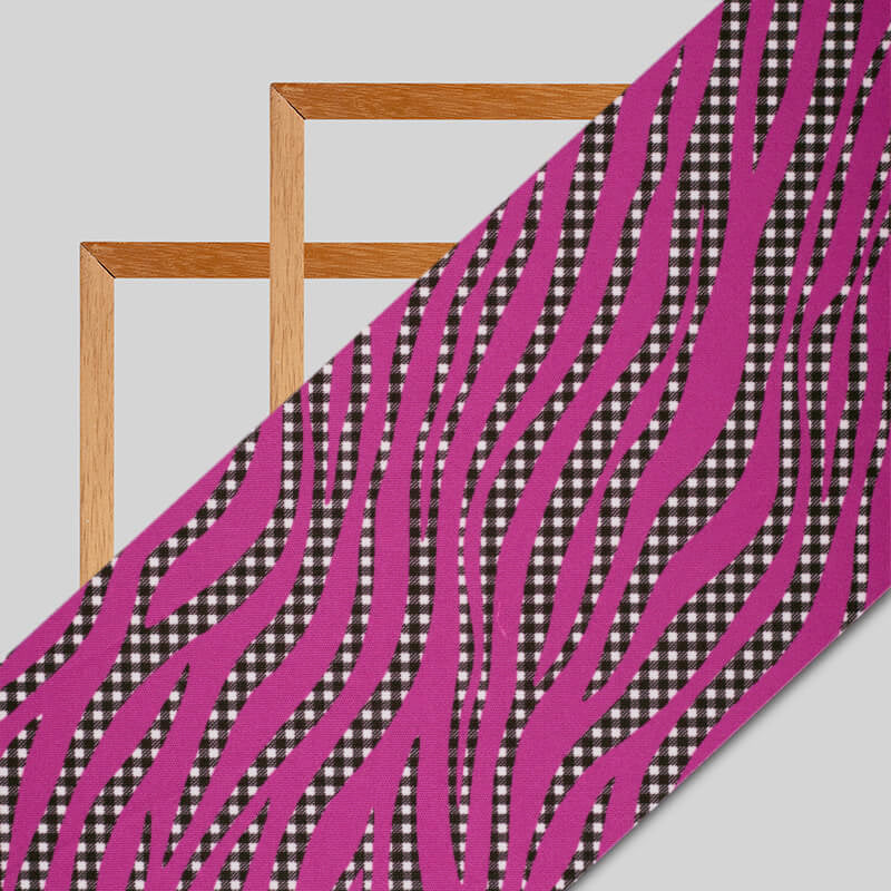 Purple And Black Geometric Pattern Digital Print Lycra Fabric (Width 58 Inches)