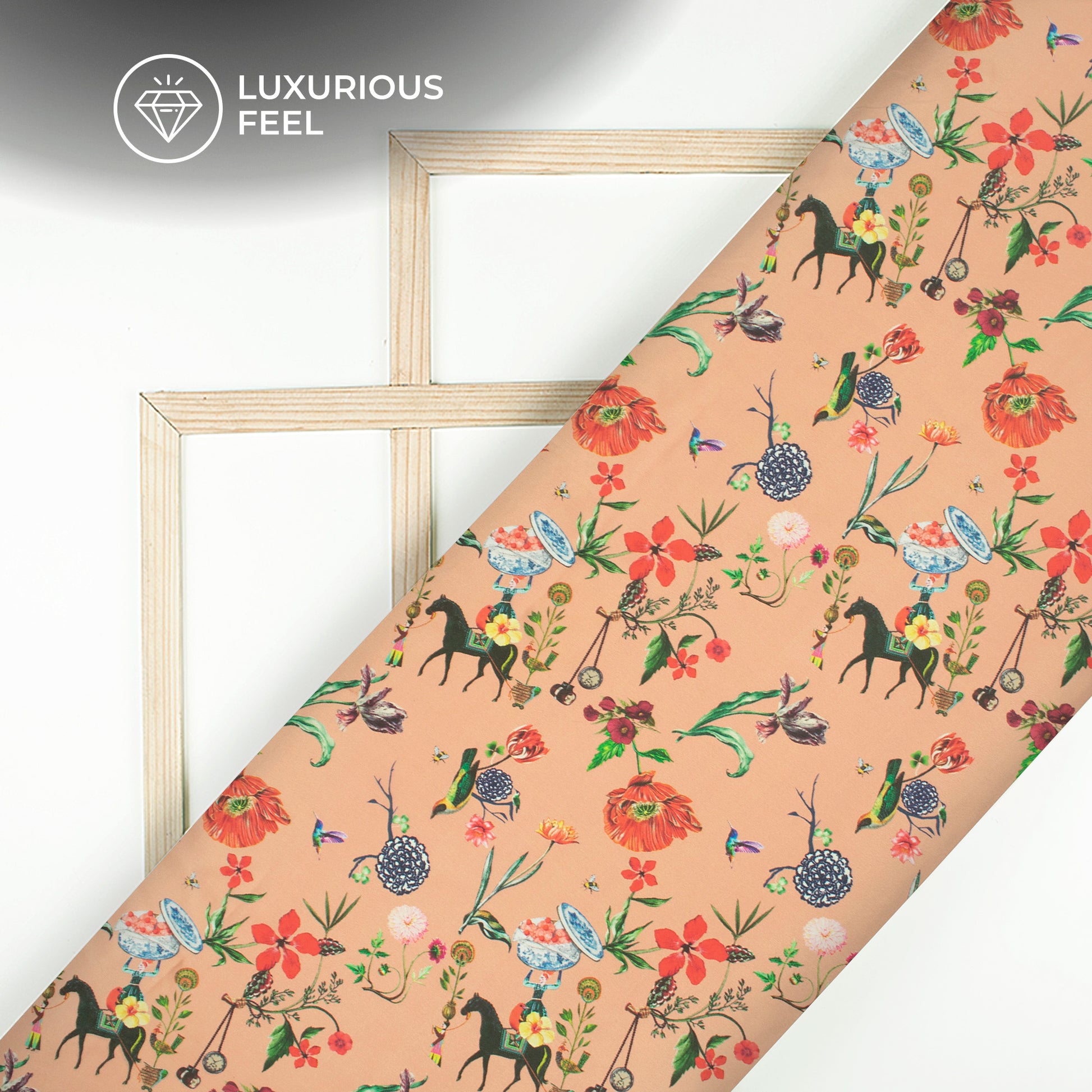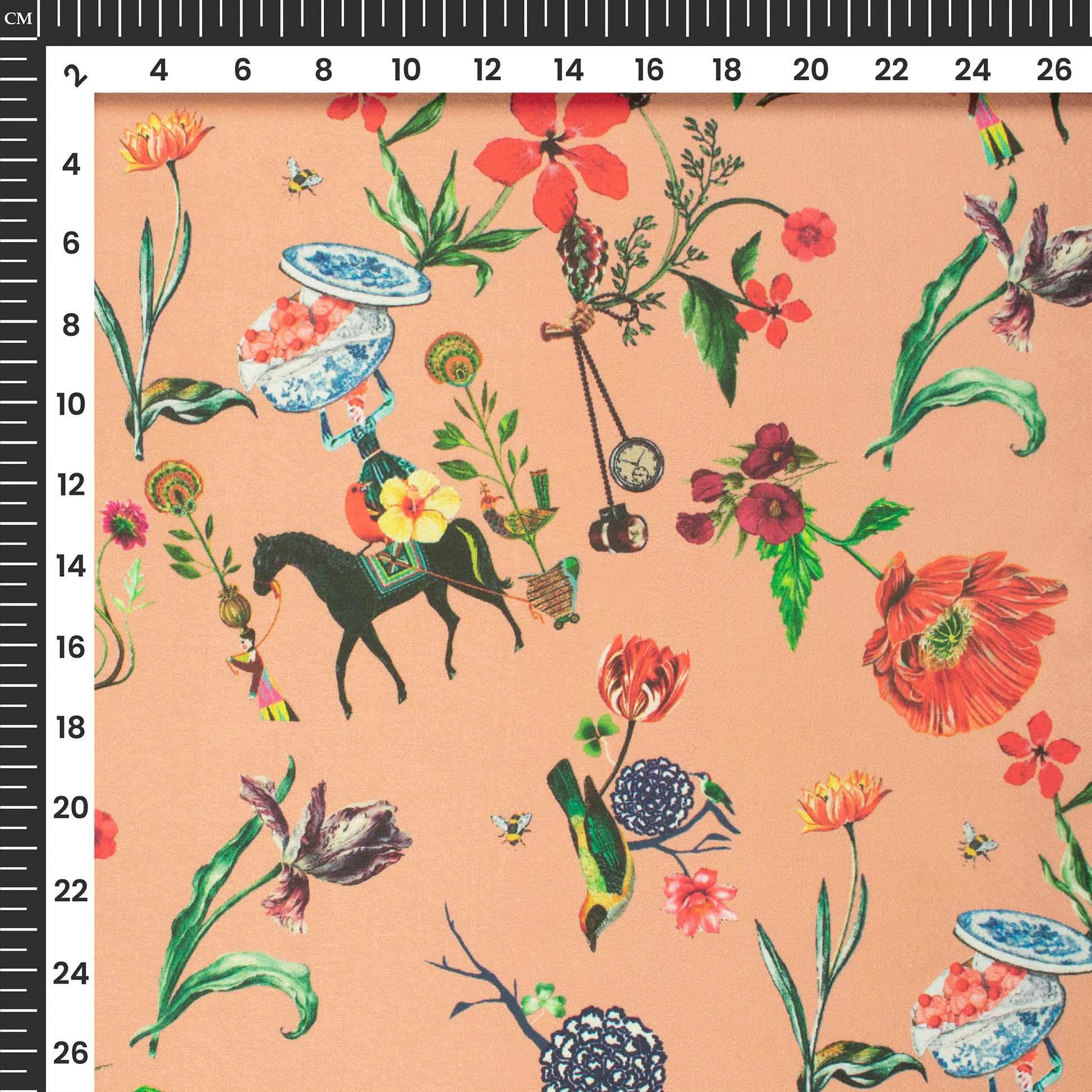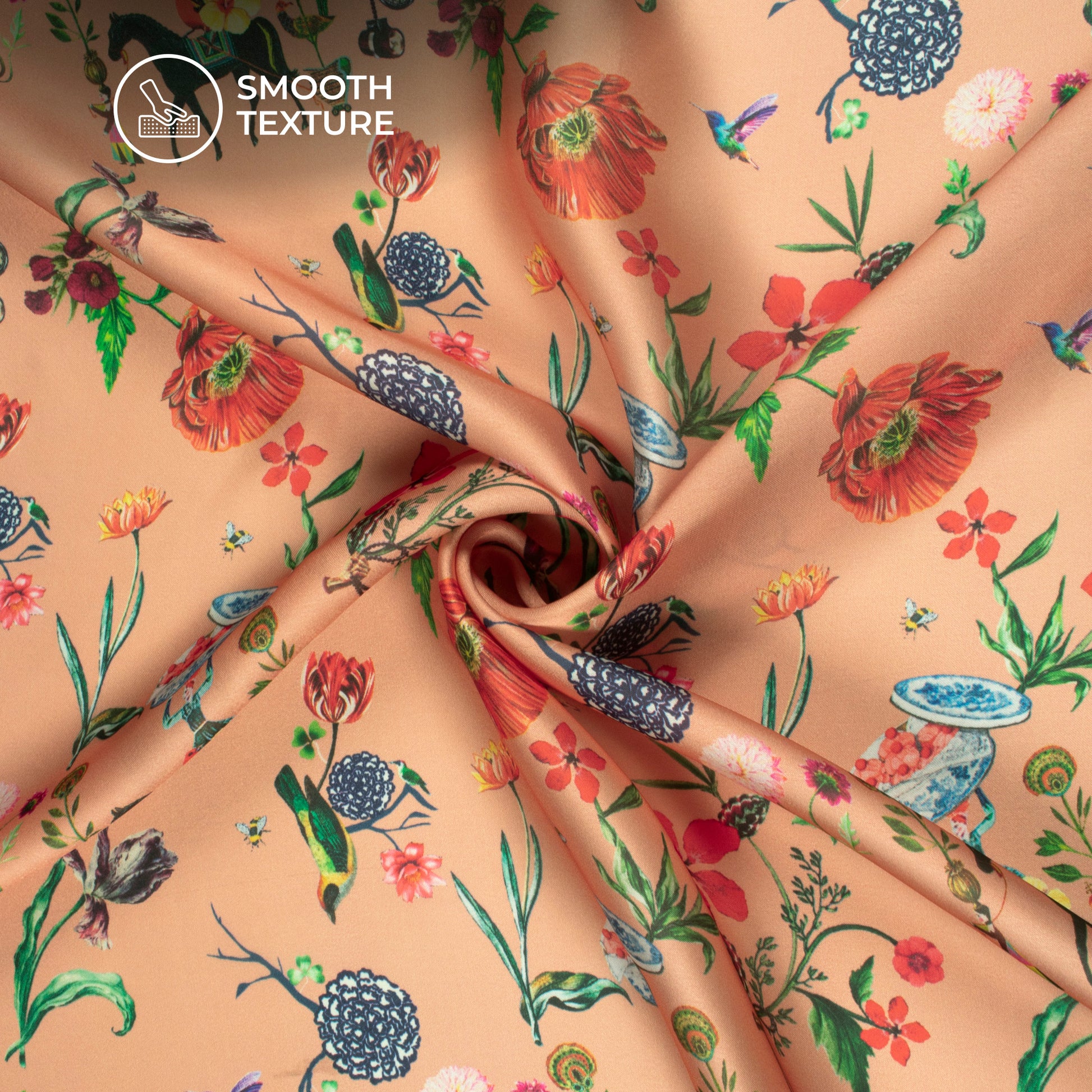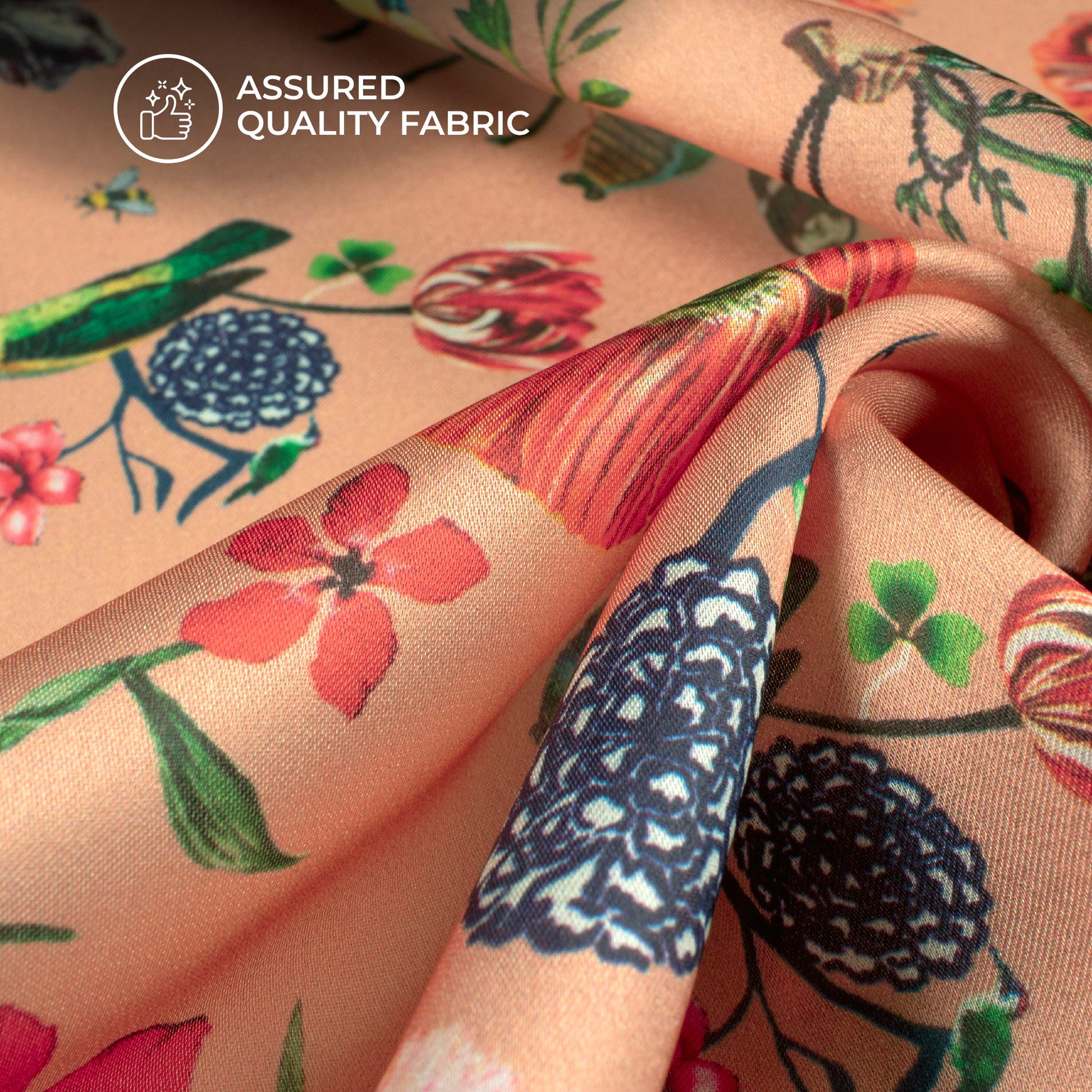 Quirky Floral Leaf Digital Print Georgette Satin Fabric