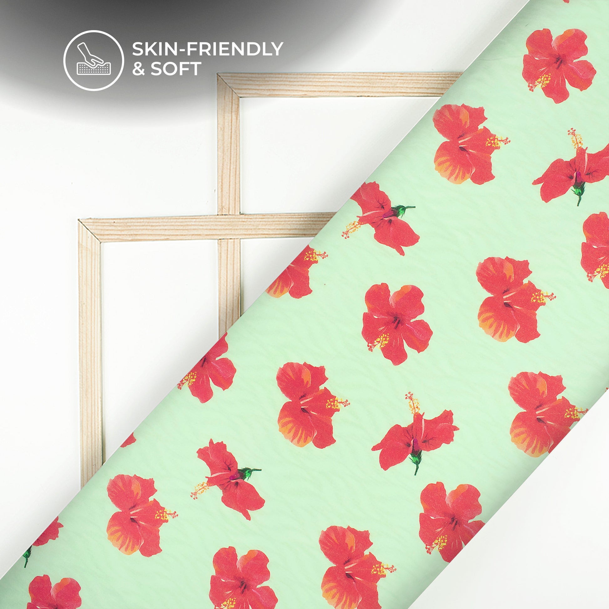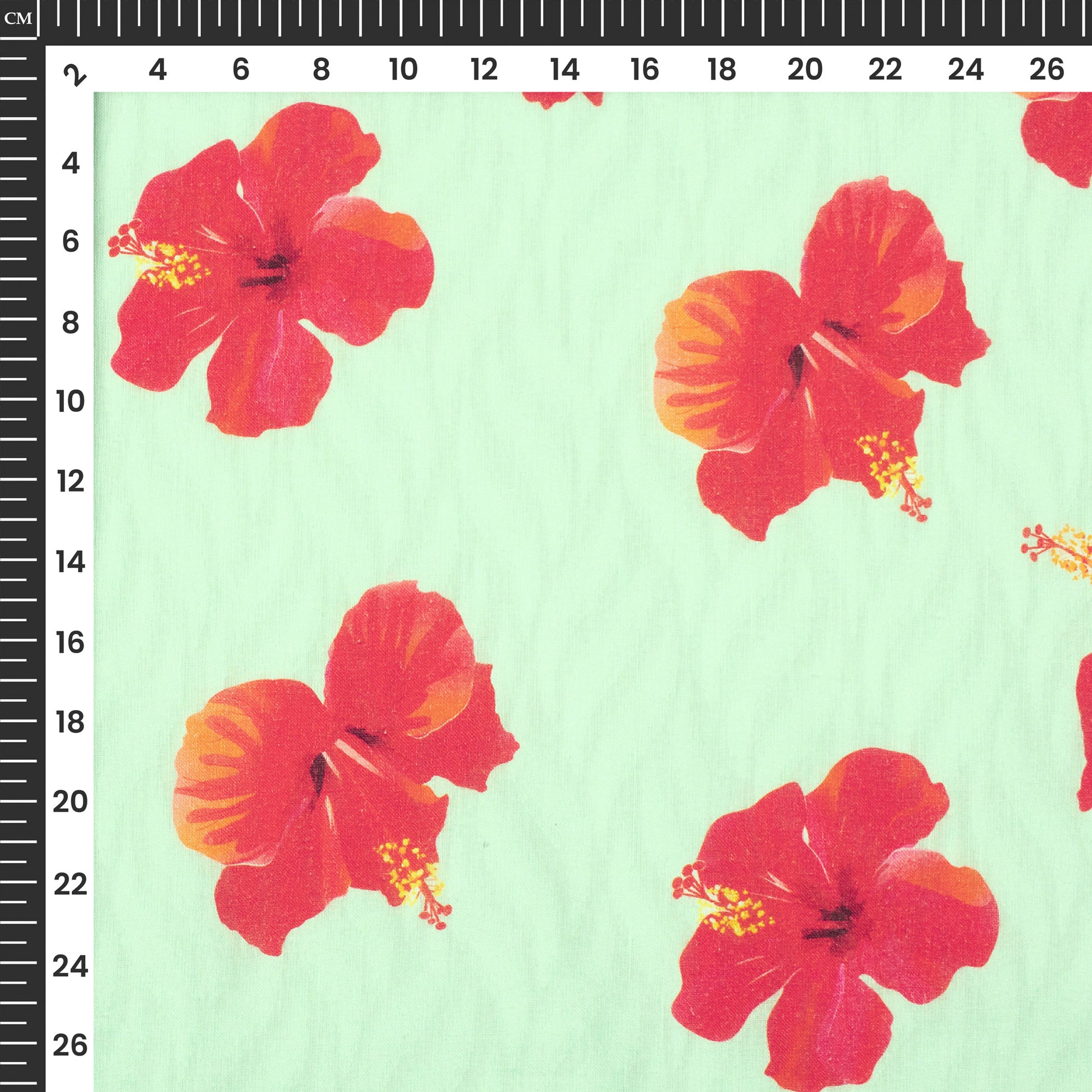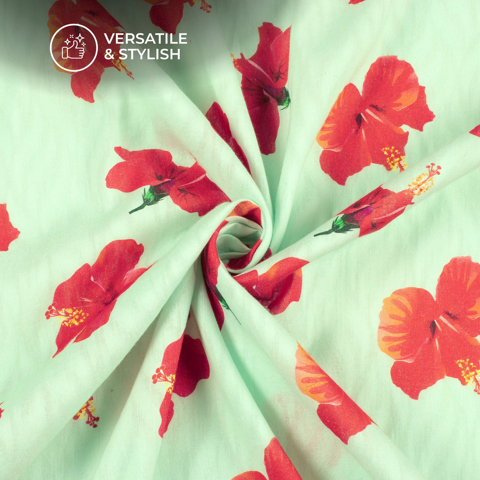 Red Hibiscus Flower Digital Print Brasso Cotton Cambric Fabric