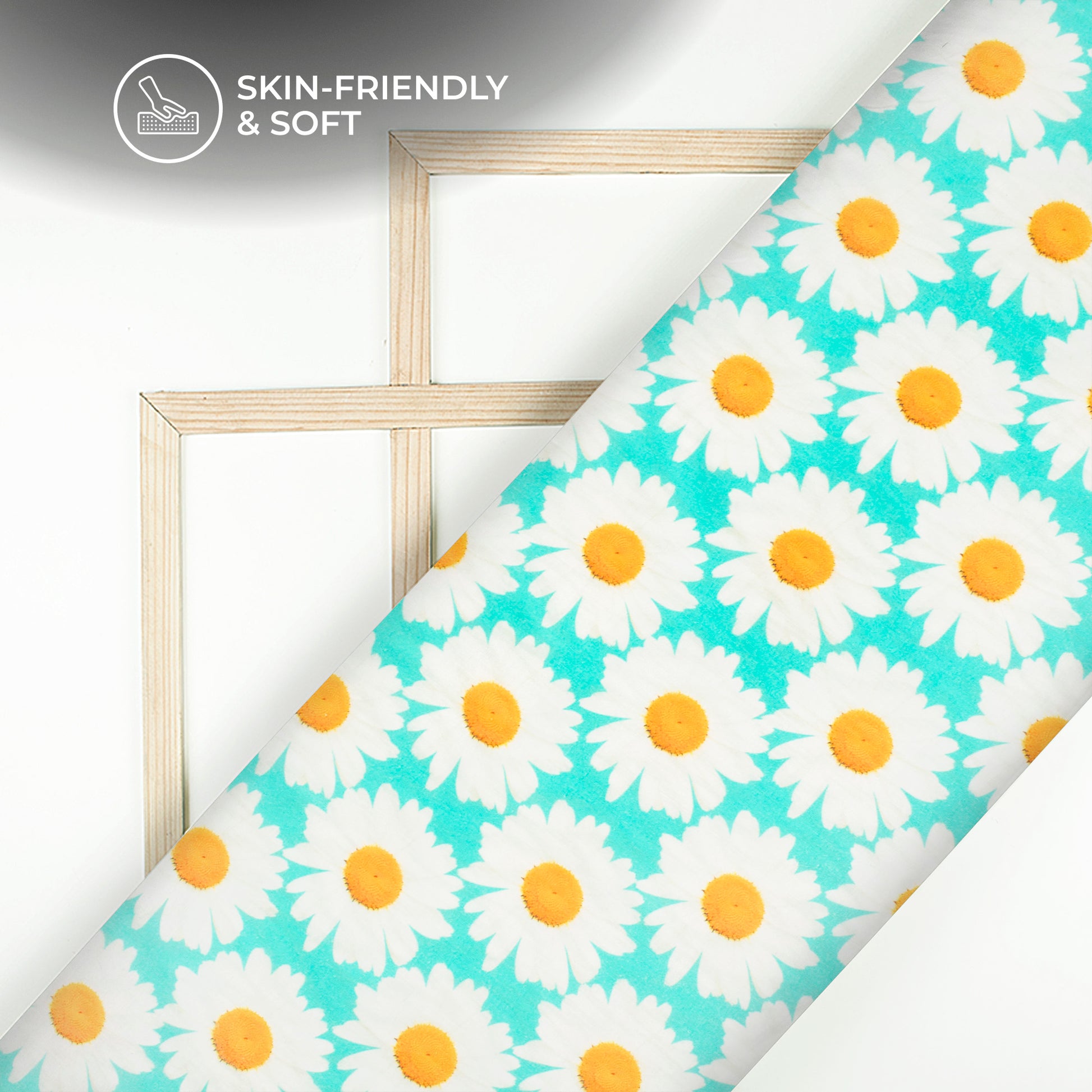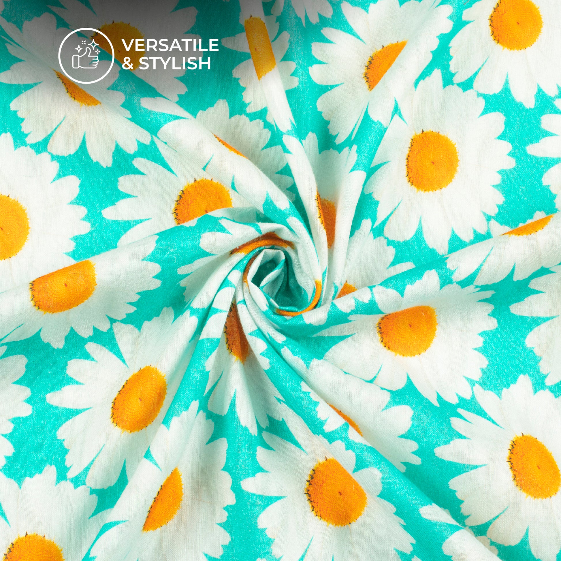 Refreshing Daisy Flower Digital Print Brasso Cotton Cambric Fabric