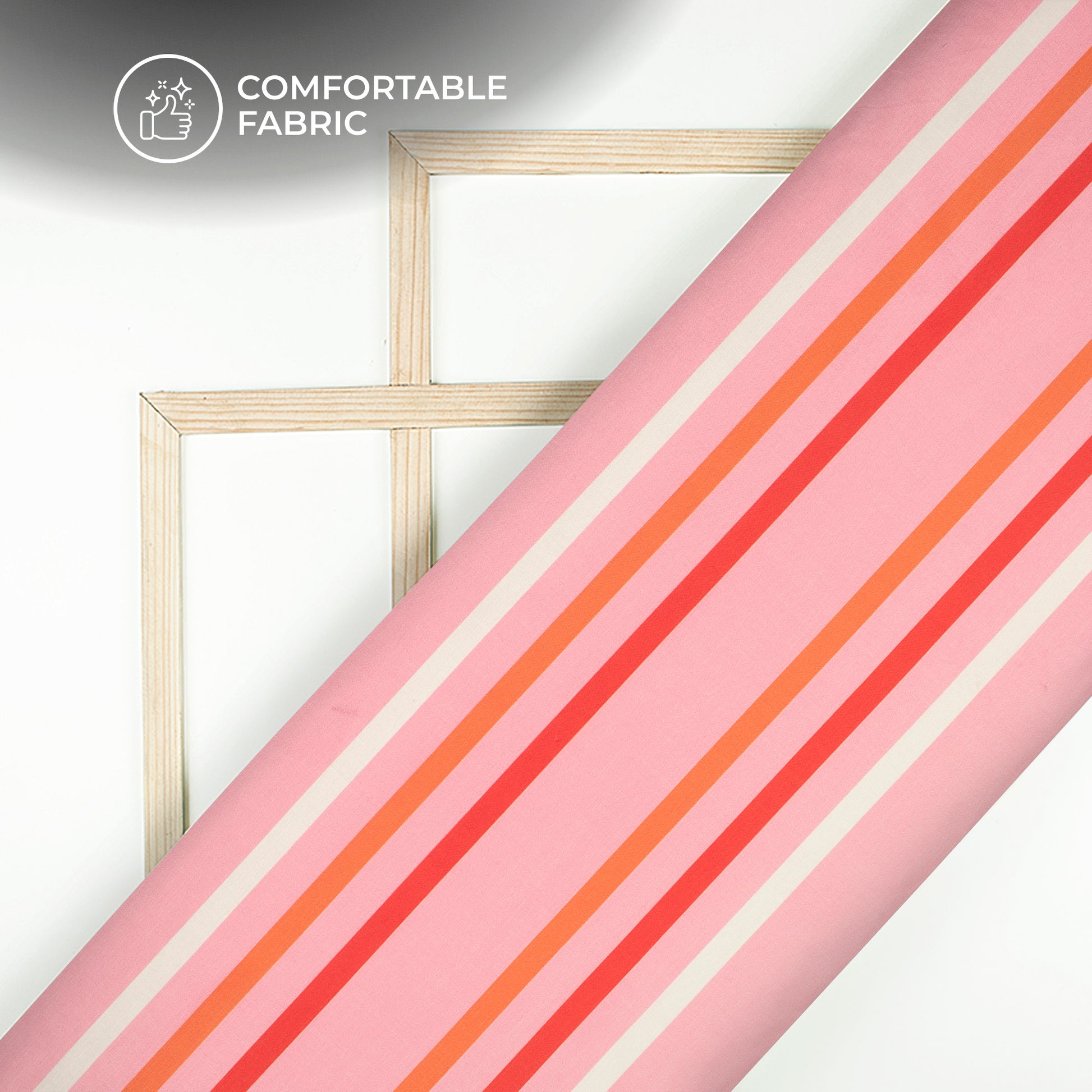 Rose Pink Leheriya Digital Print Poly Linen Slub Fabric