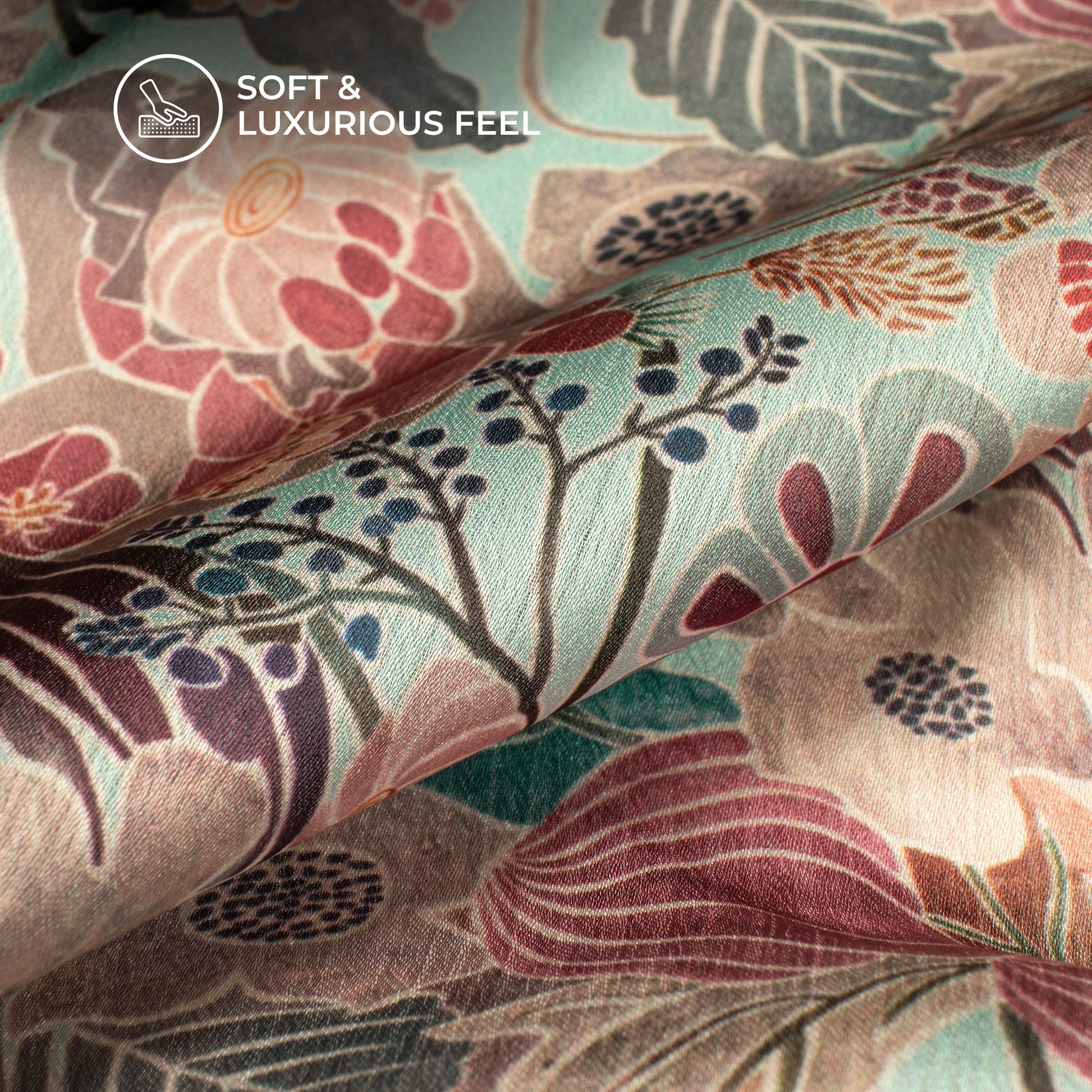 Rouge Pink Floral Digital Print Chiffon Satin Fabric