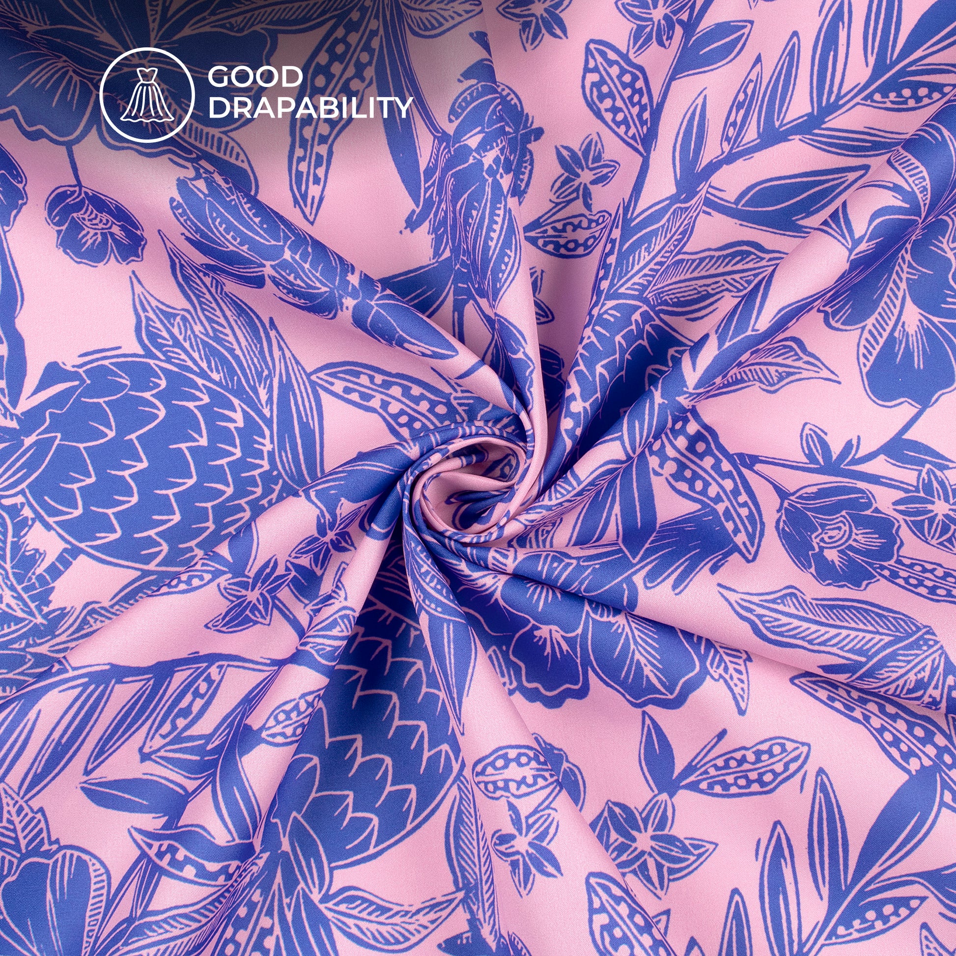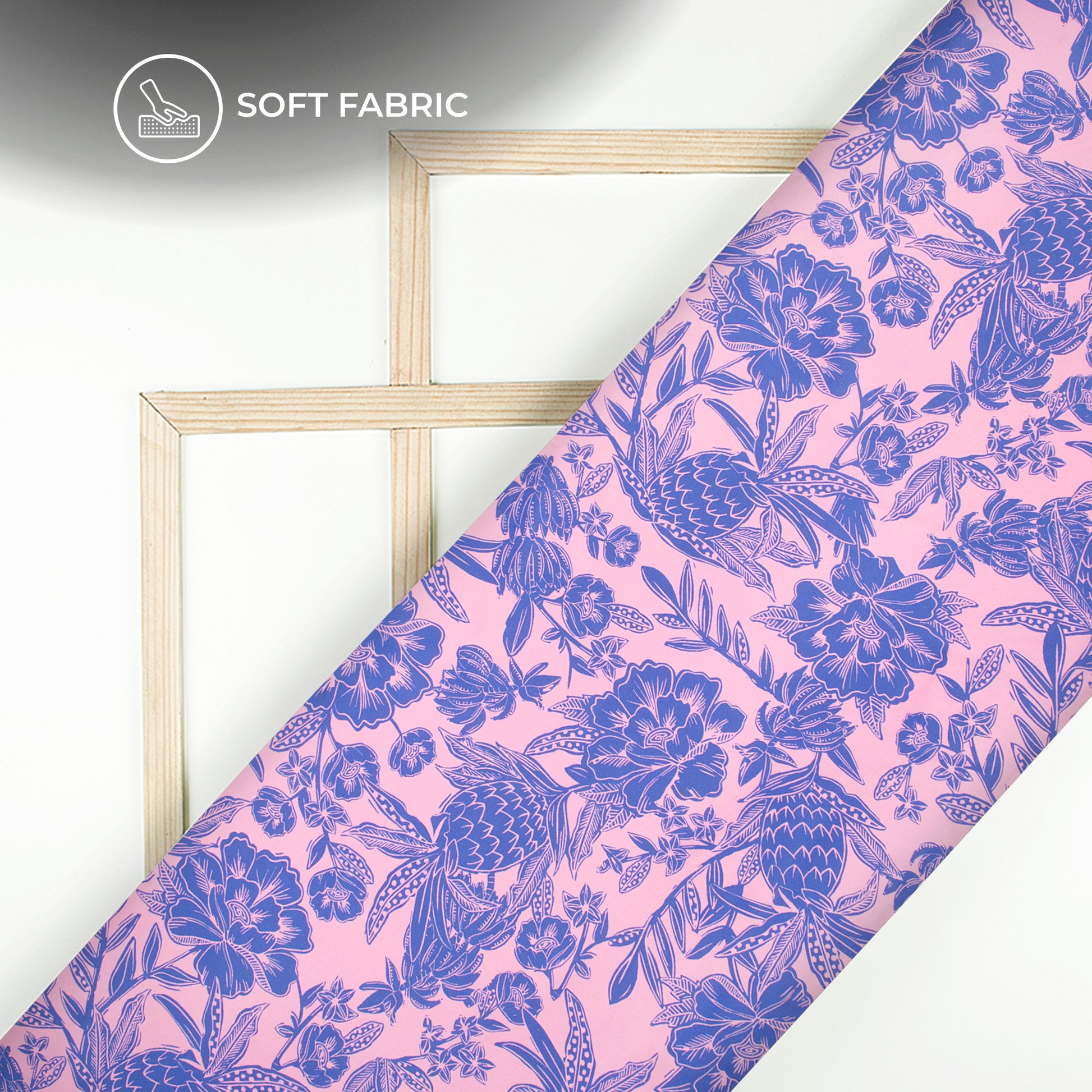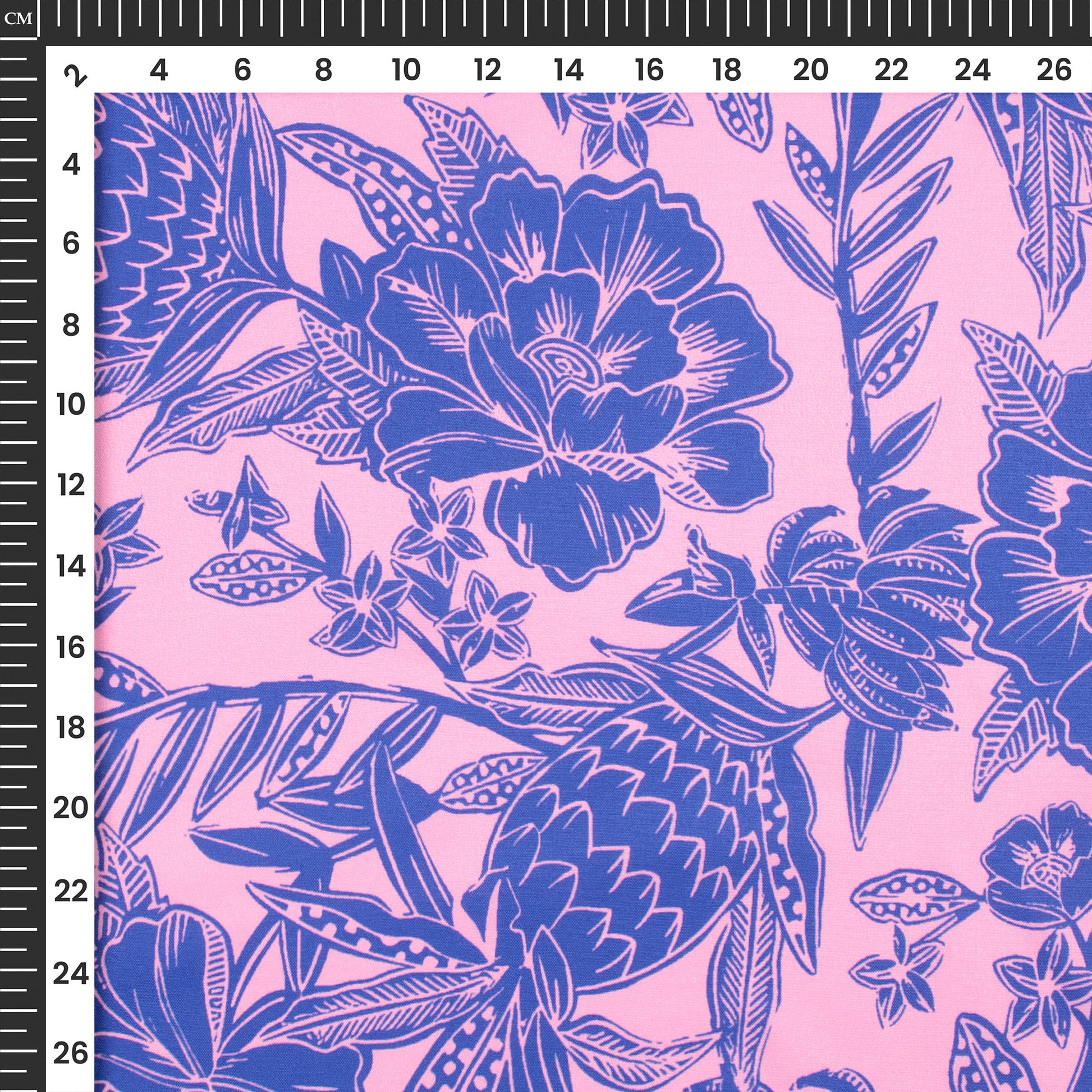 Royal Blue Floral Digital Print Butter Crepe Fabric