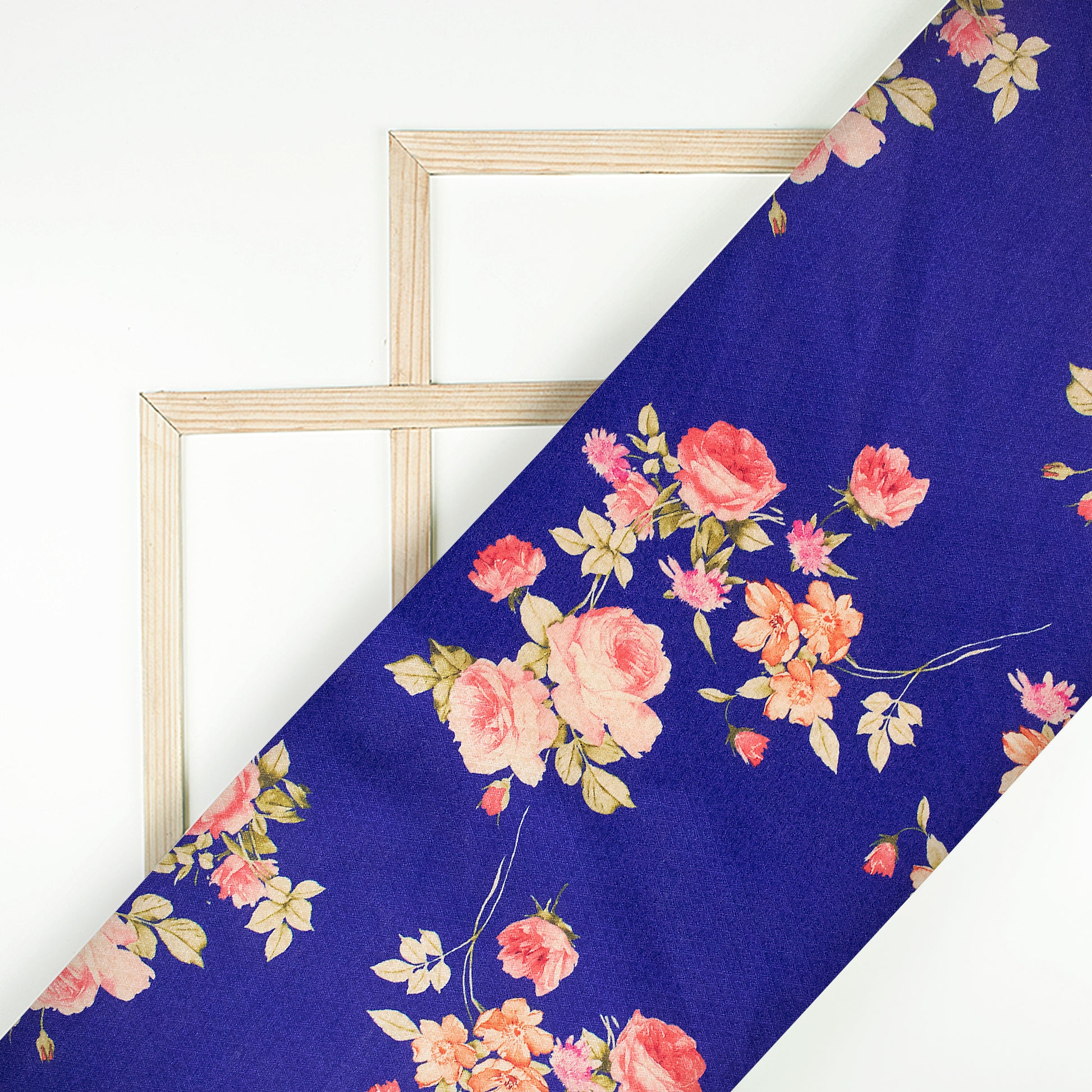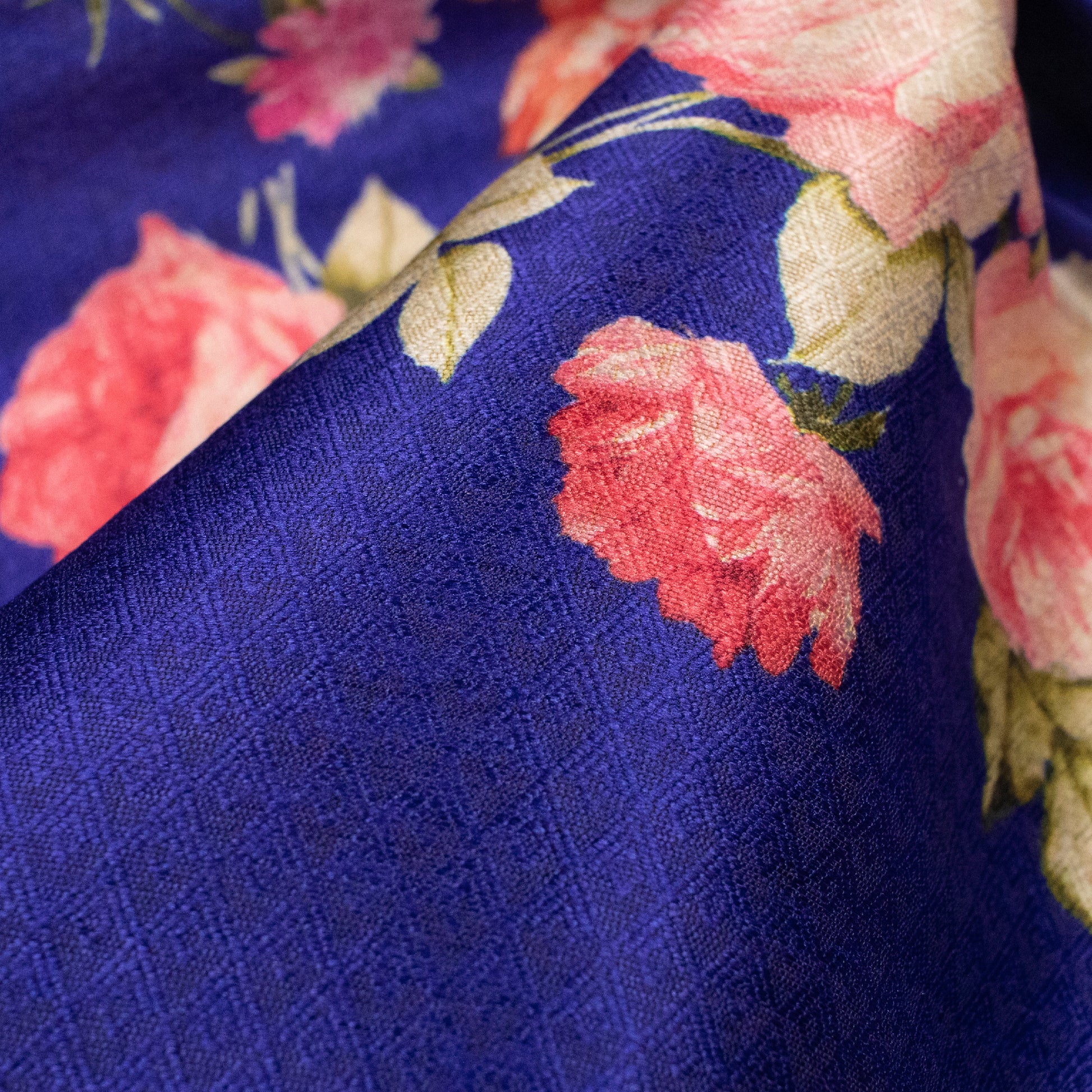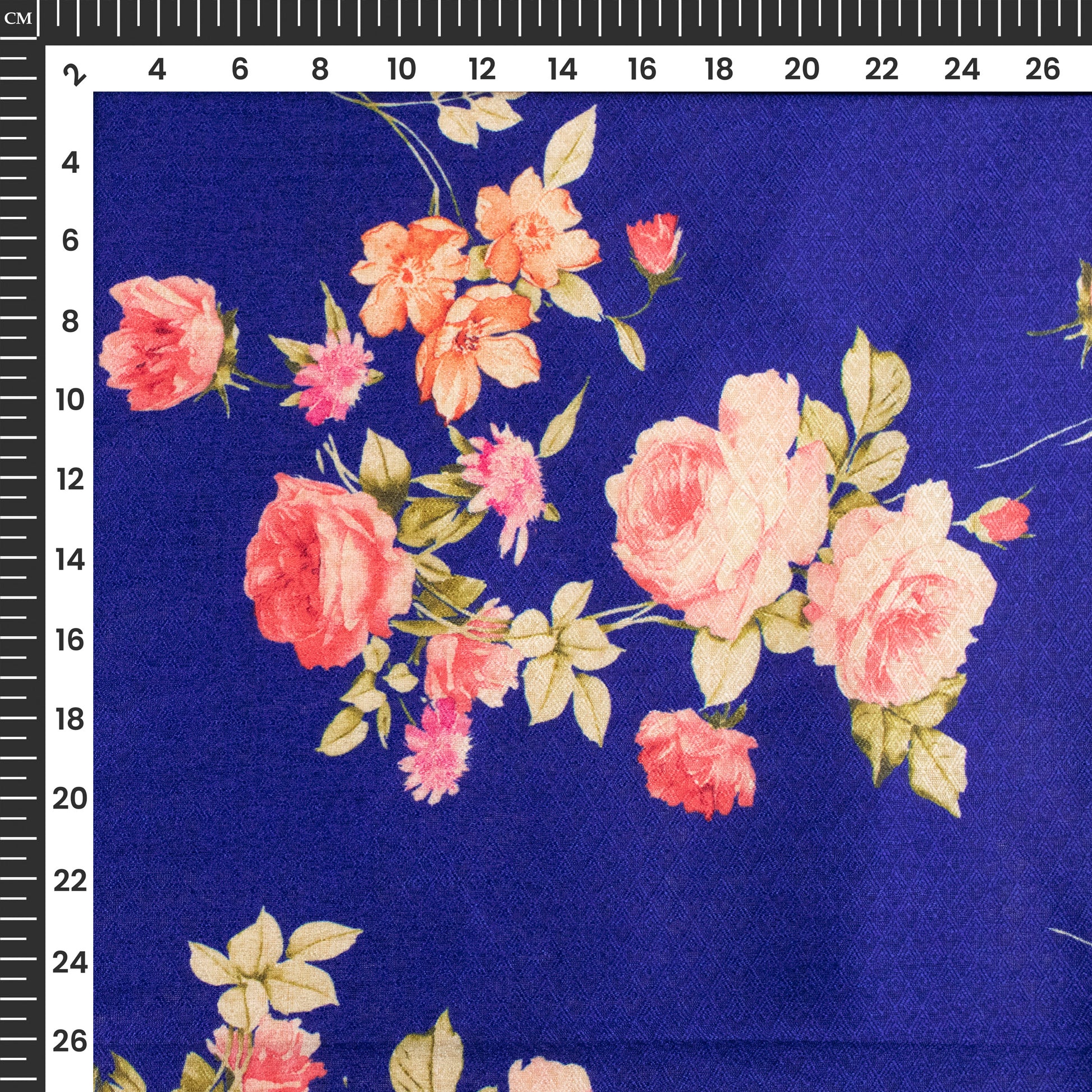 Royal Blue Floral Jacquard Booti Art Silk Fabric (Width 56 Inches)