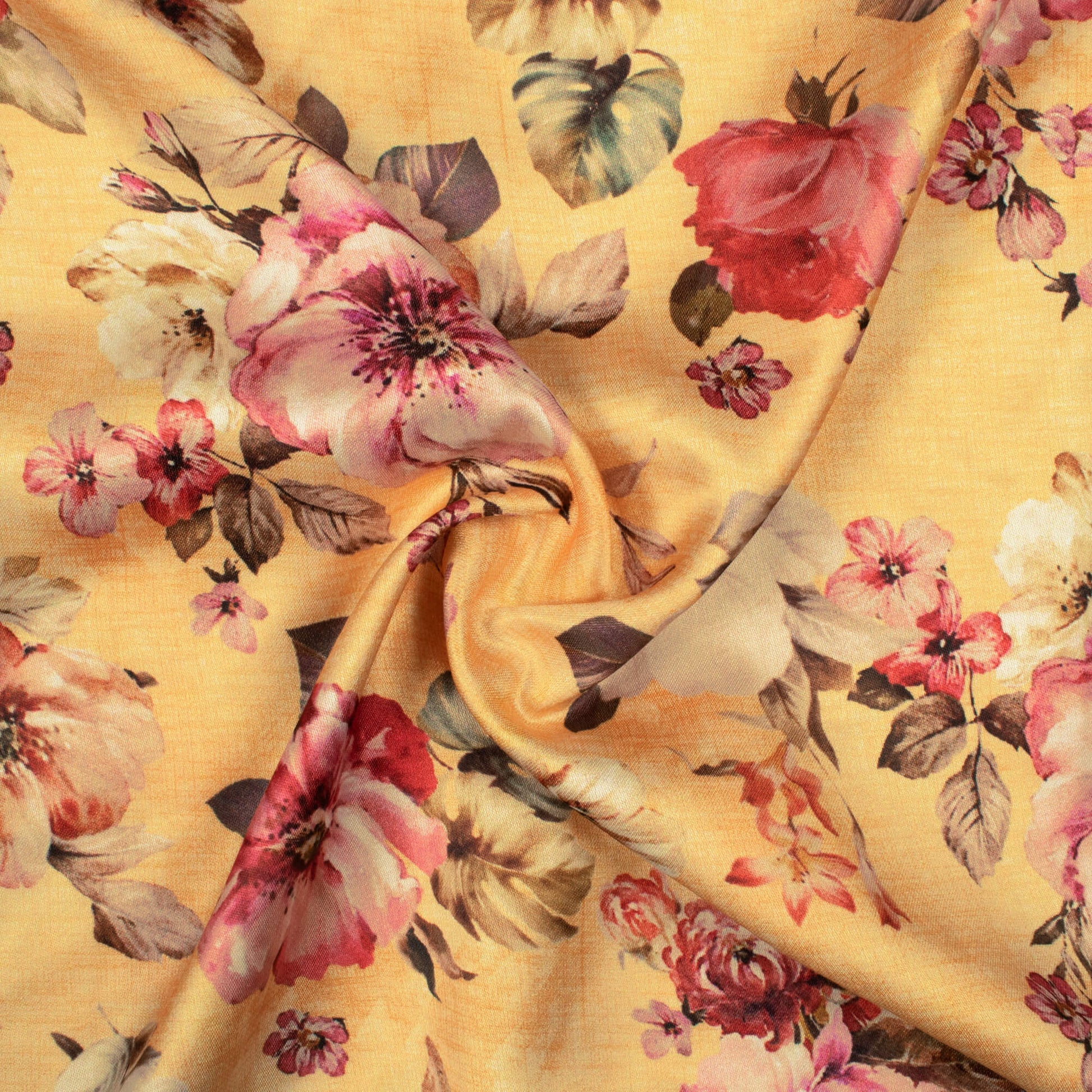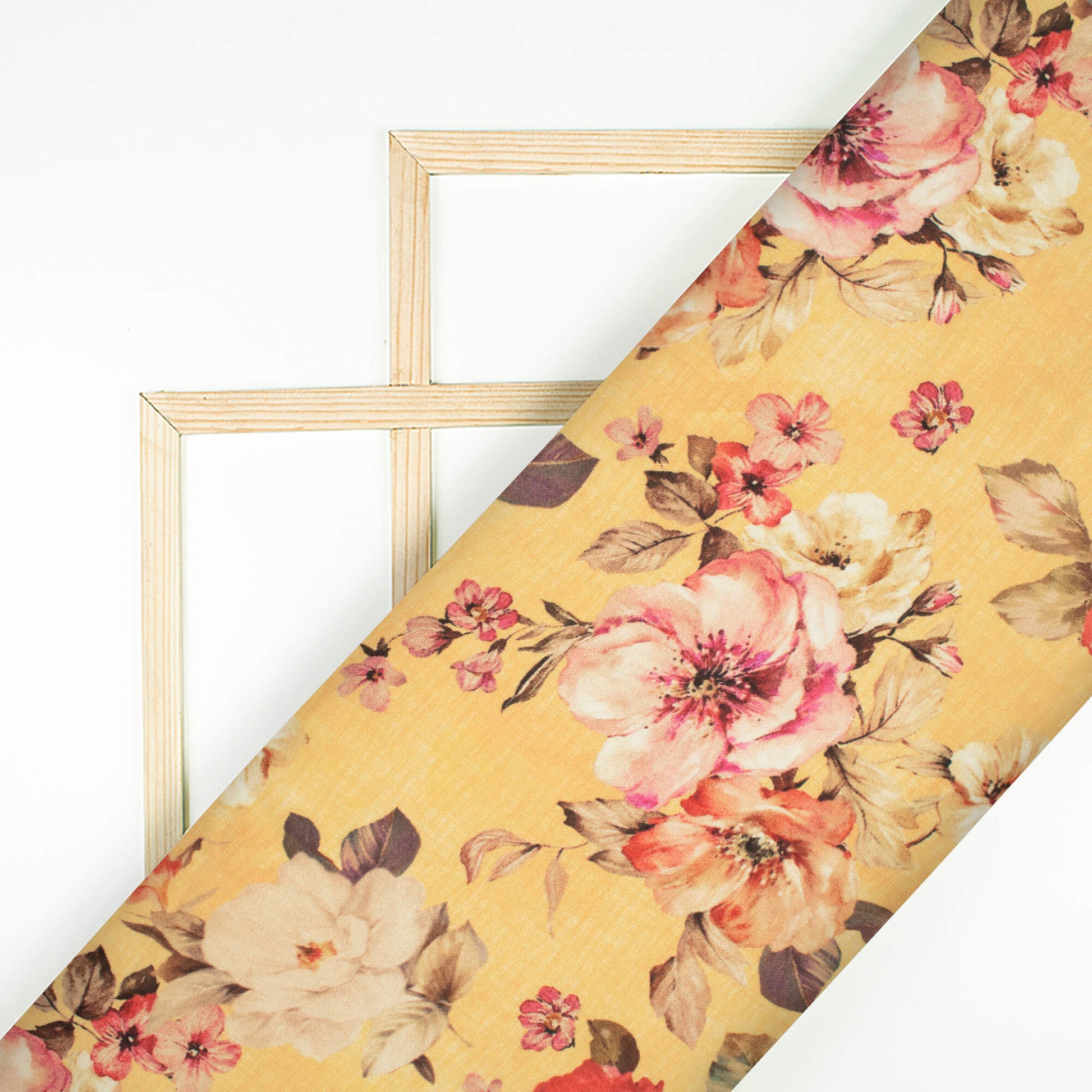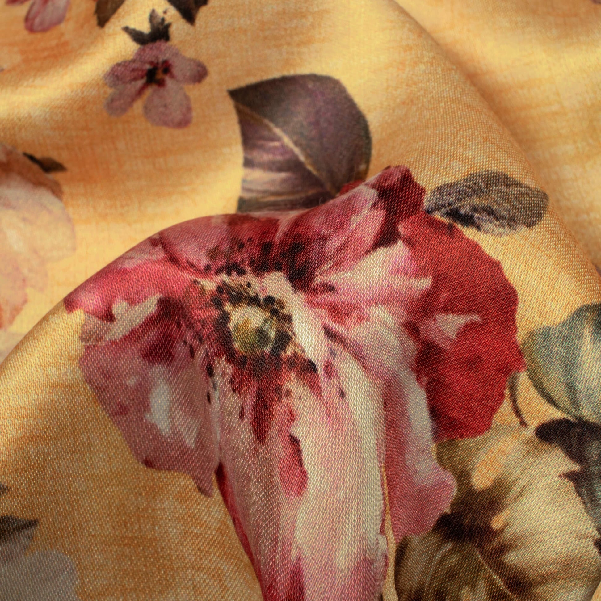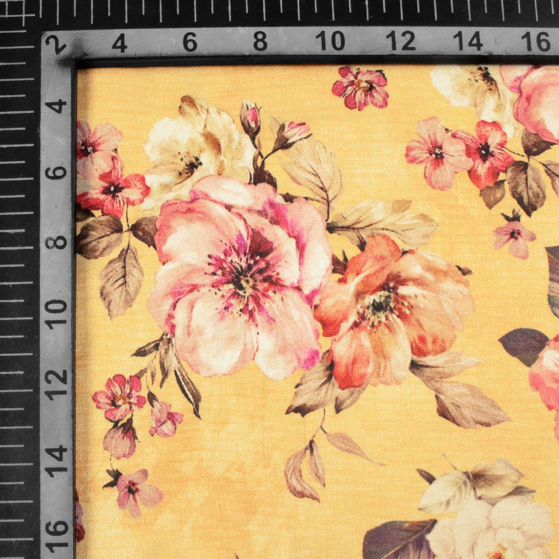Royal Yellow And Pink Floral Pattern Digital Print Premium Lush Satin Fabric