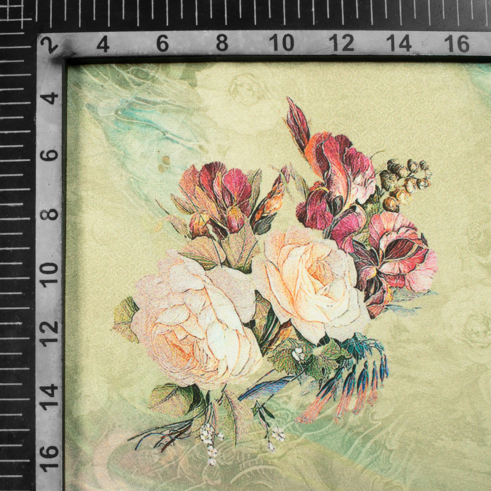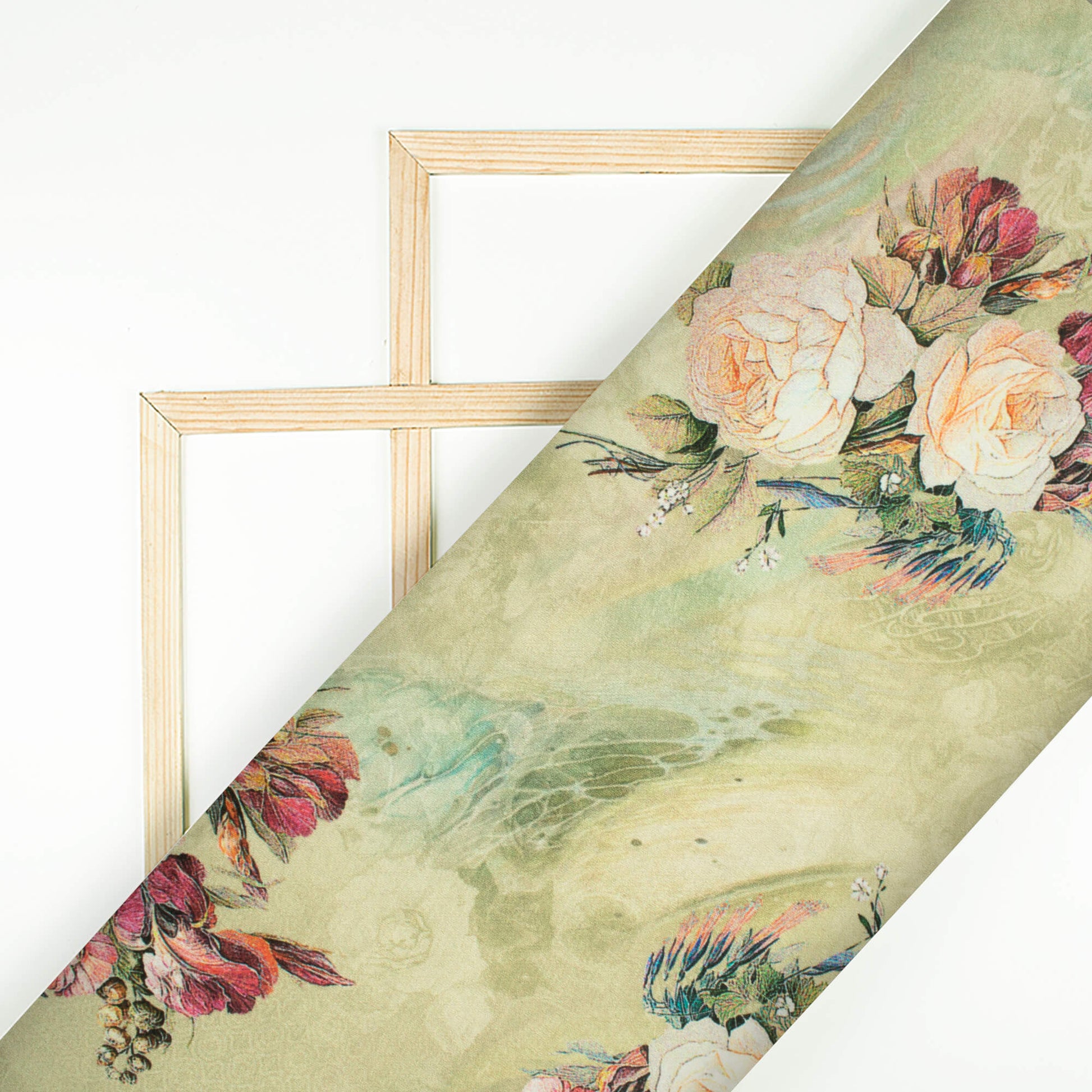 Sage Green And Salmon Orange Floral Pattern Digital Print Premium Lush Satin Fabric