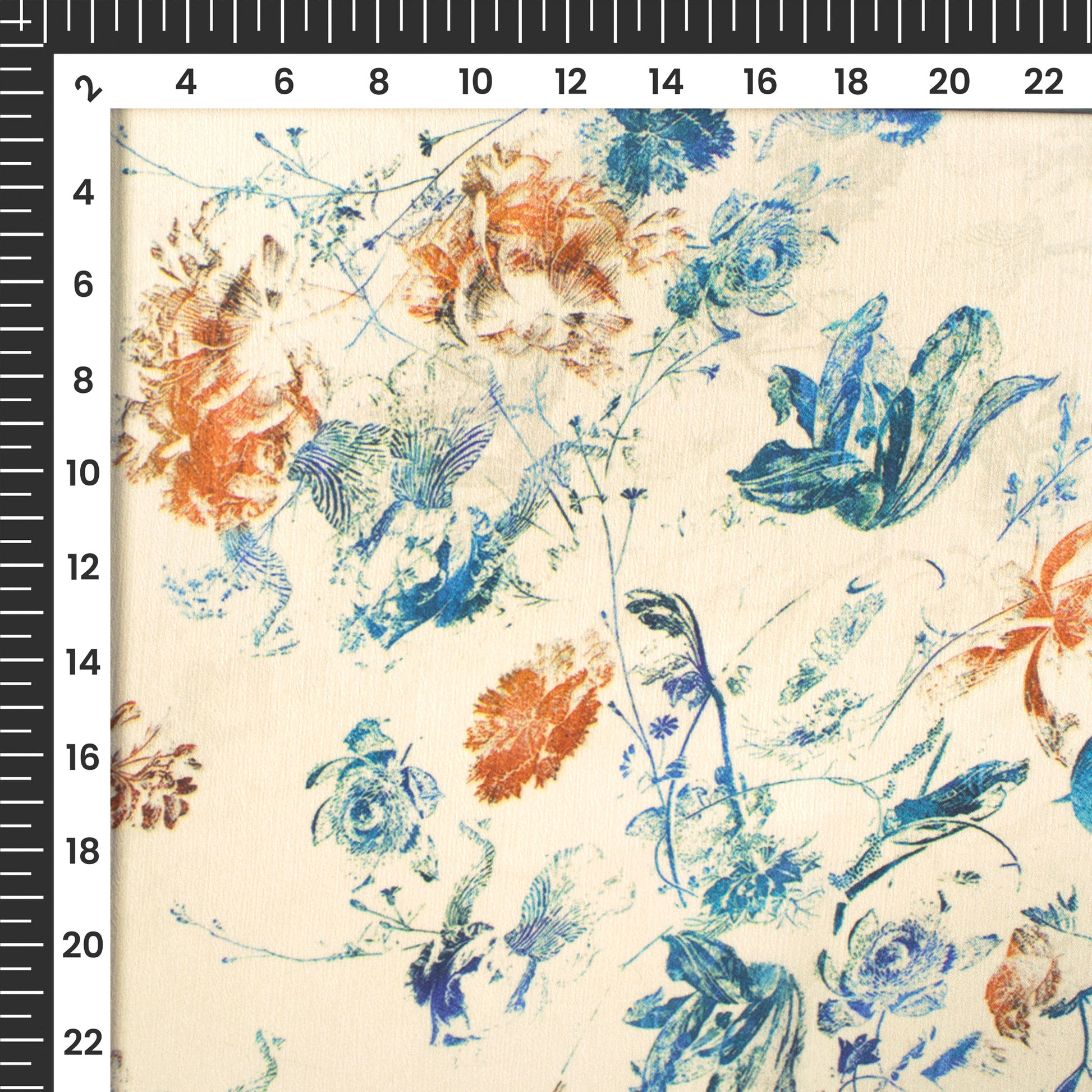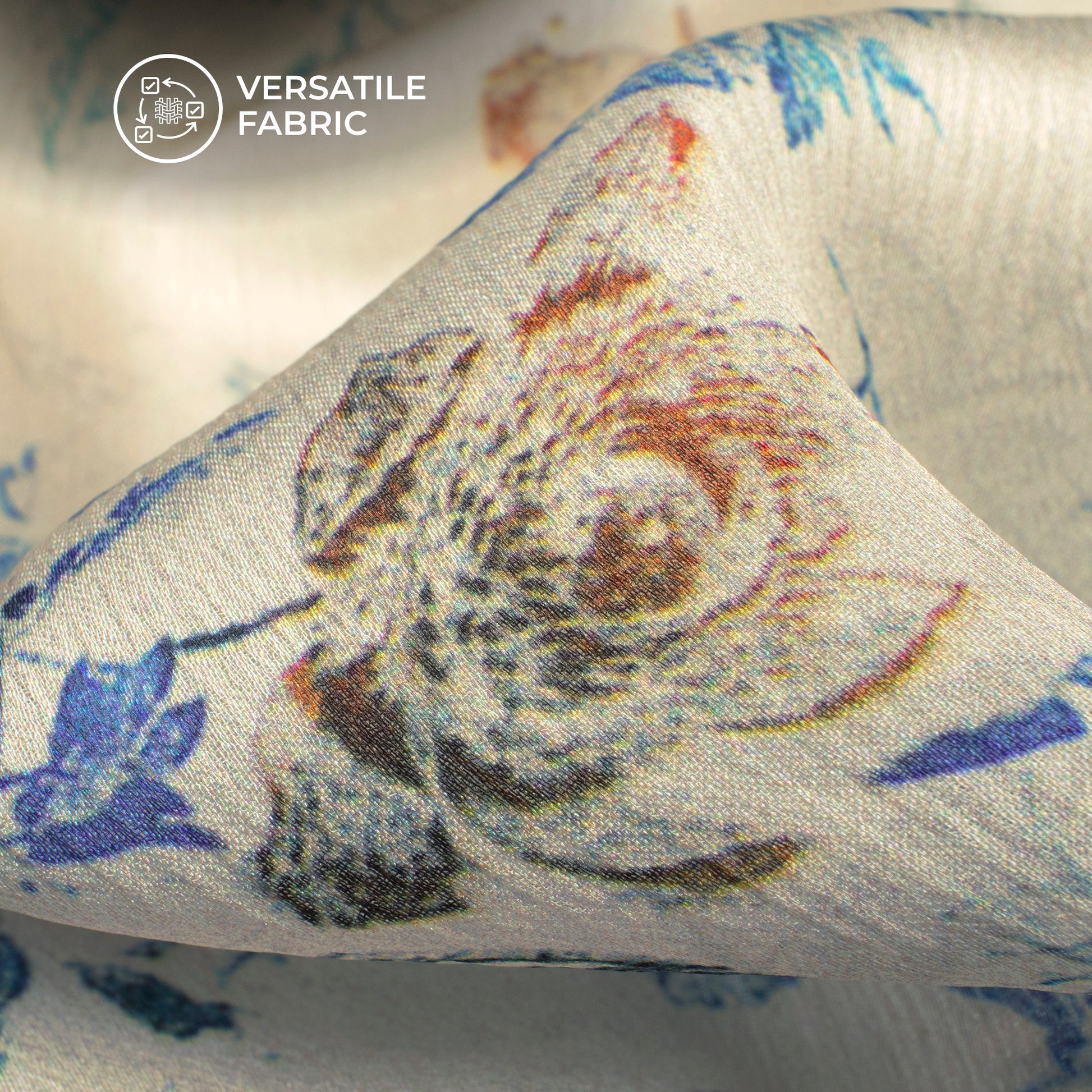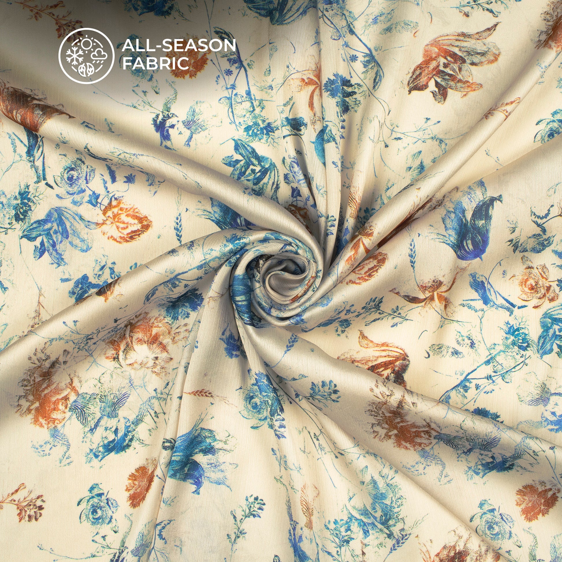 Savoury Beige Floral Digital Print Chiffon Satin Fabric