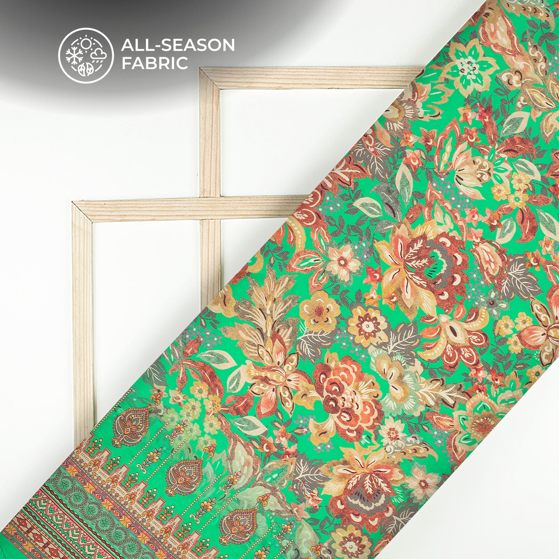 Seafoam Green Floral Digital Print Cotton Cambric Fabric