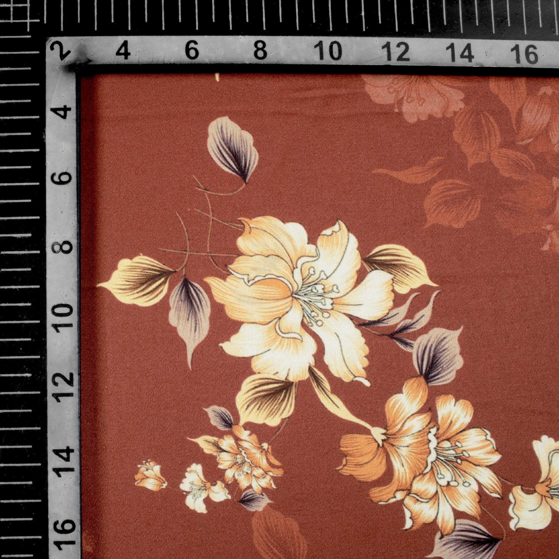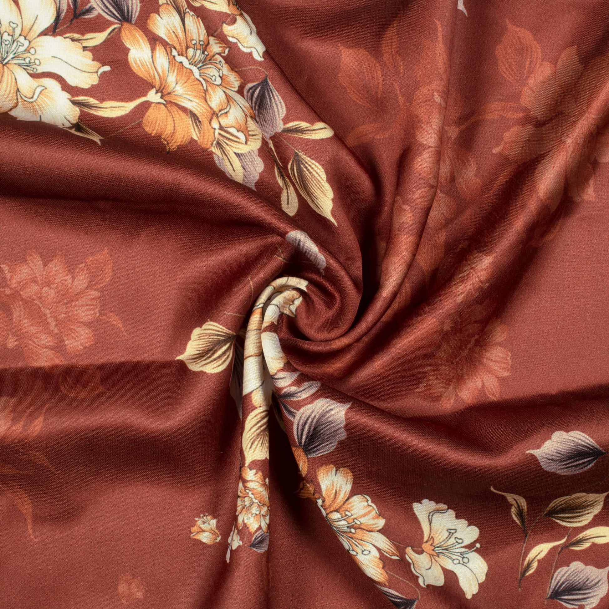 Seal Brown And White Floral Pattern Digital Print Premium Lush Satin Fabric
