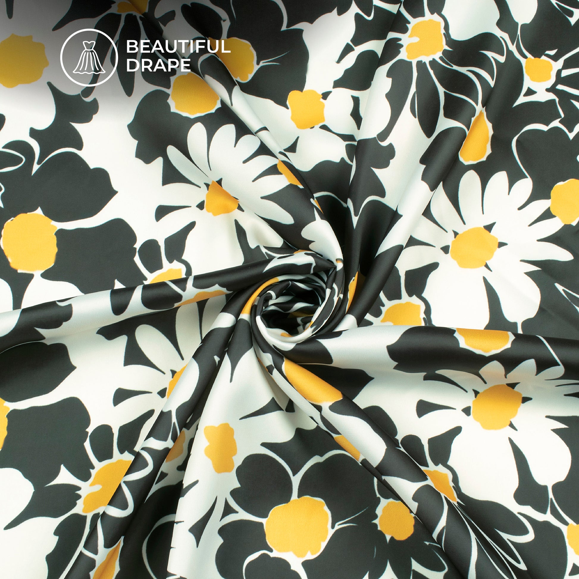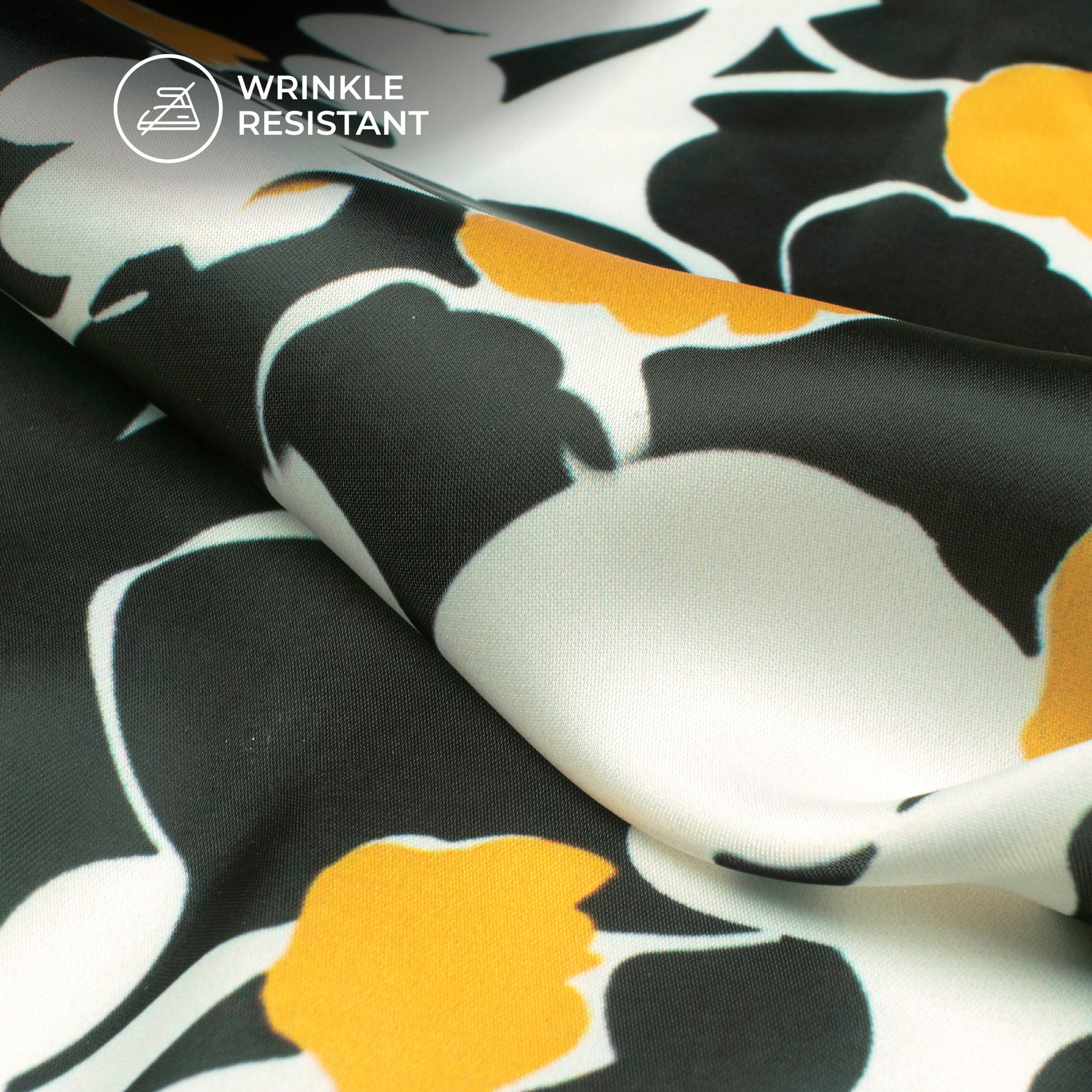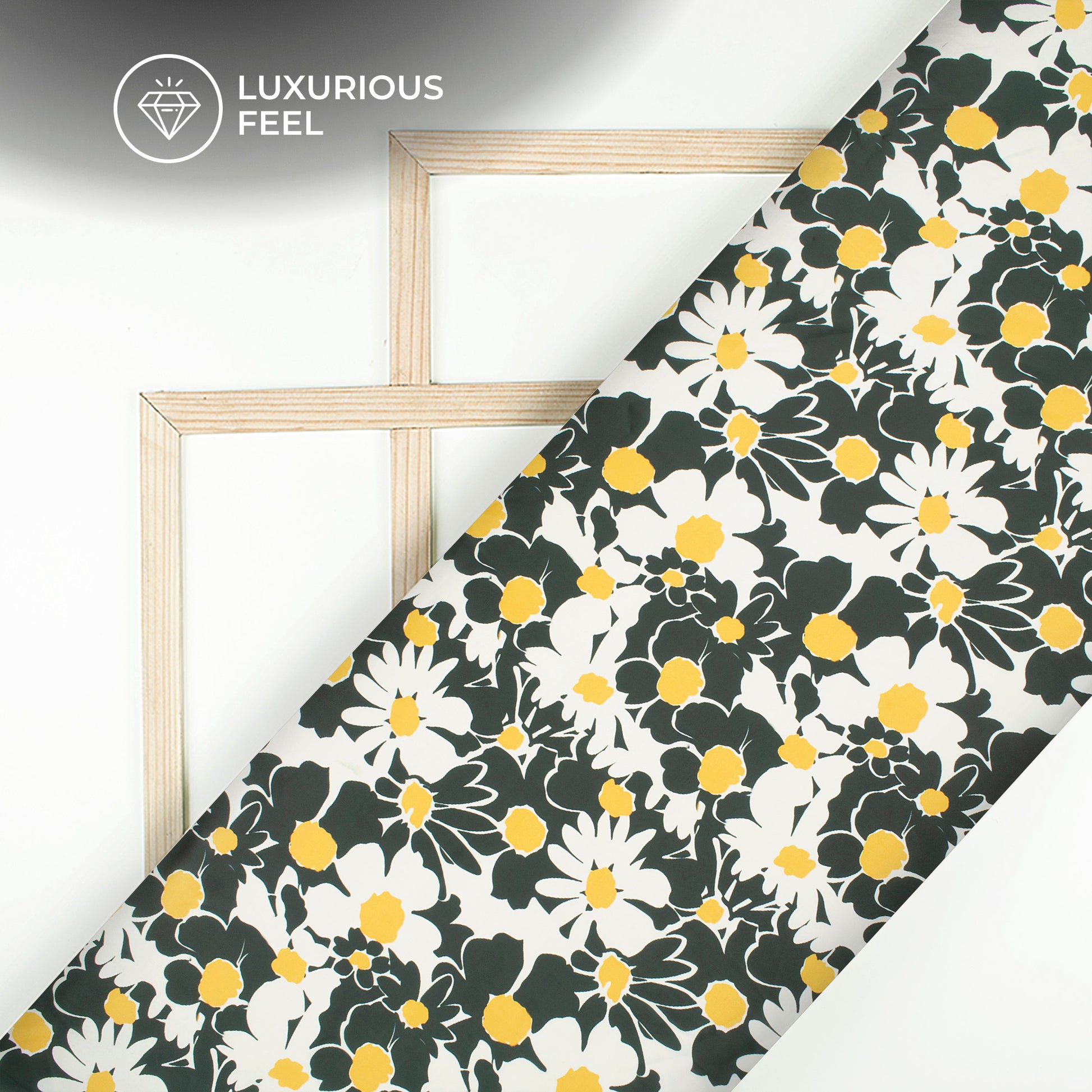 Seamless Black Floral Digital Print Luxurious Imported Satin Fabric