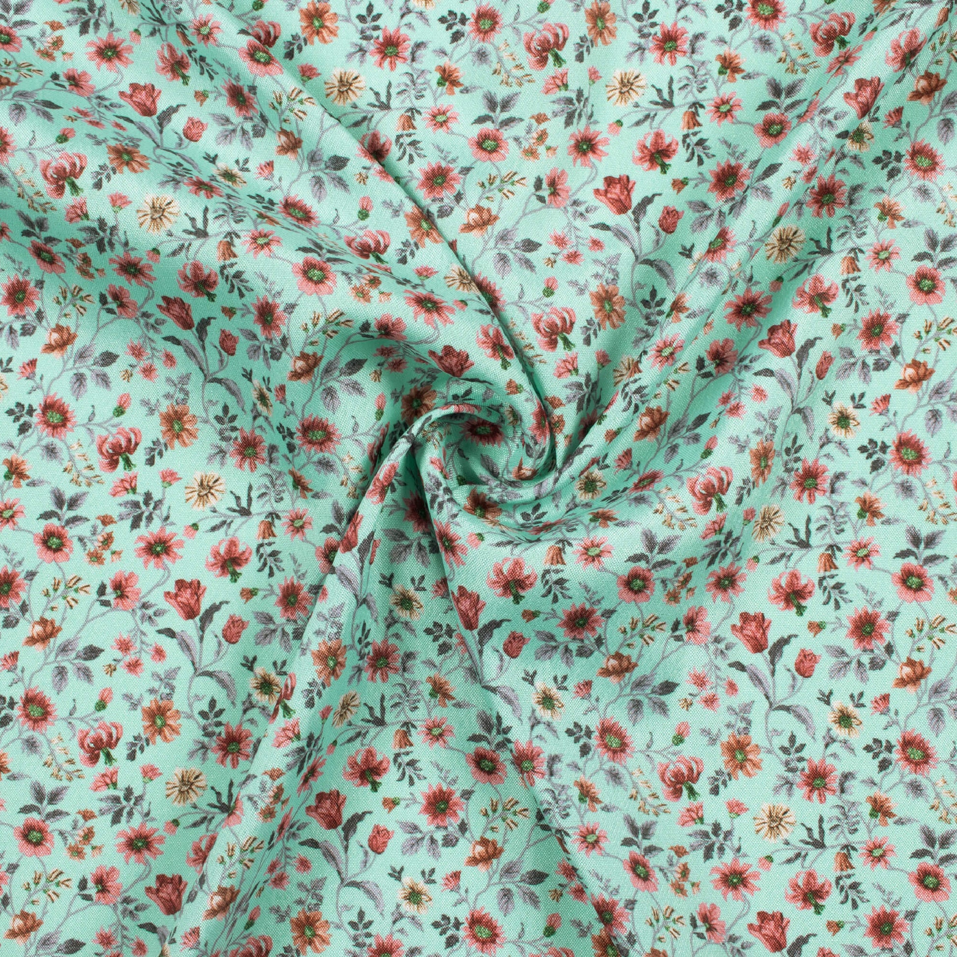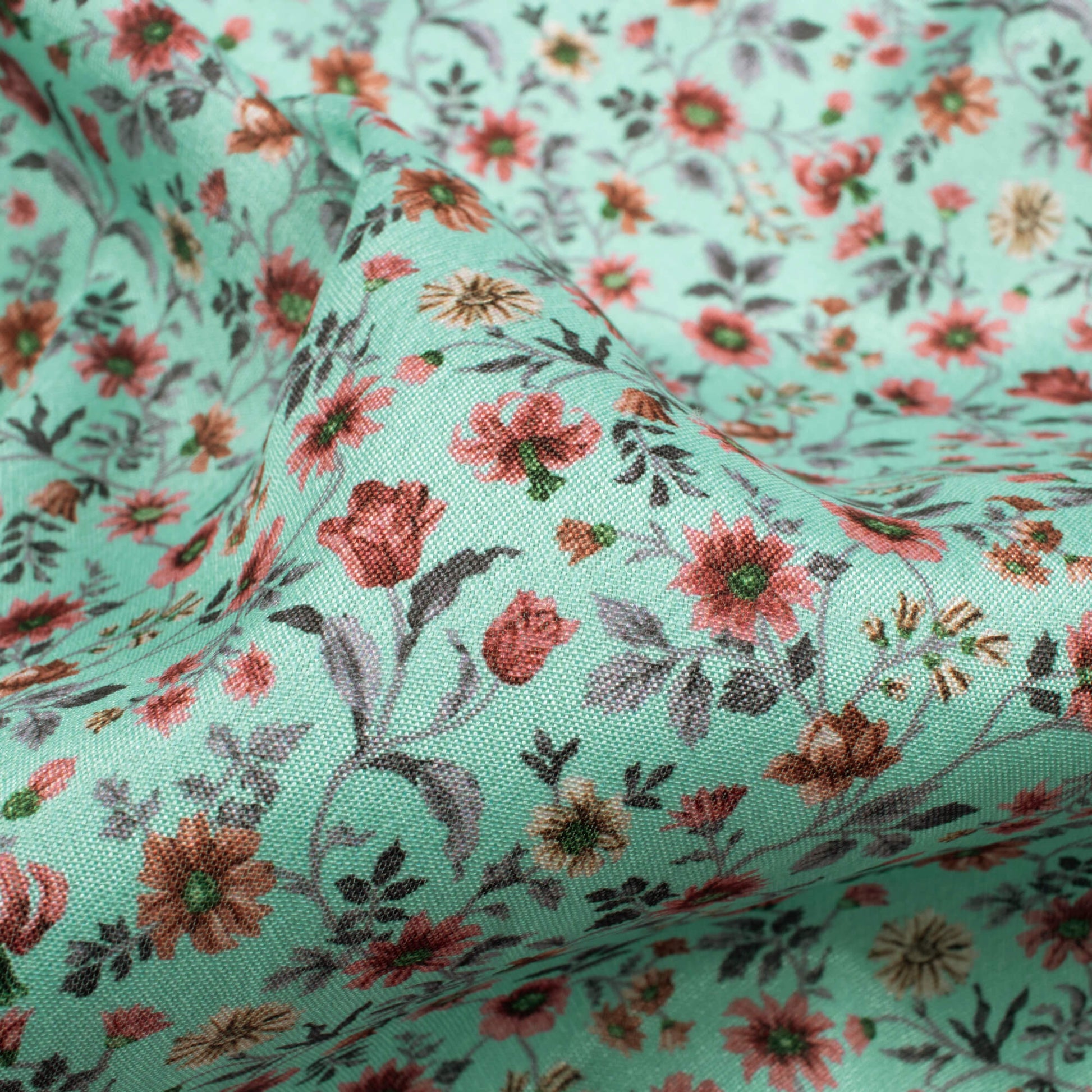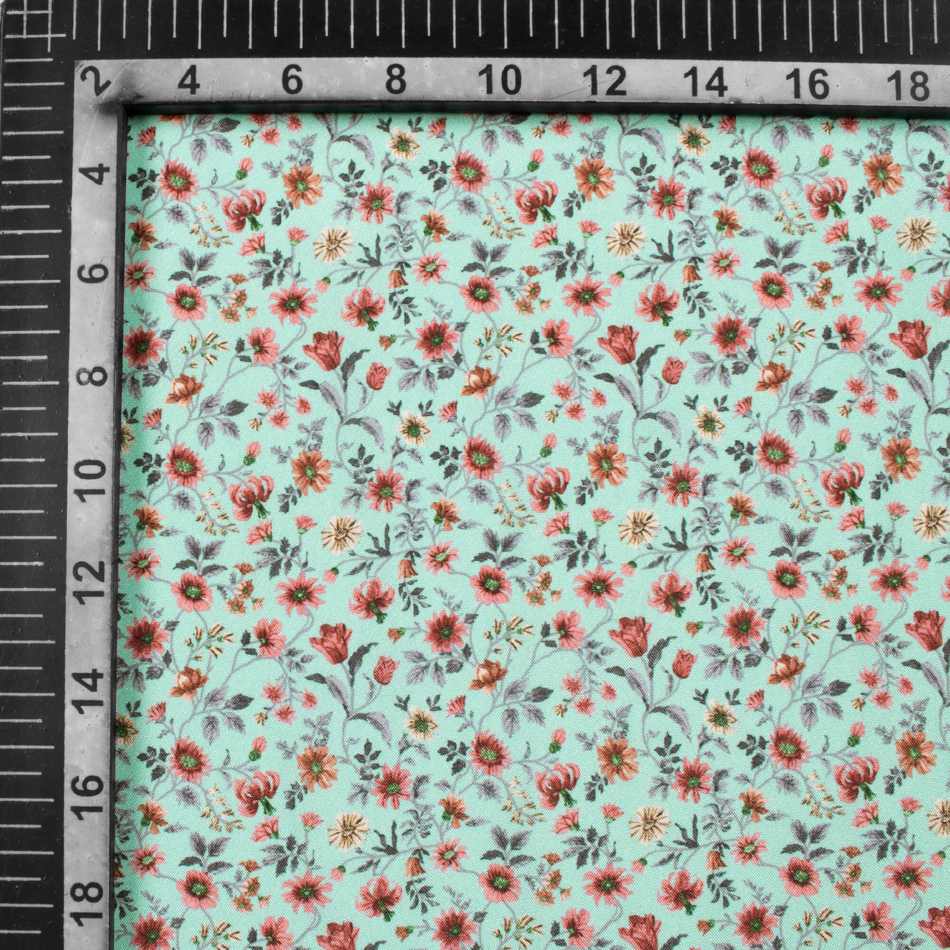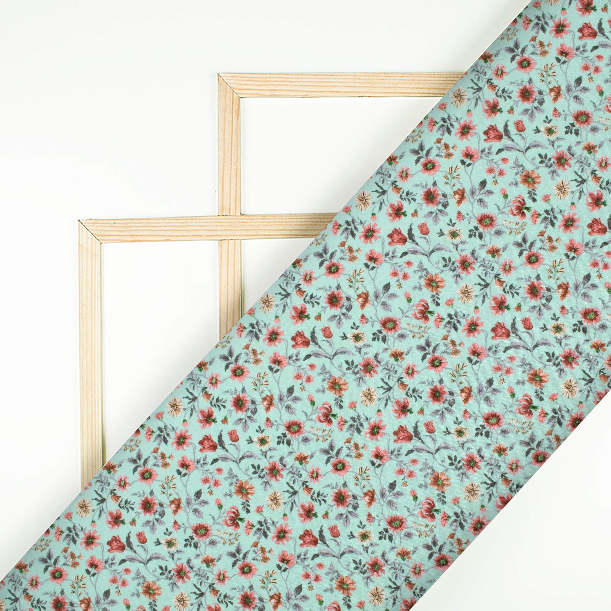 Sky Blue And Pink Floral Pattern Digital Print Crepe Silk Fabric