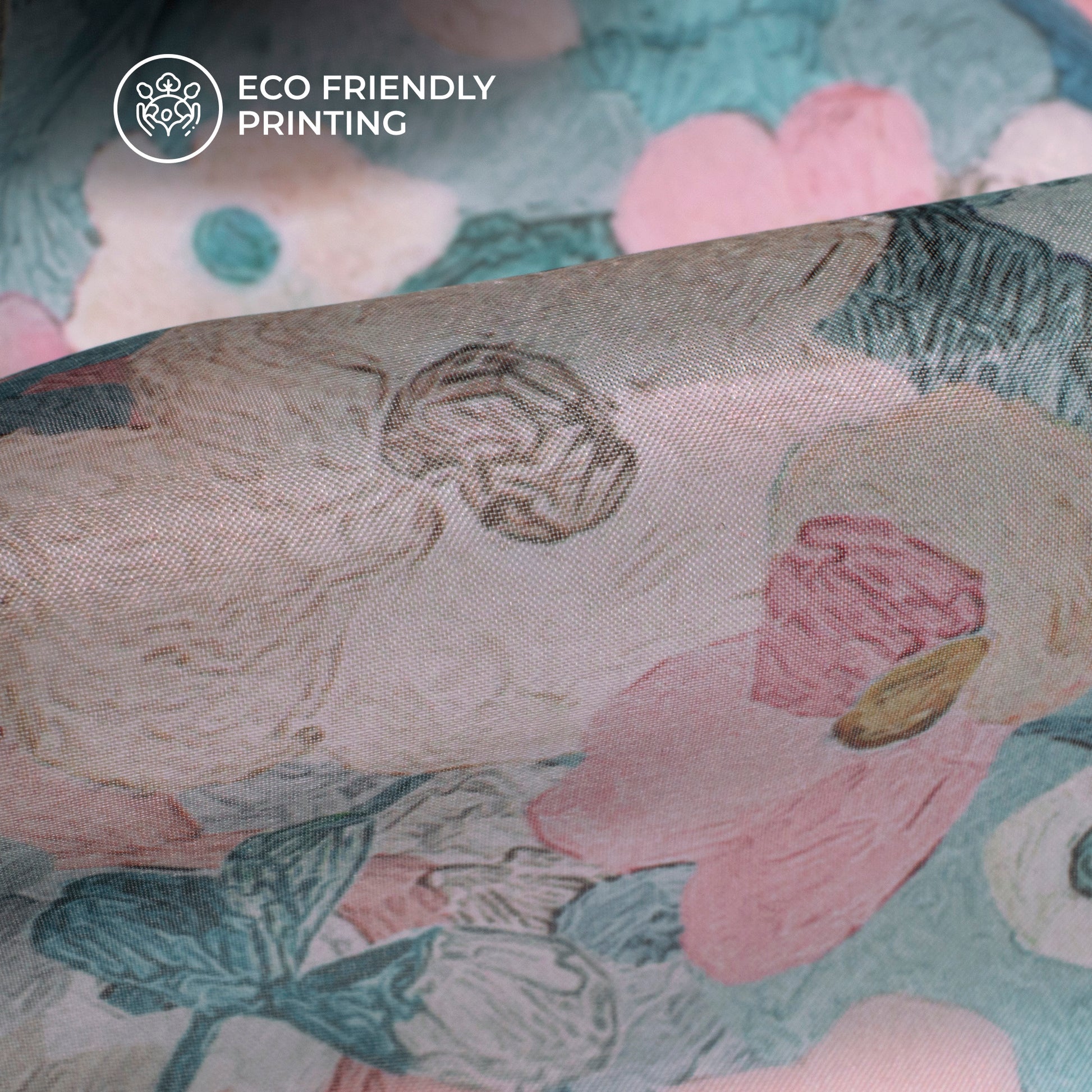 Sky Blue Floral Digital Print Organza Satin Fabric