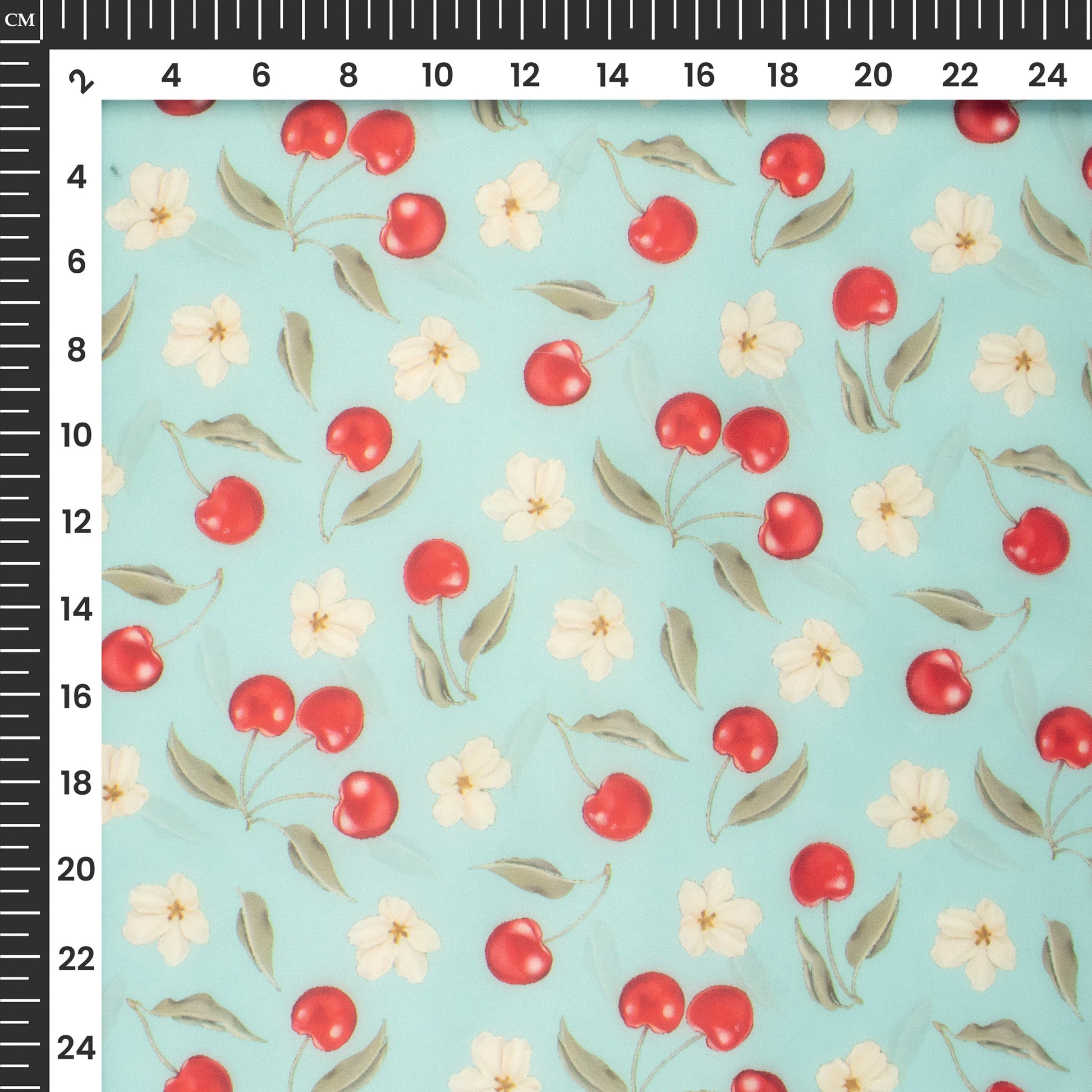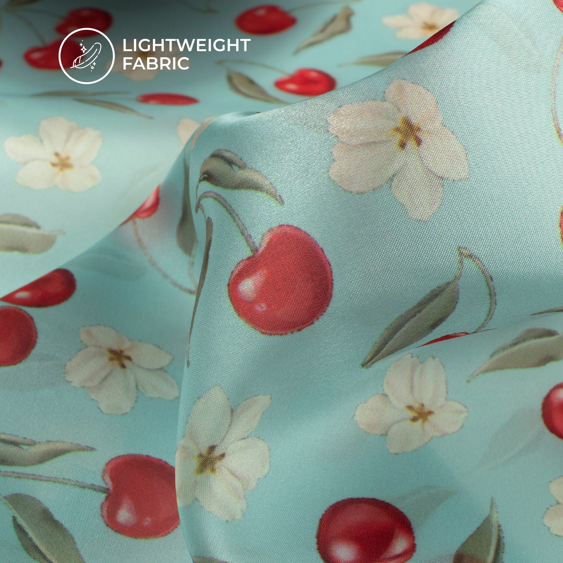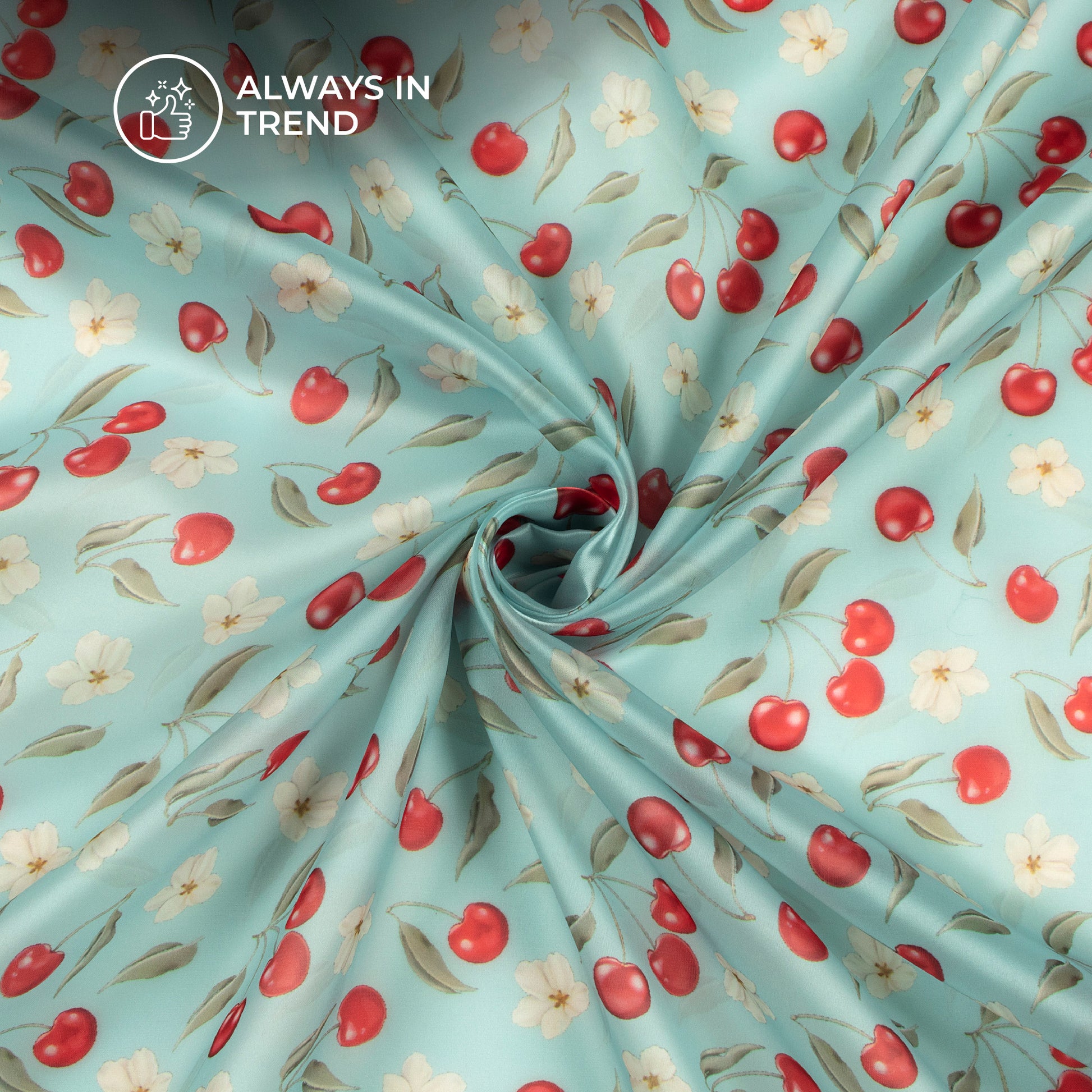 Sky Blue Floral Digital Print Organza Satin Fabric