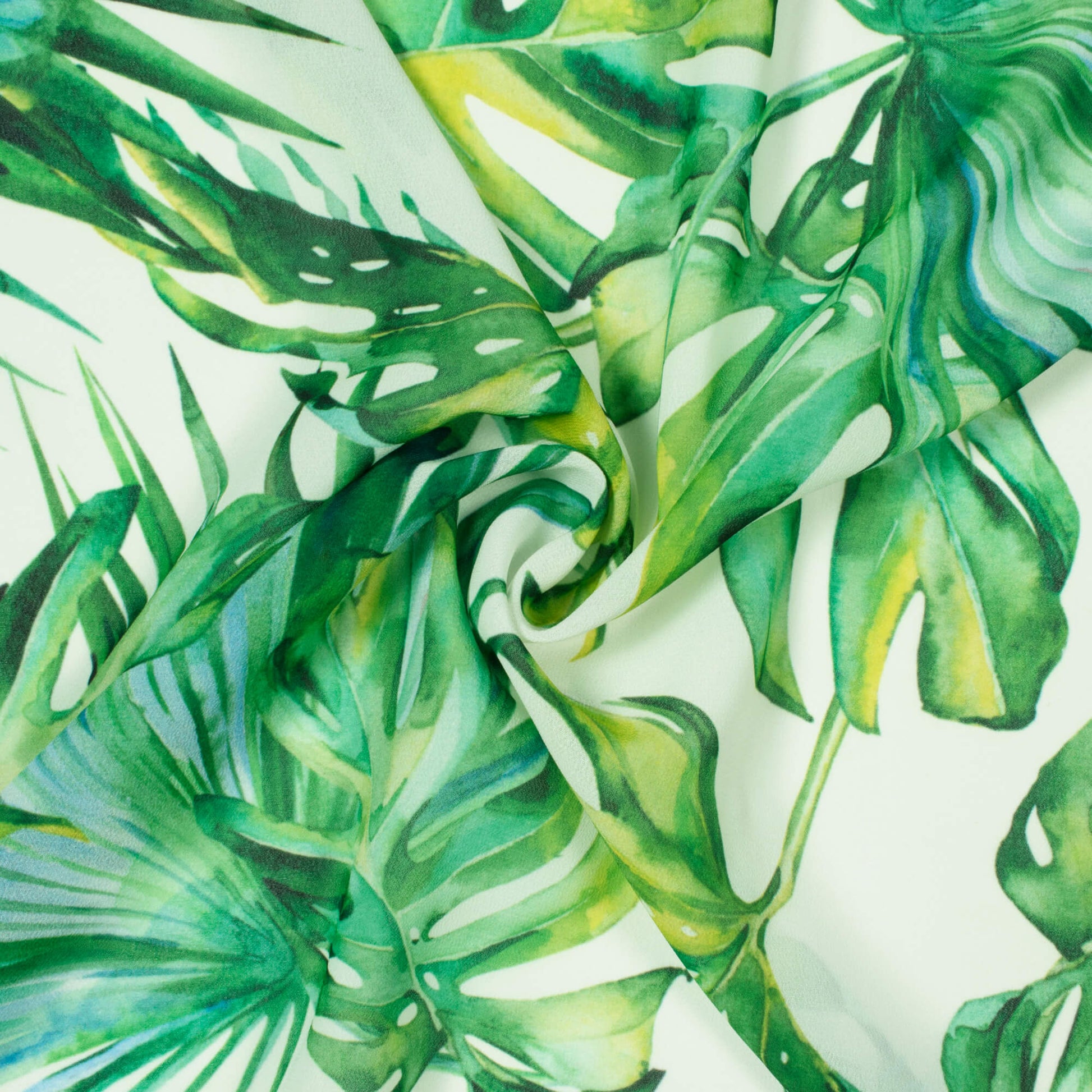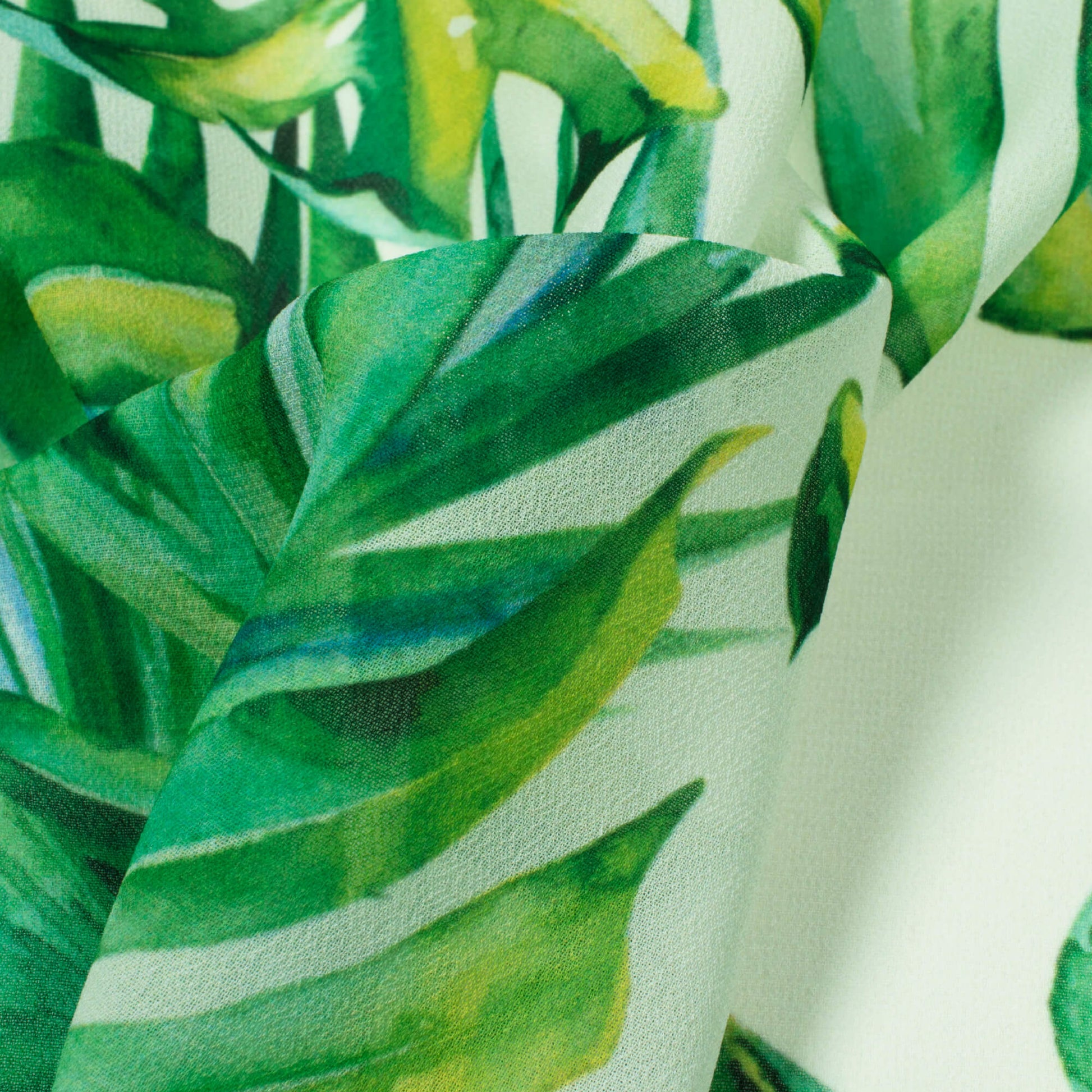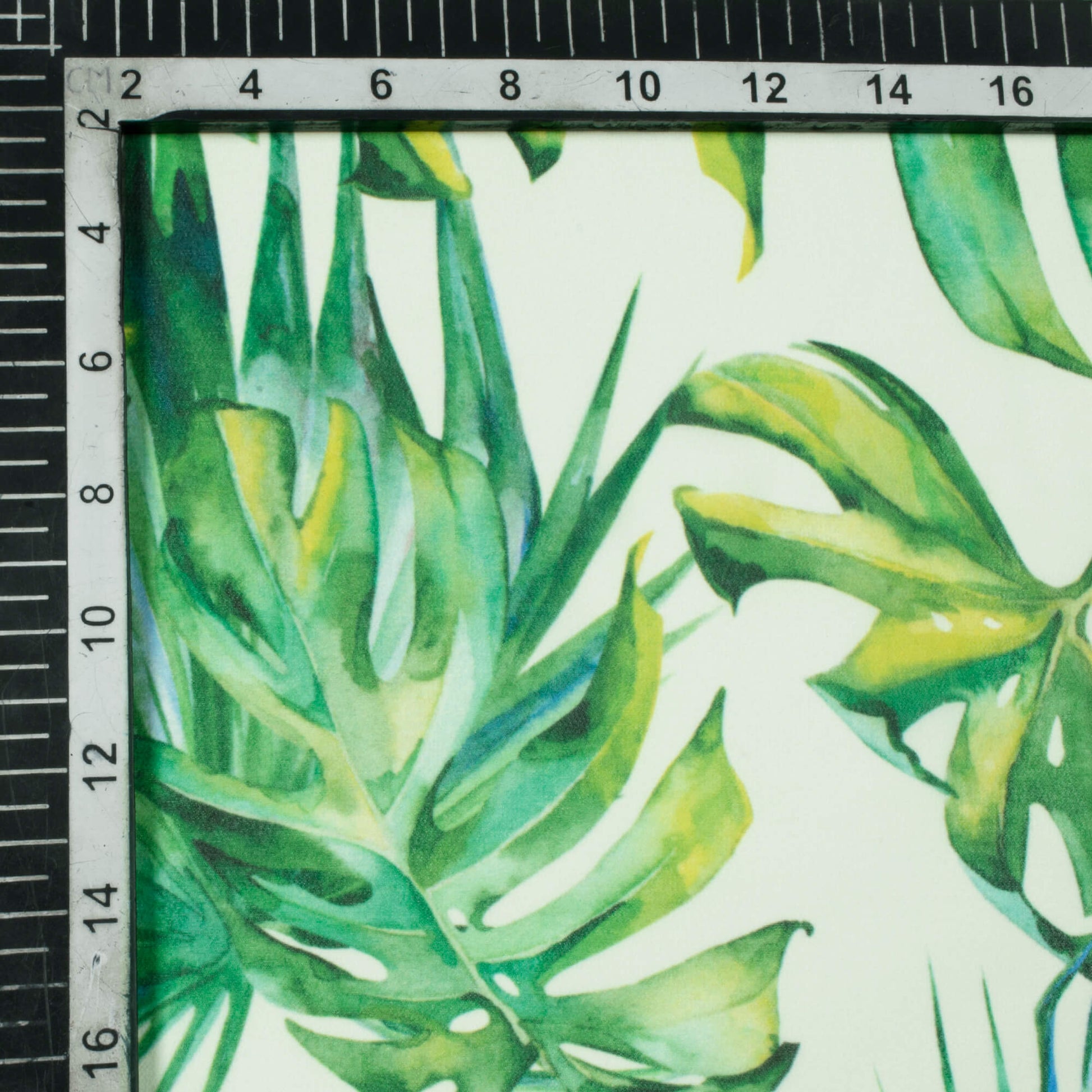 Snow White And Green Tropical Pattern Digital Print Georgette Fabric