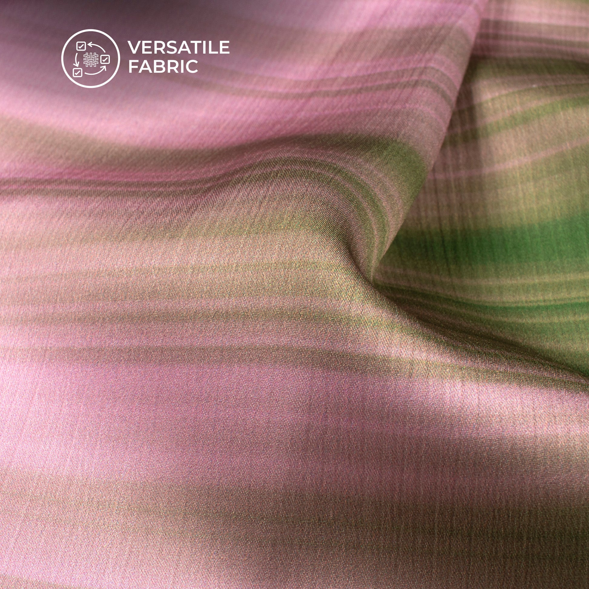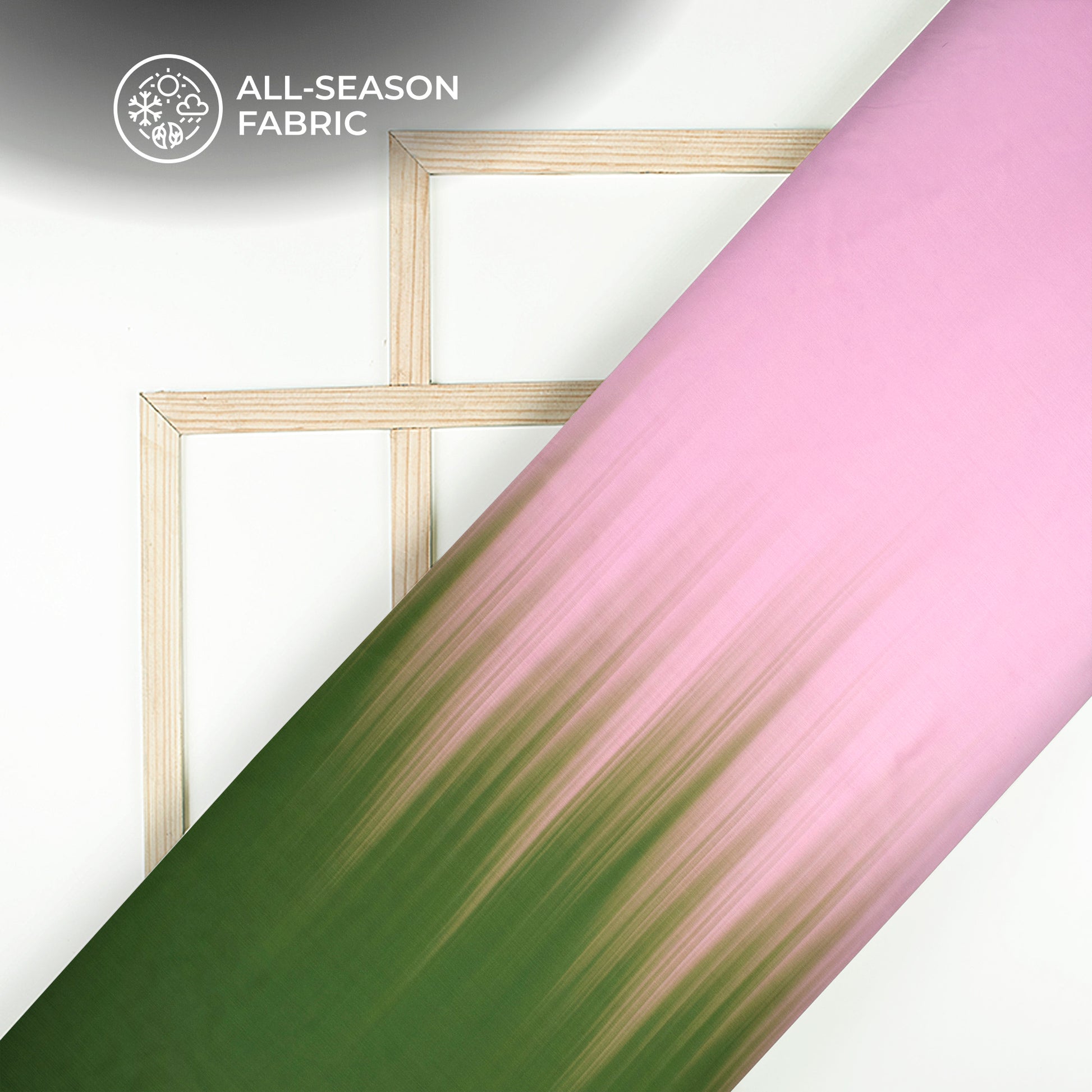 Taffy Pink,Dark Green Ombre Pattern Digital Print Chiffon Satin Fabric