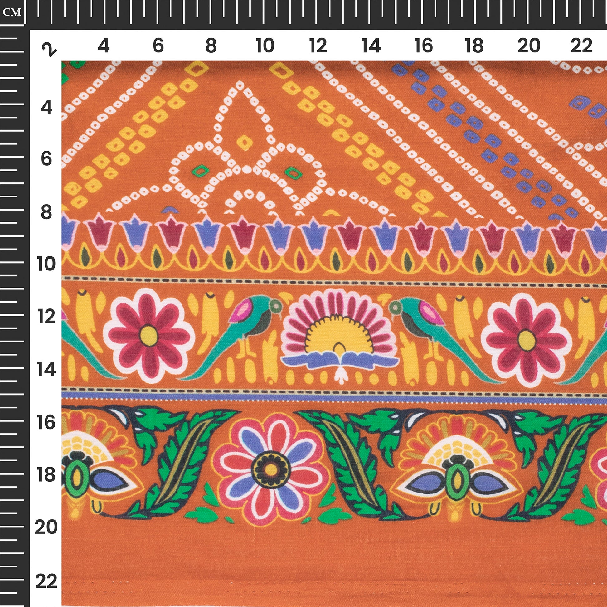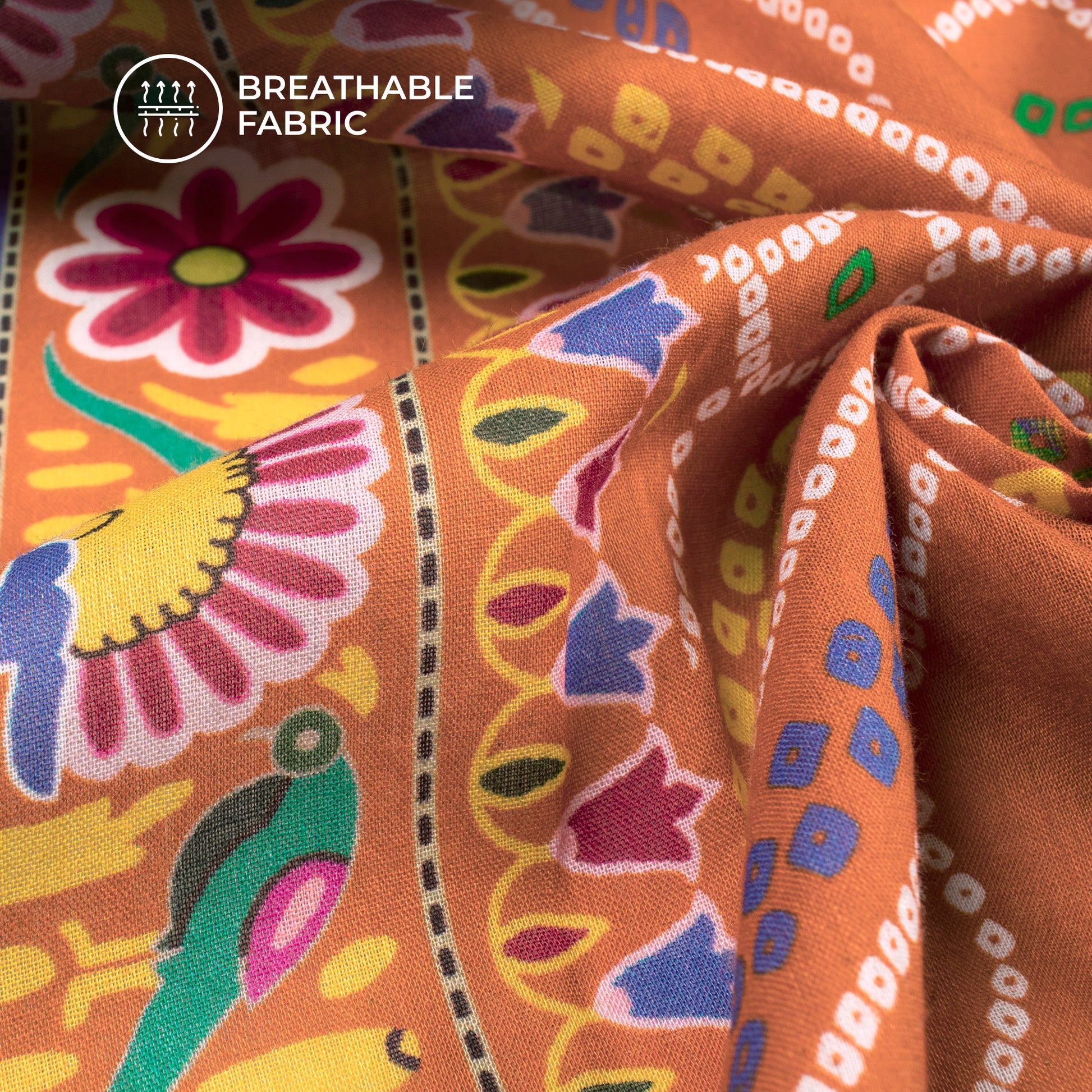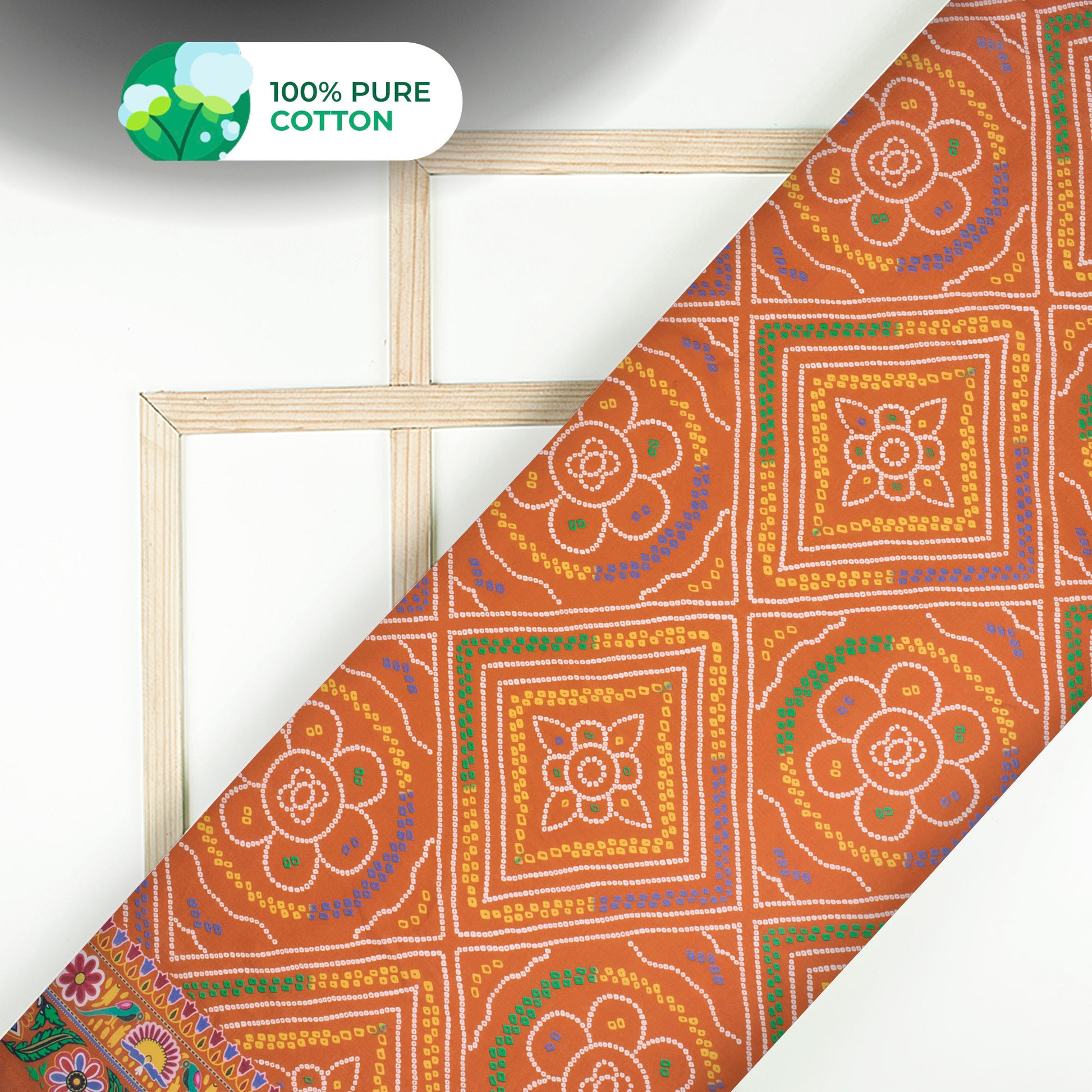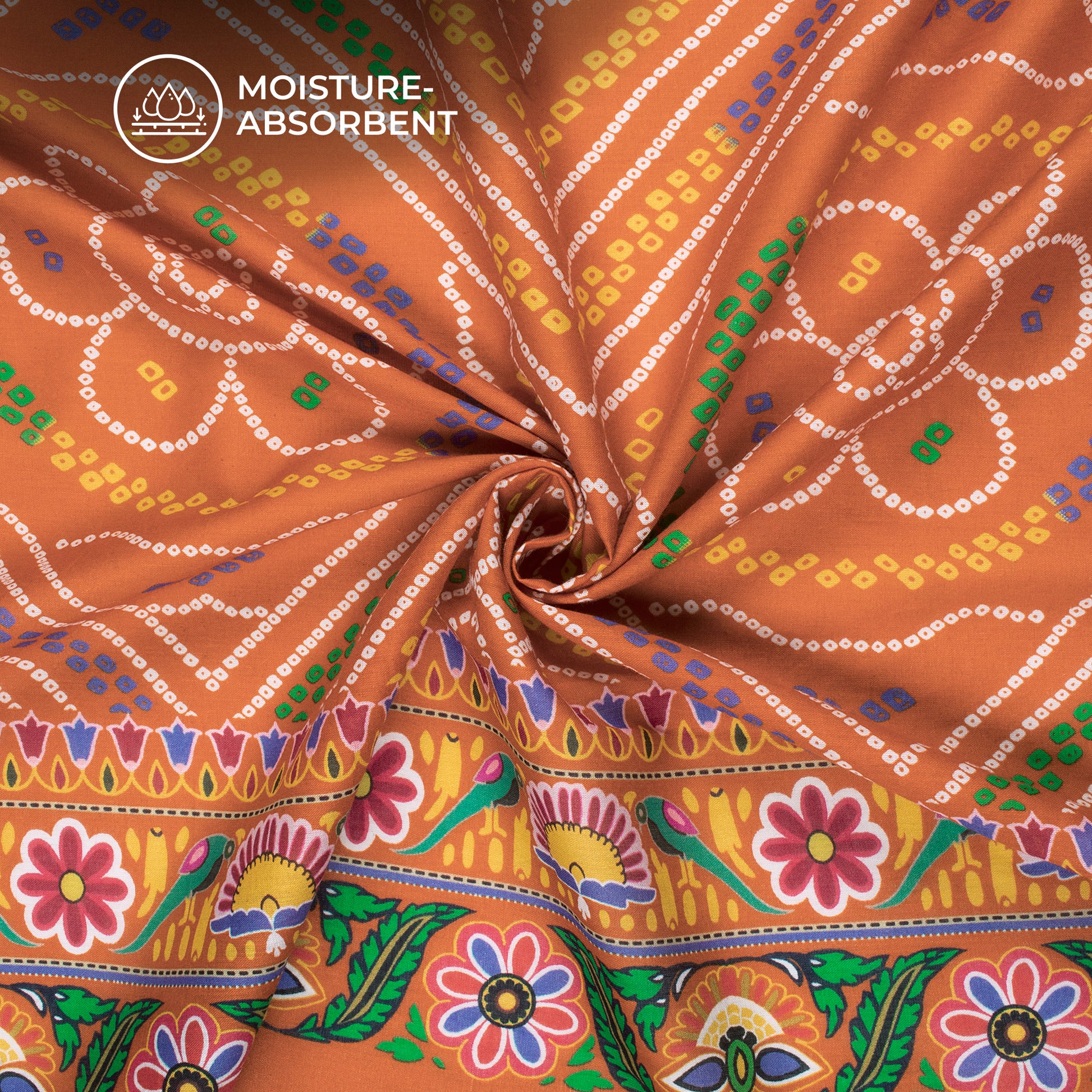 Tangerine Orange Bandhani Digital Print Cotton Mulmul Fabric