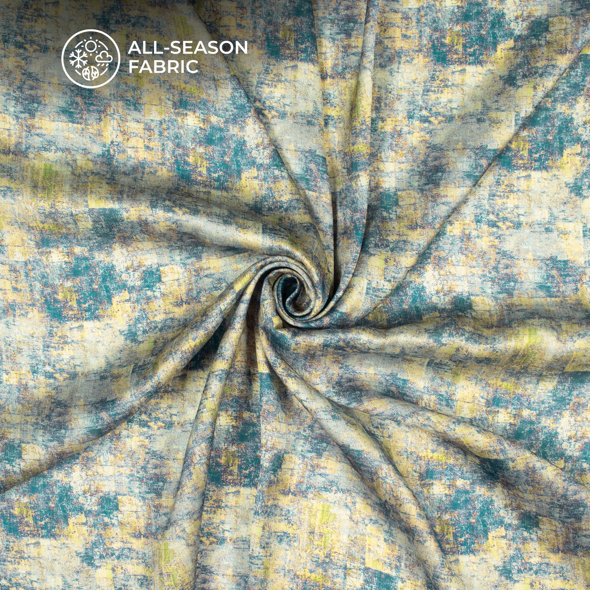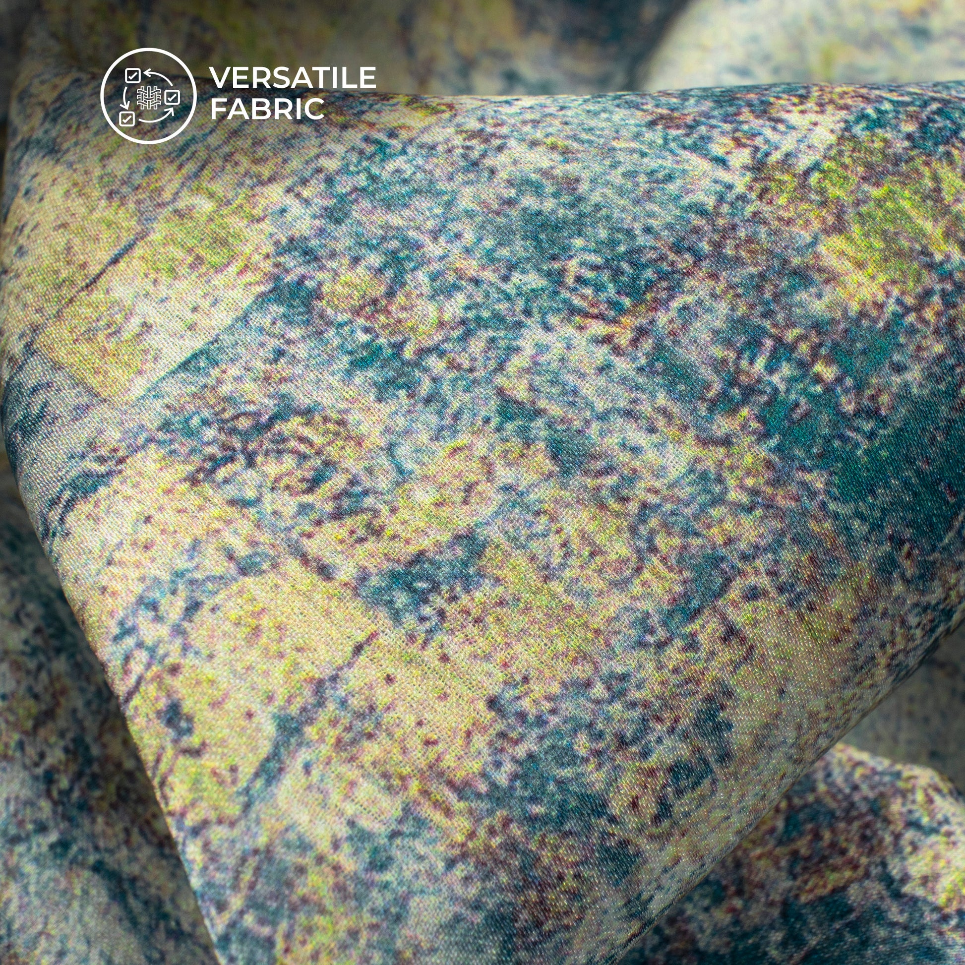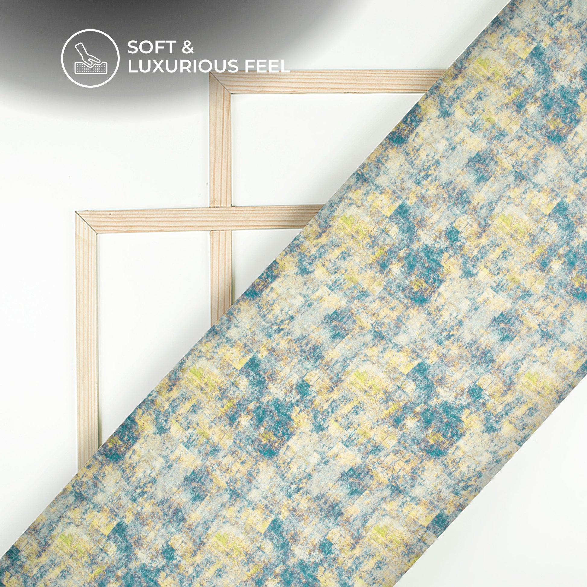 Teal Blue Abstract Tye And Dye Digital Print Chiffon Satin Fabric