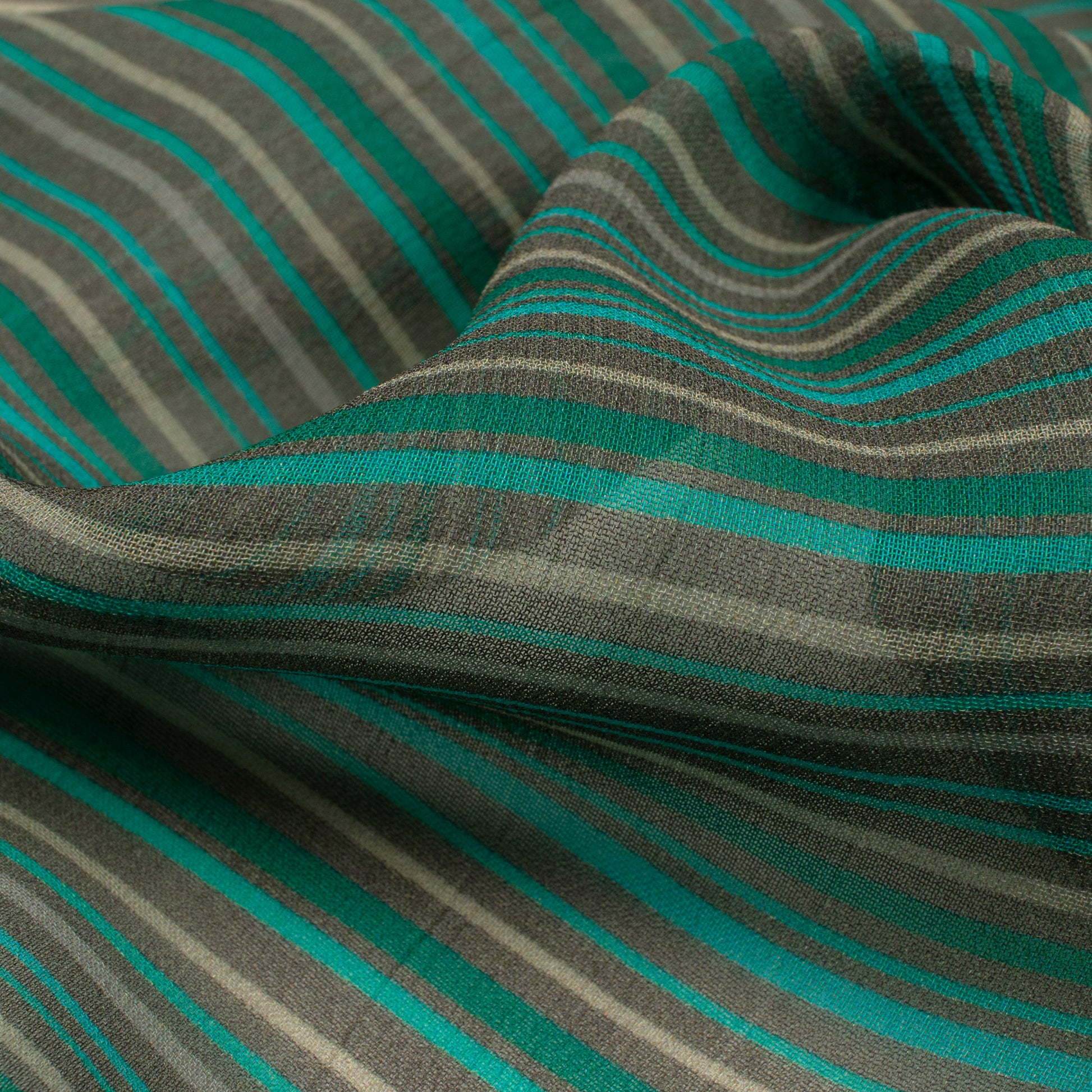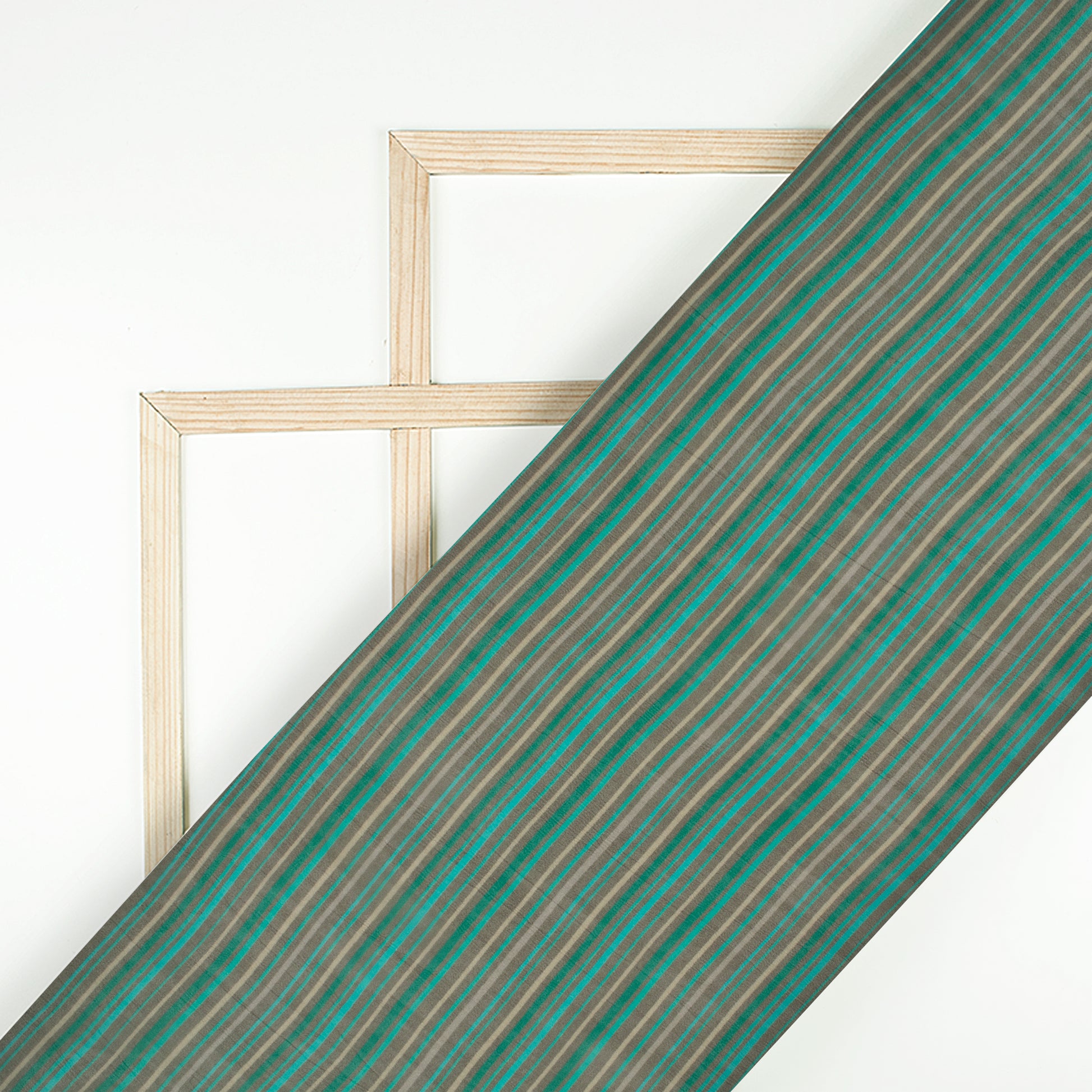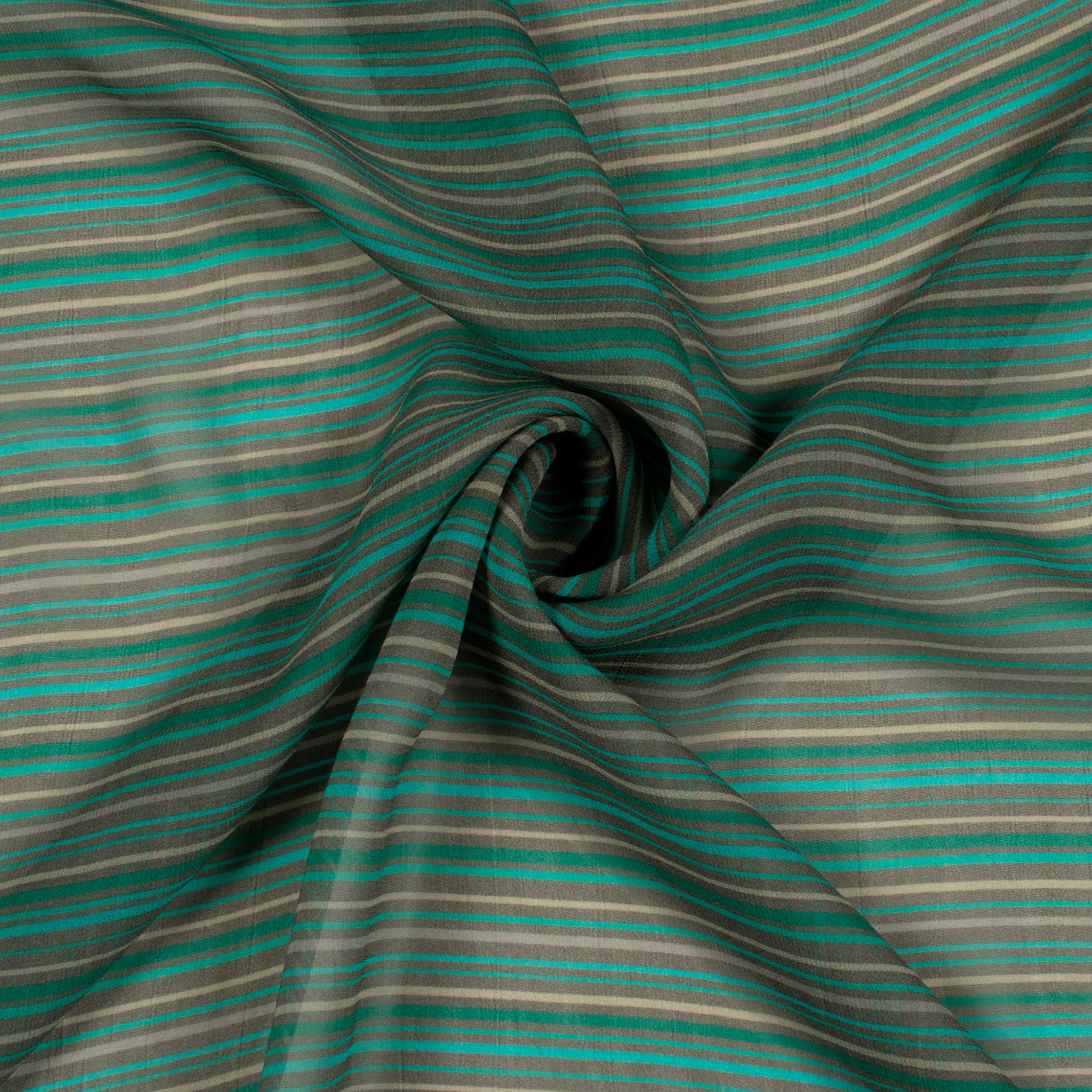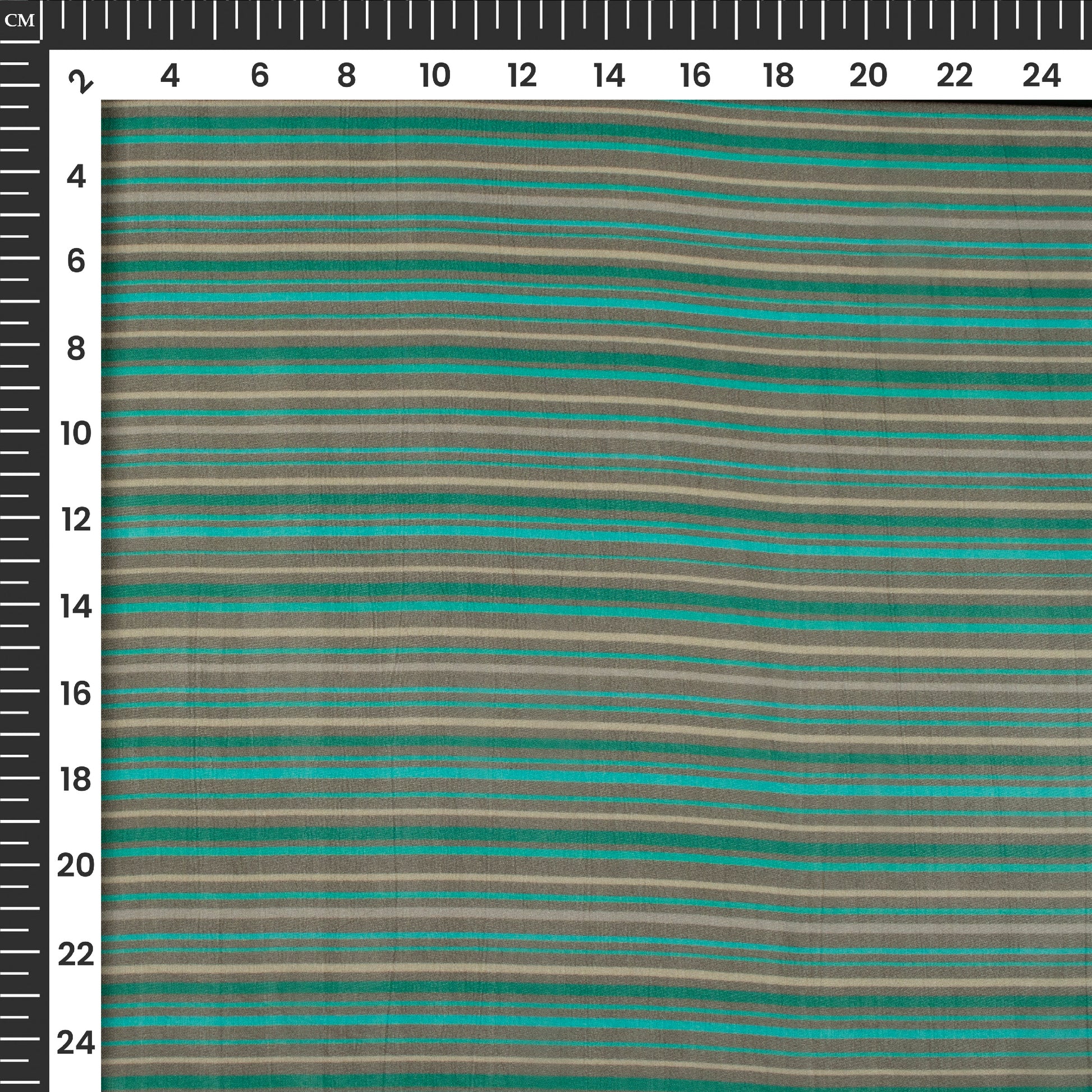 Teal Green Stripe Digital Print Viscose Georgette Fabric