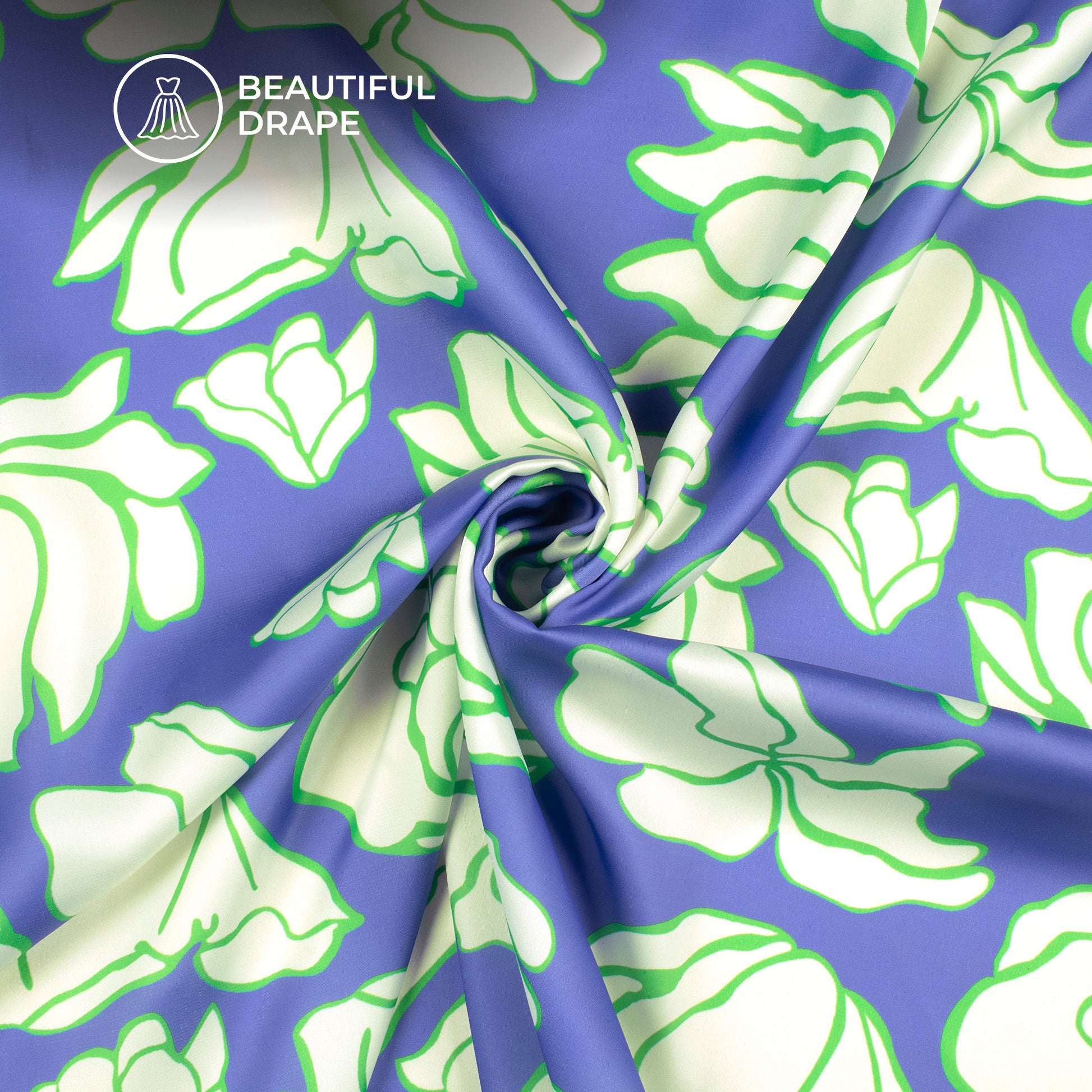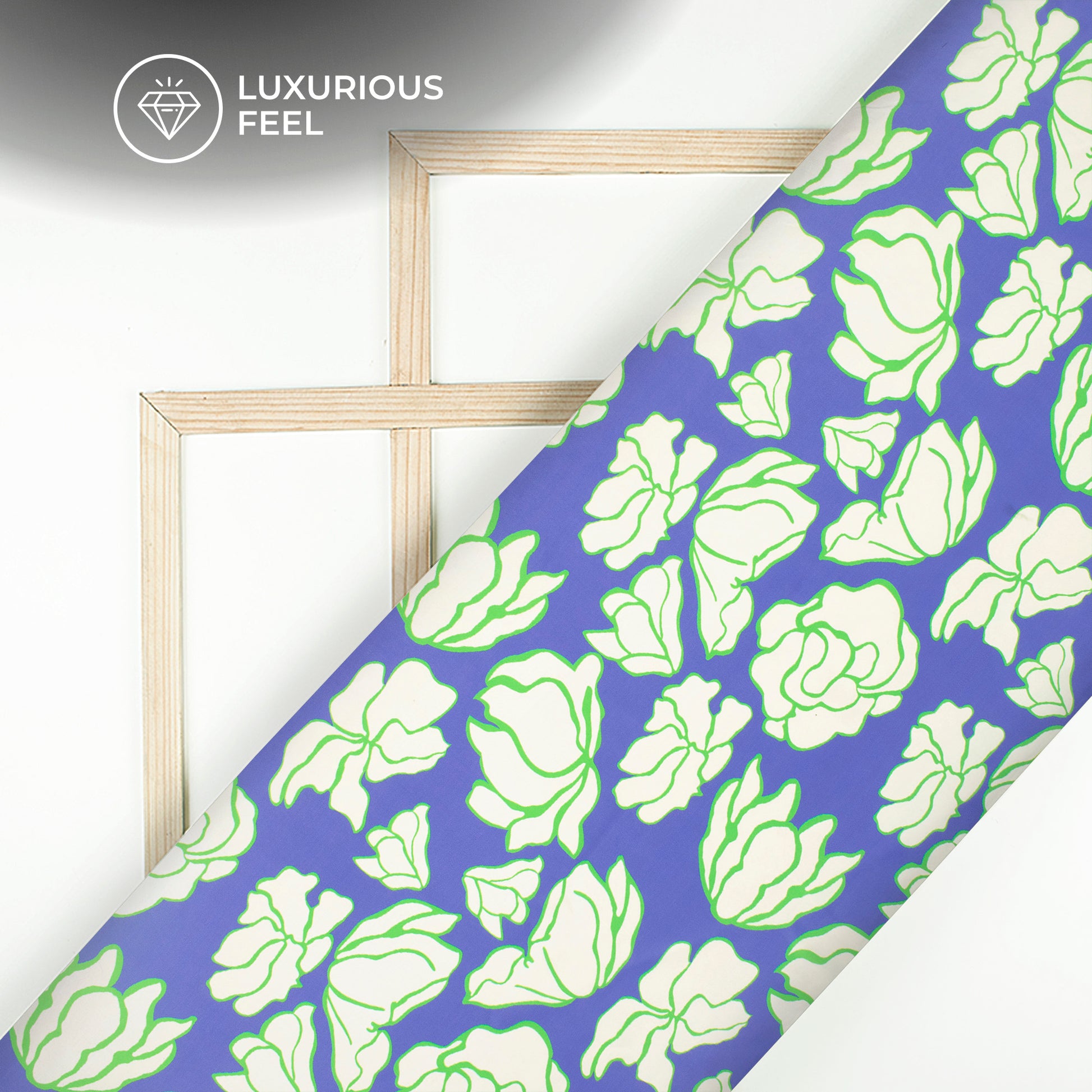 Trendy Abstract Aqua Floral Digital Print Luxurious Imported Satin Fabric