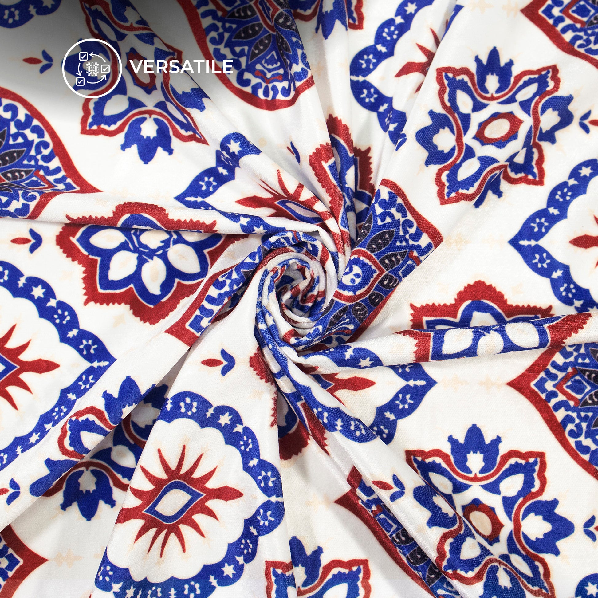 Trendy Ajarakh Print Floral Digital Print Premium Velvet Fabric