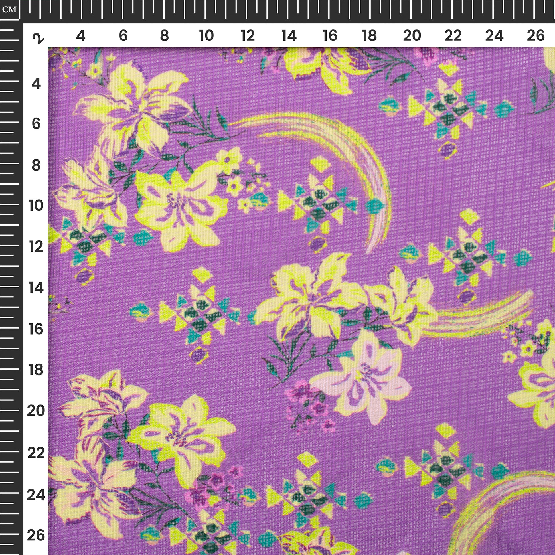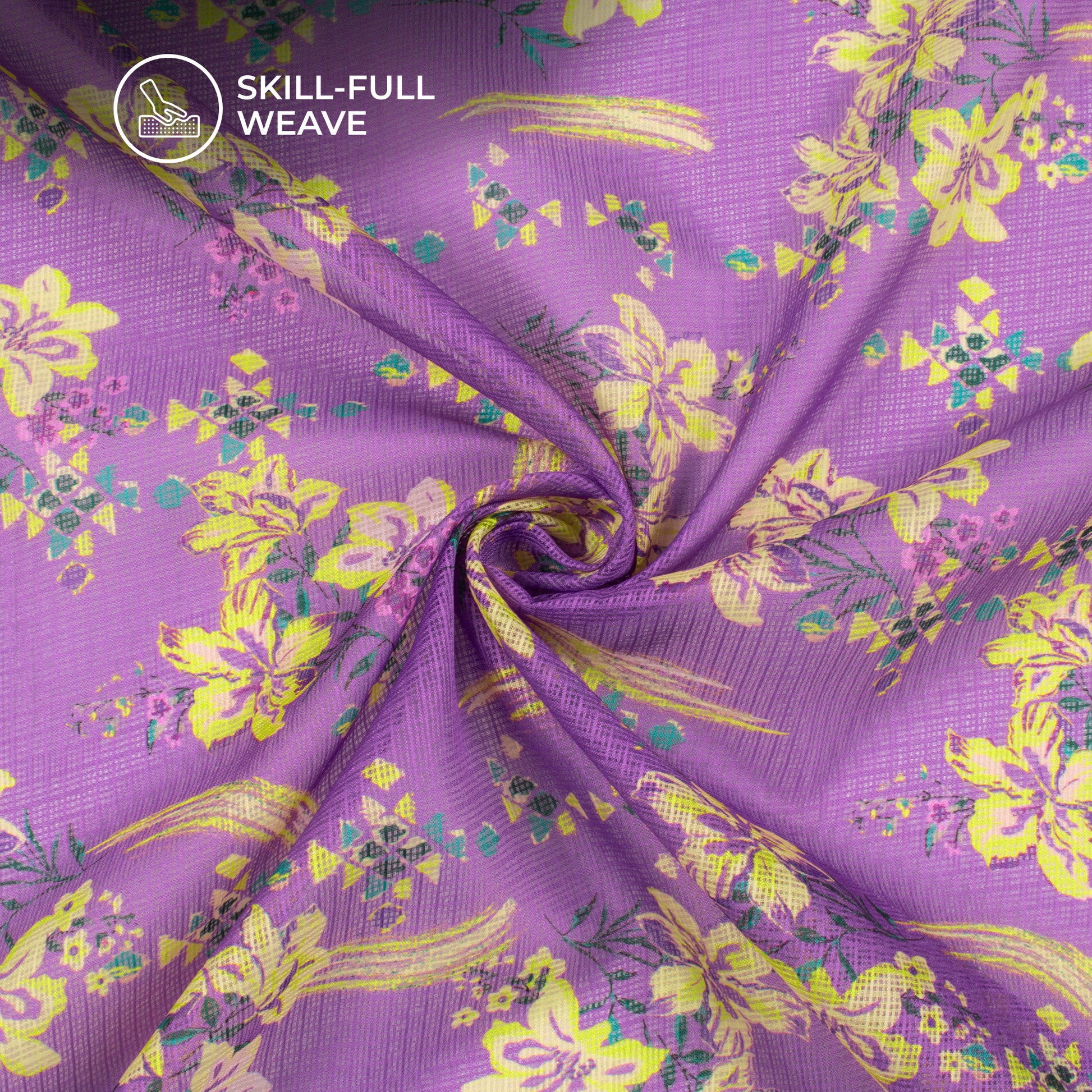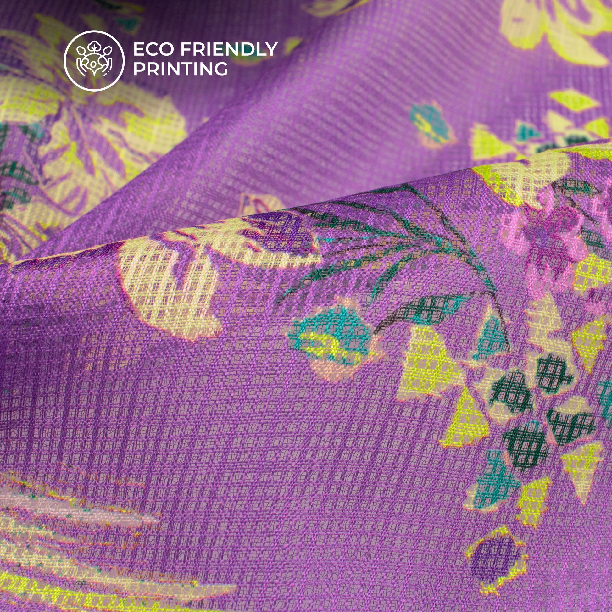 Trendy Floral Digital Print Kota Doria Fabric For Young Fashion Lovers