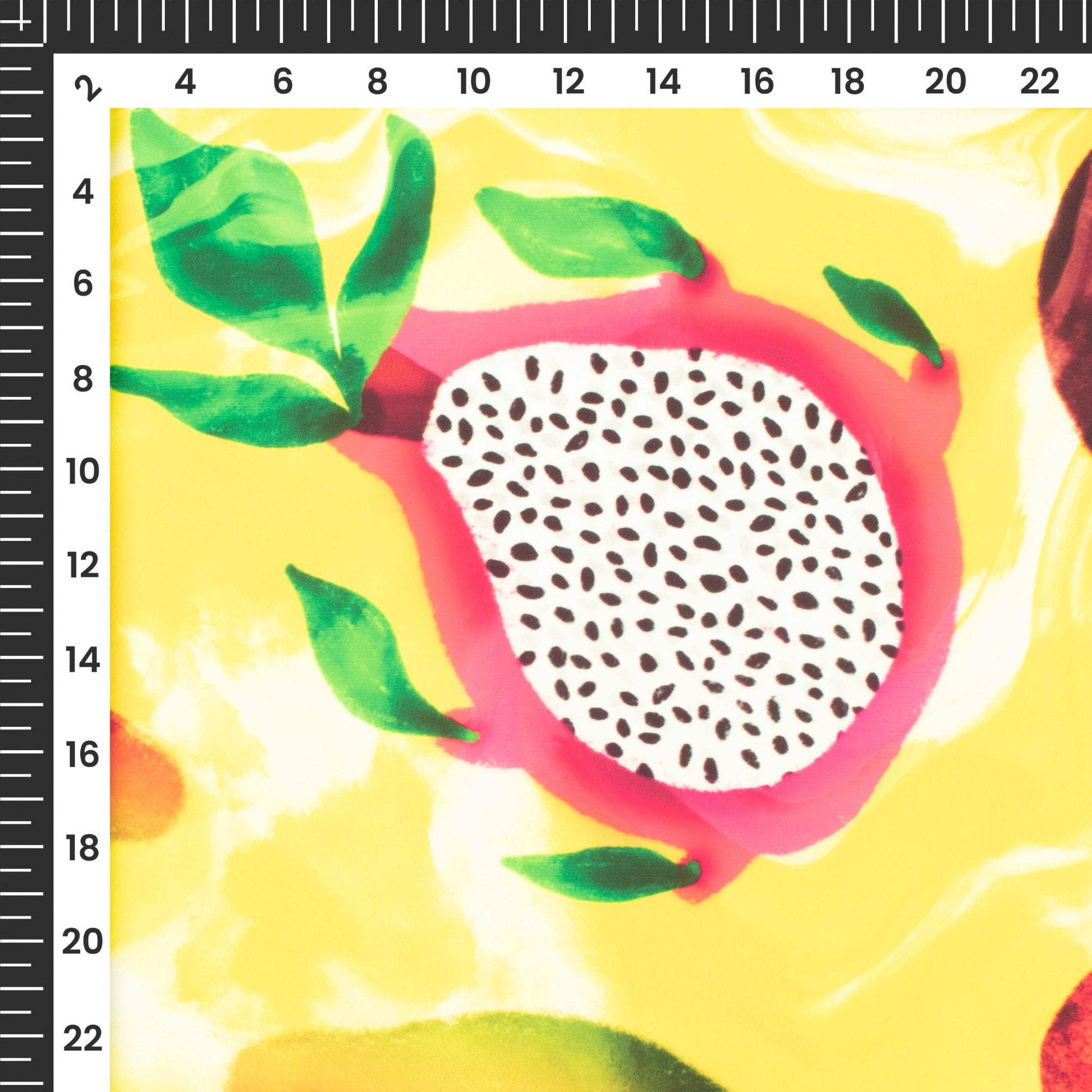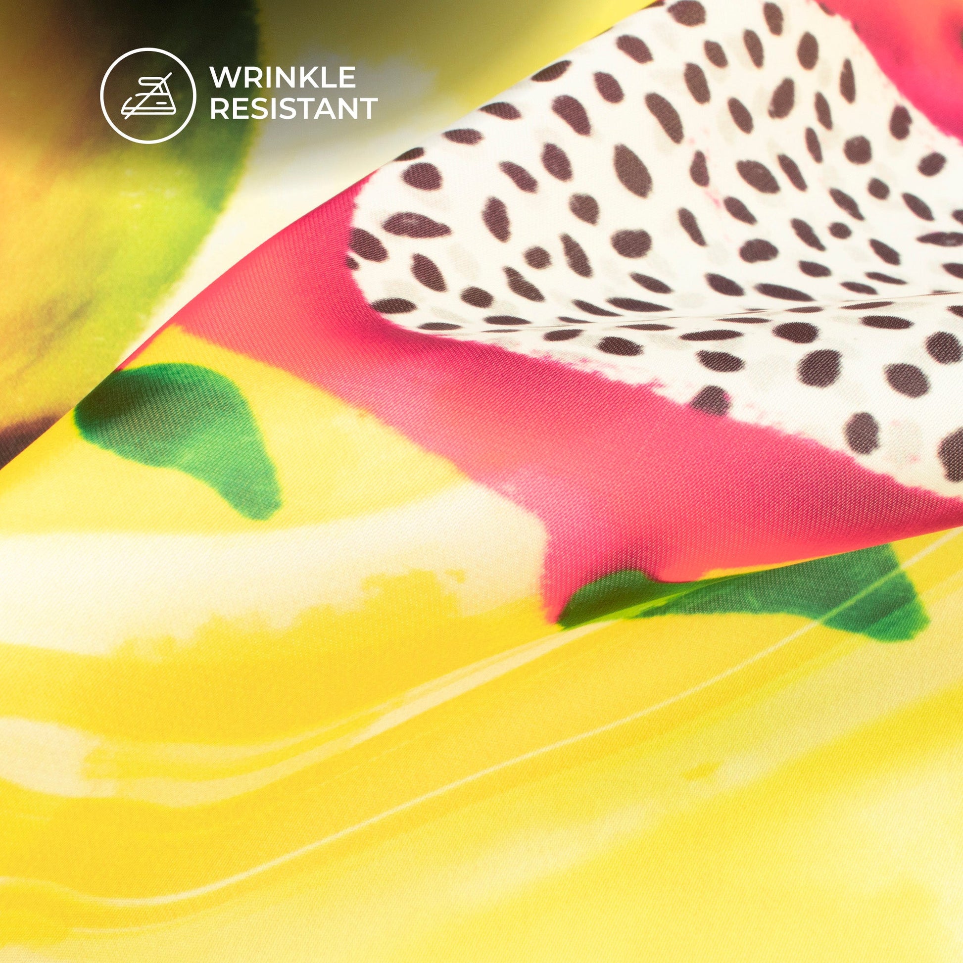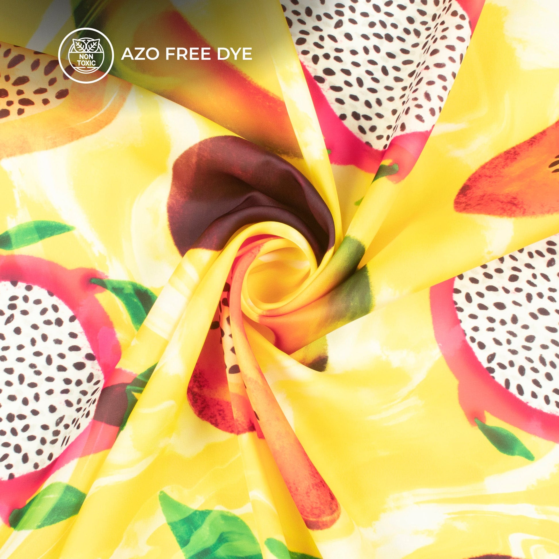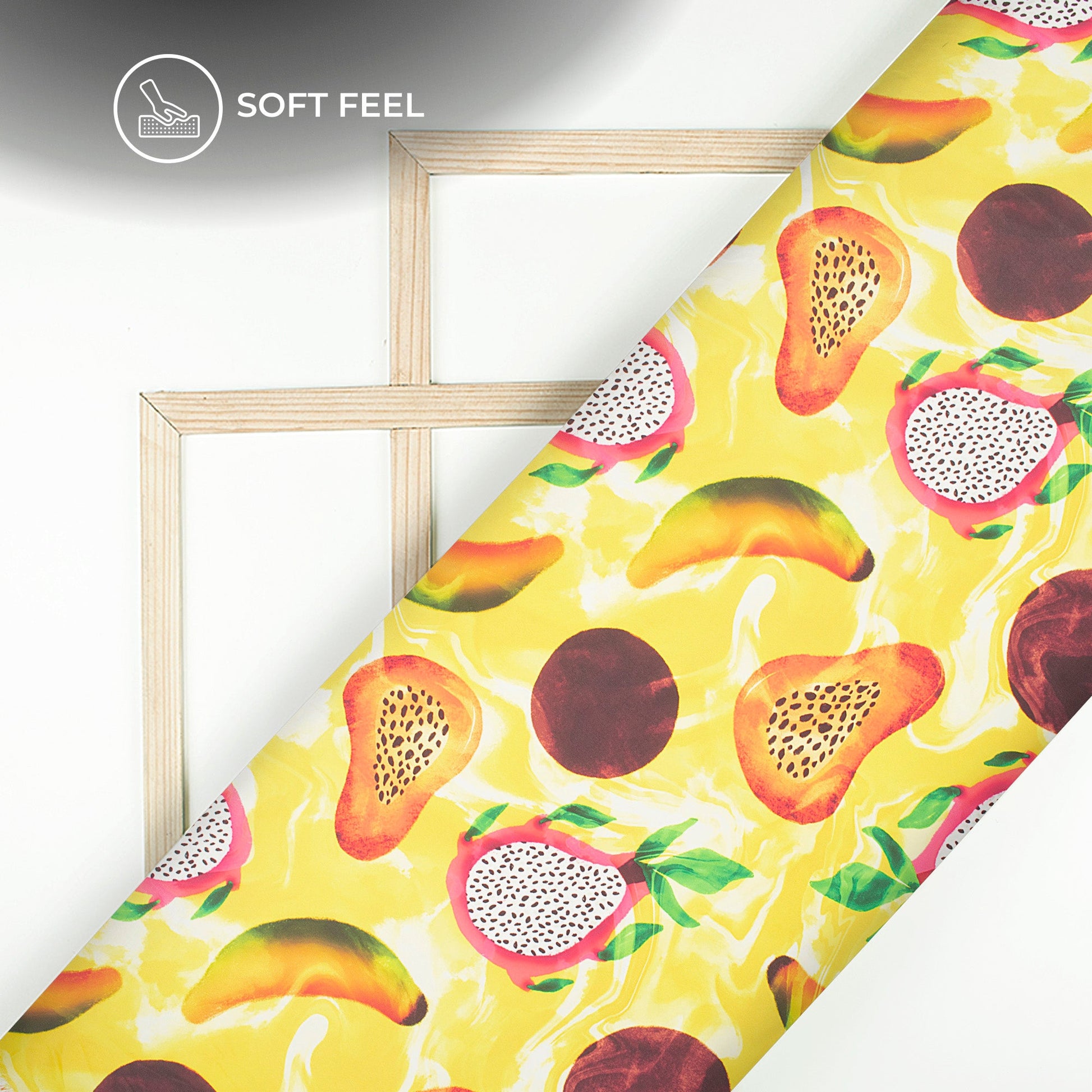 Trendy Yellow Tropical Fruits Digital Print Imported Satin Fabric
