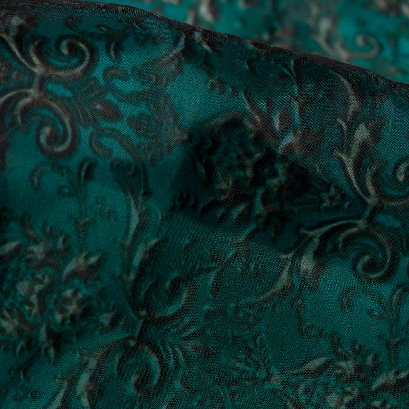 Turquoise Ethnic Digital Print Organza Satin Fabric
