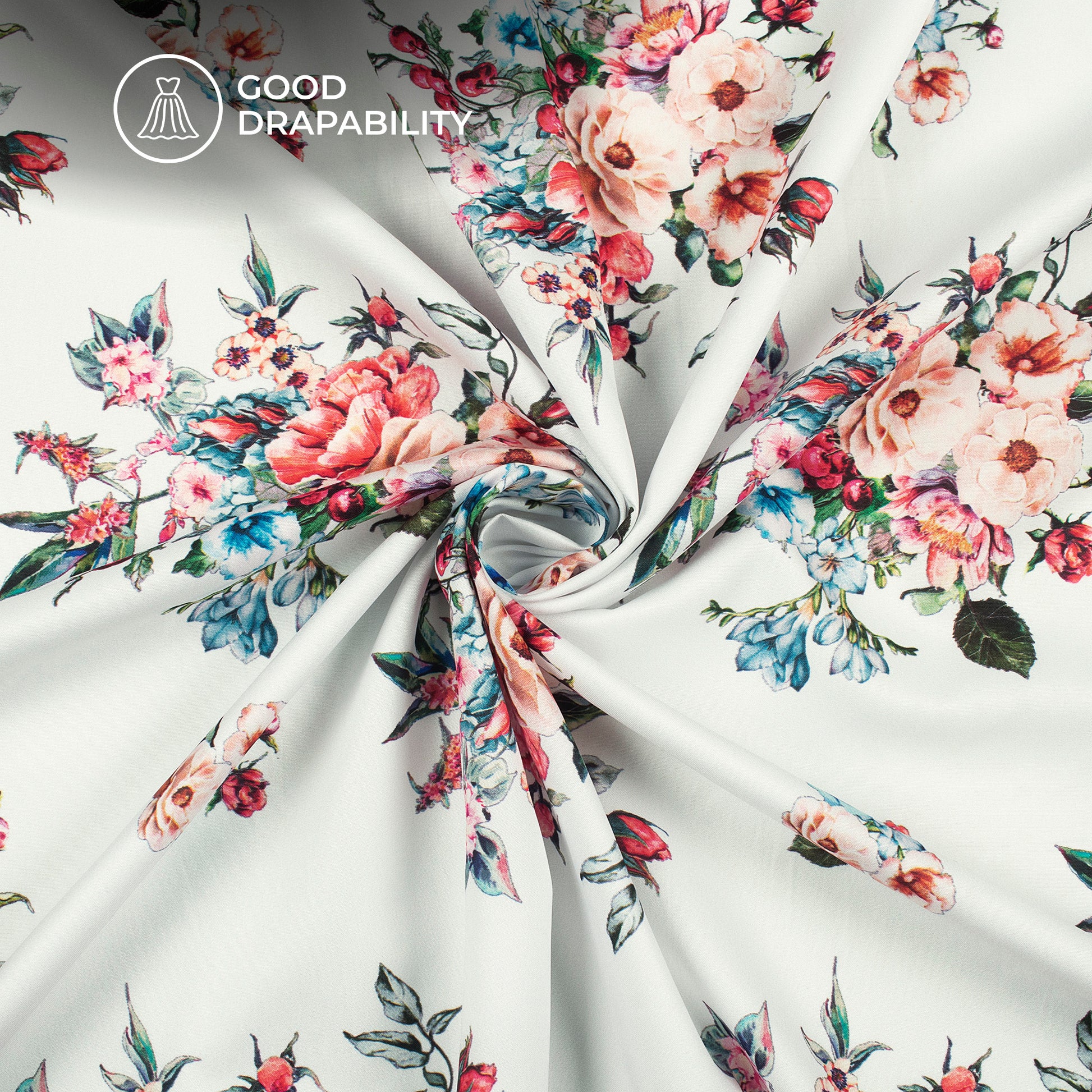 Fabcurate features butter crepe Fabric, displaying an array of properties which is suitable for the cold environment. Starting with the texture- it has a smooth texture complementing the shine of the fabric. It has a silk-like appearance and is not prone to wrinkles, which makes it a fabric that is easy to maintain. The crispness of the fabric makes it a good choice for developing garments like dresses, suits, blouses, pants, and home furnishing items like curtains, window treatments, and pillows.