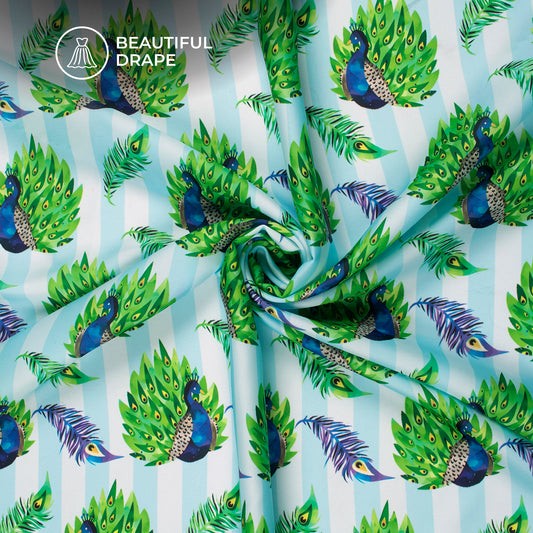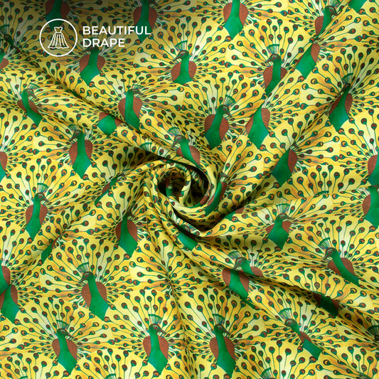 Janmashtami Special Peacock Vibe Digital Print Imported Satin Fabric Janmashtami Special Peacock Vibe Digital Print Imported Satin Fabric