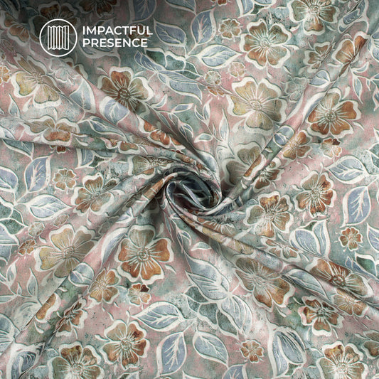 Vintage Bloom Whisper - Digital Print Flat Silk Fabric With Floral Etch Detailing Vintage Bloom Whisper - Digital Print Flat Silk Fabric With Floral Etch Detailing