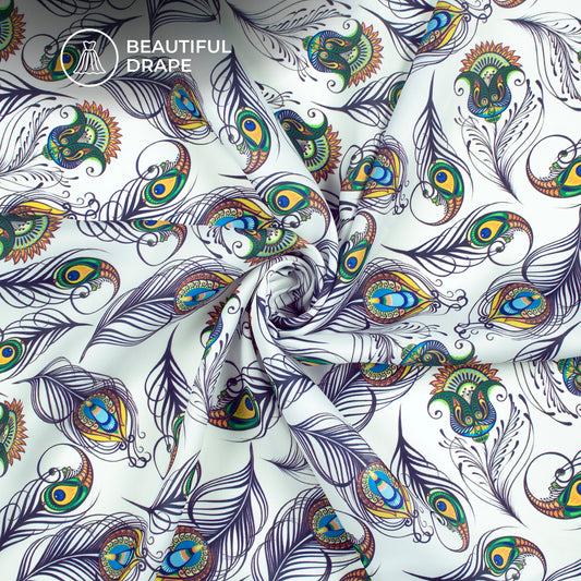 Mor Leela - Digital Print Imported Satin Fabric with Divine Feather Prints Mor Leela - Digital Print Imported Satin Fabric with Divine Feather Prints