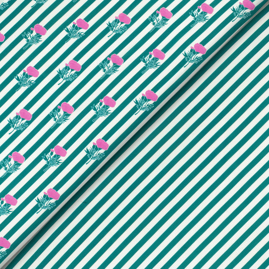 -10% offPine Green Floral,Stripes Digital Print Muslin Fabric Pine Green Floral,Stripes Digital Print Muslin Fabric